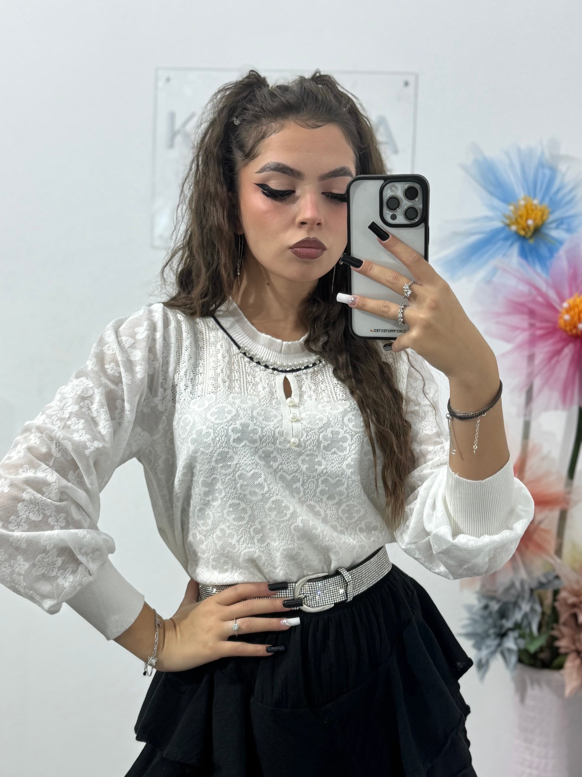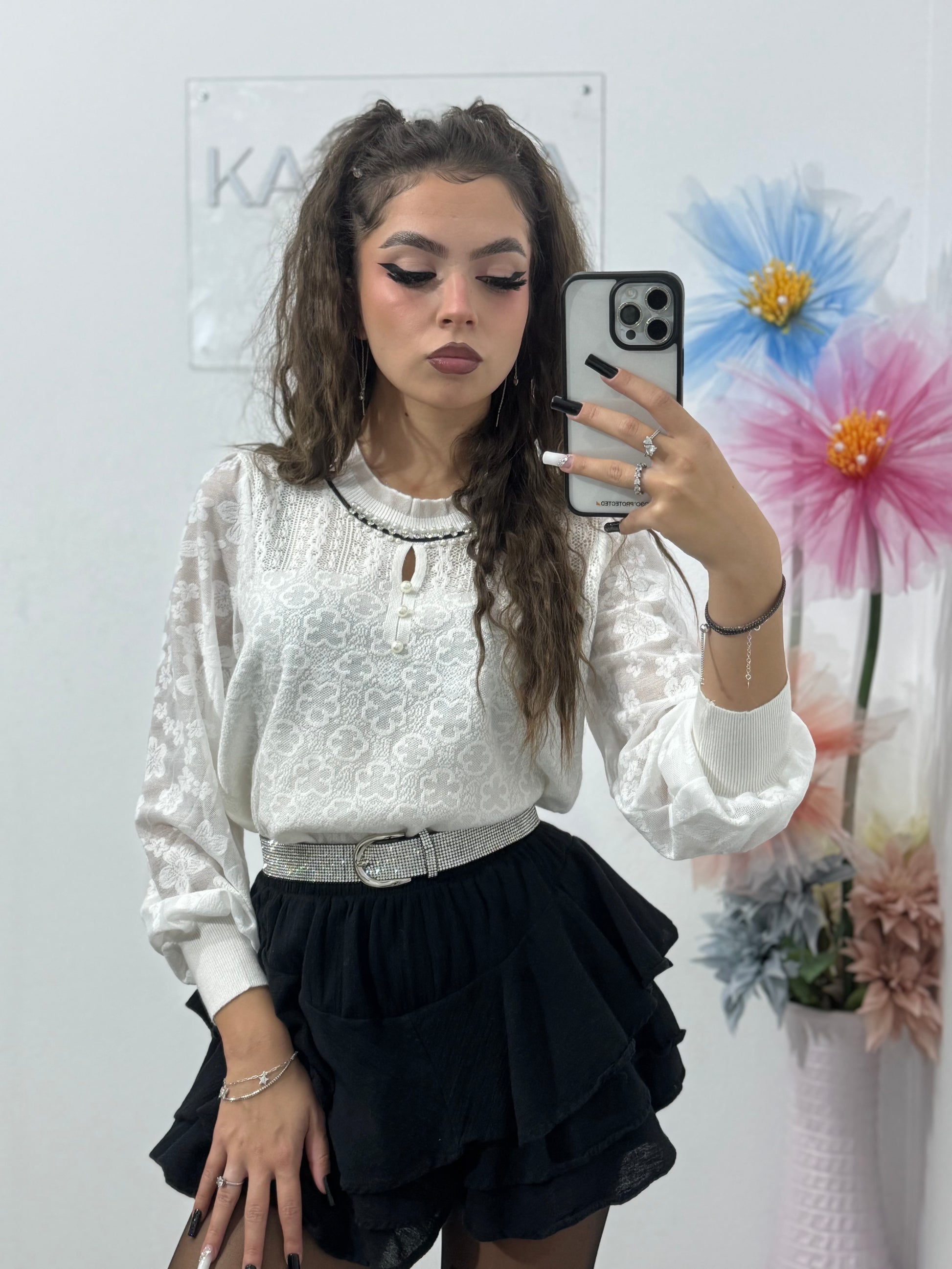 Bluză cu perlute și cristale Criss