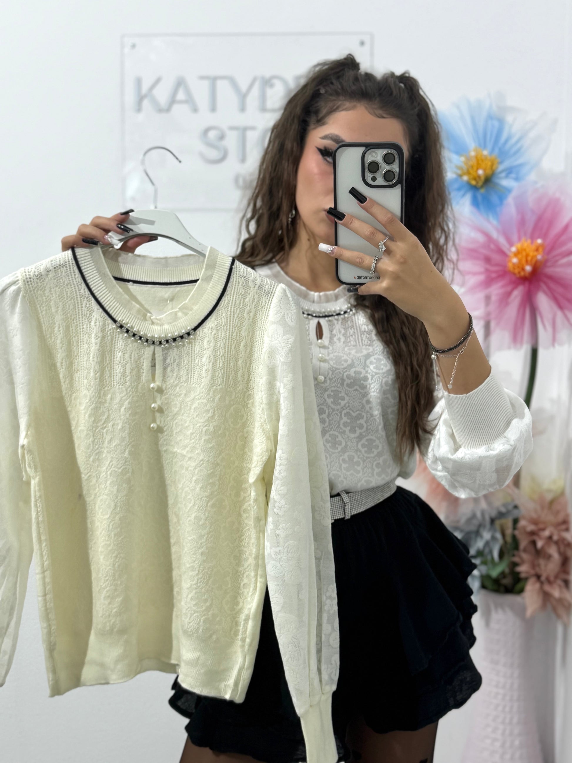 Bluză din tricot accesorizata cu perlute și cristale