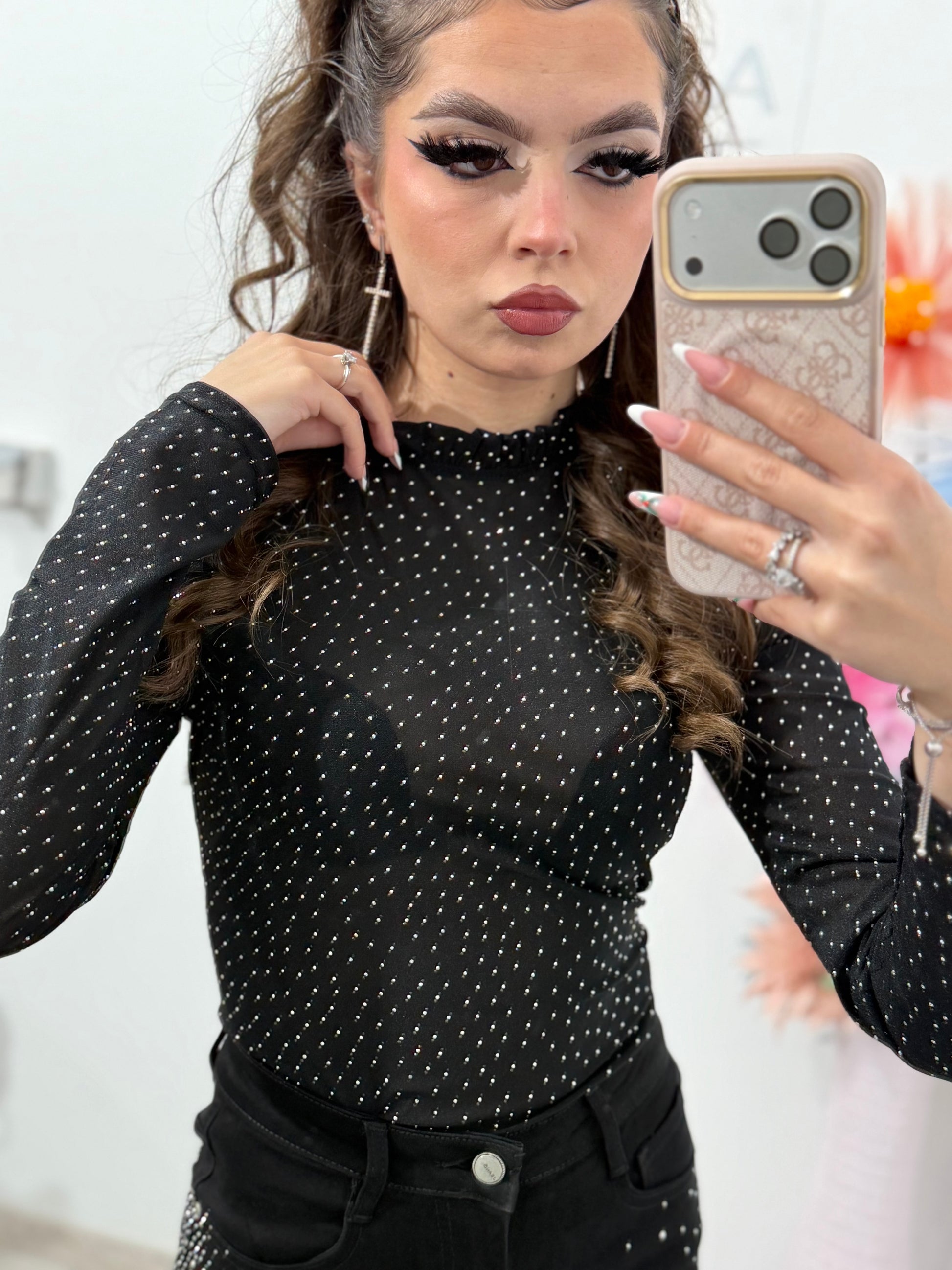 Bluză din dantelă neagră cu cristale WANA