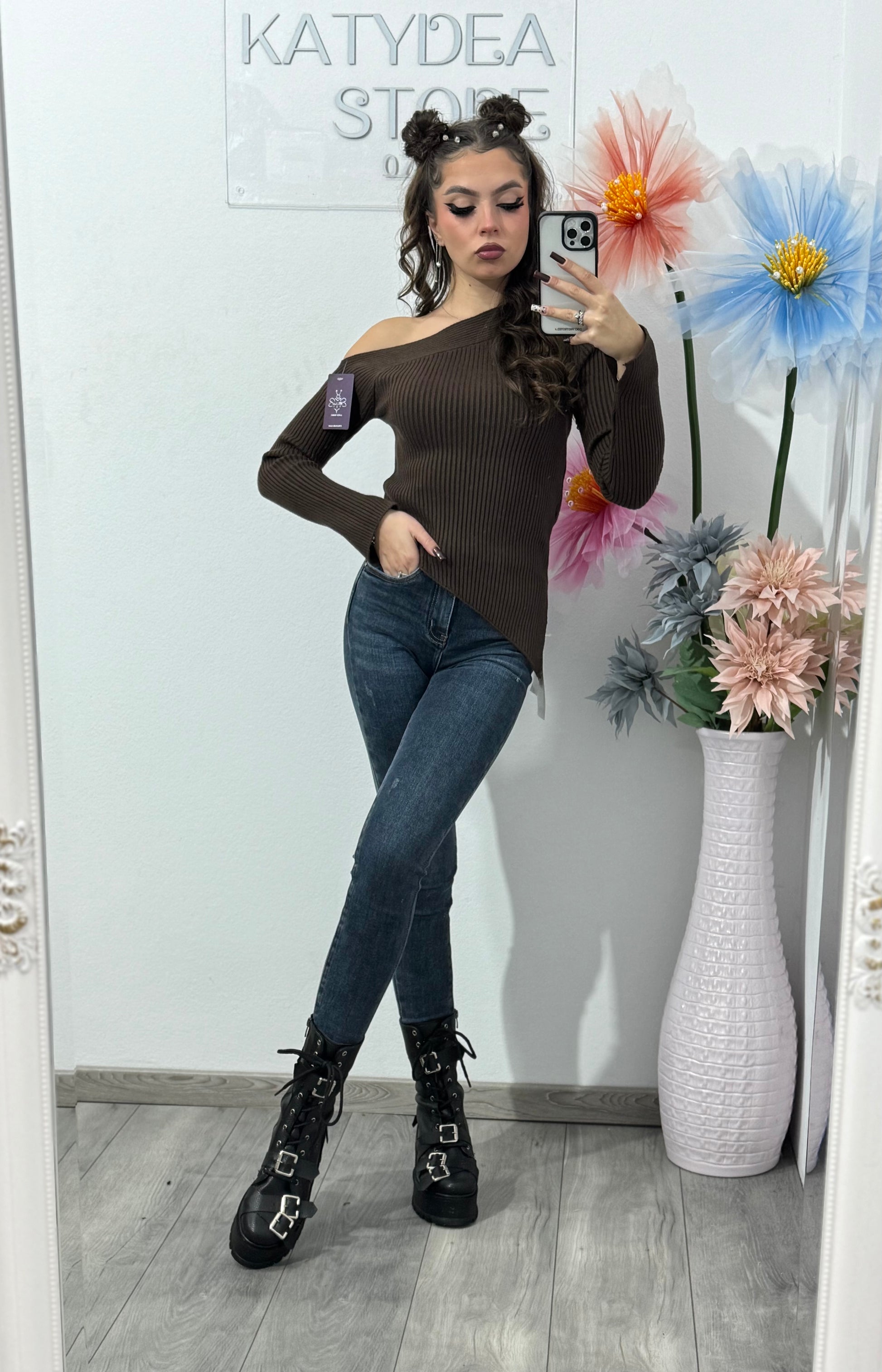 Bluză pe un umăr din tricot ANNA