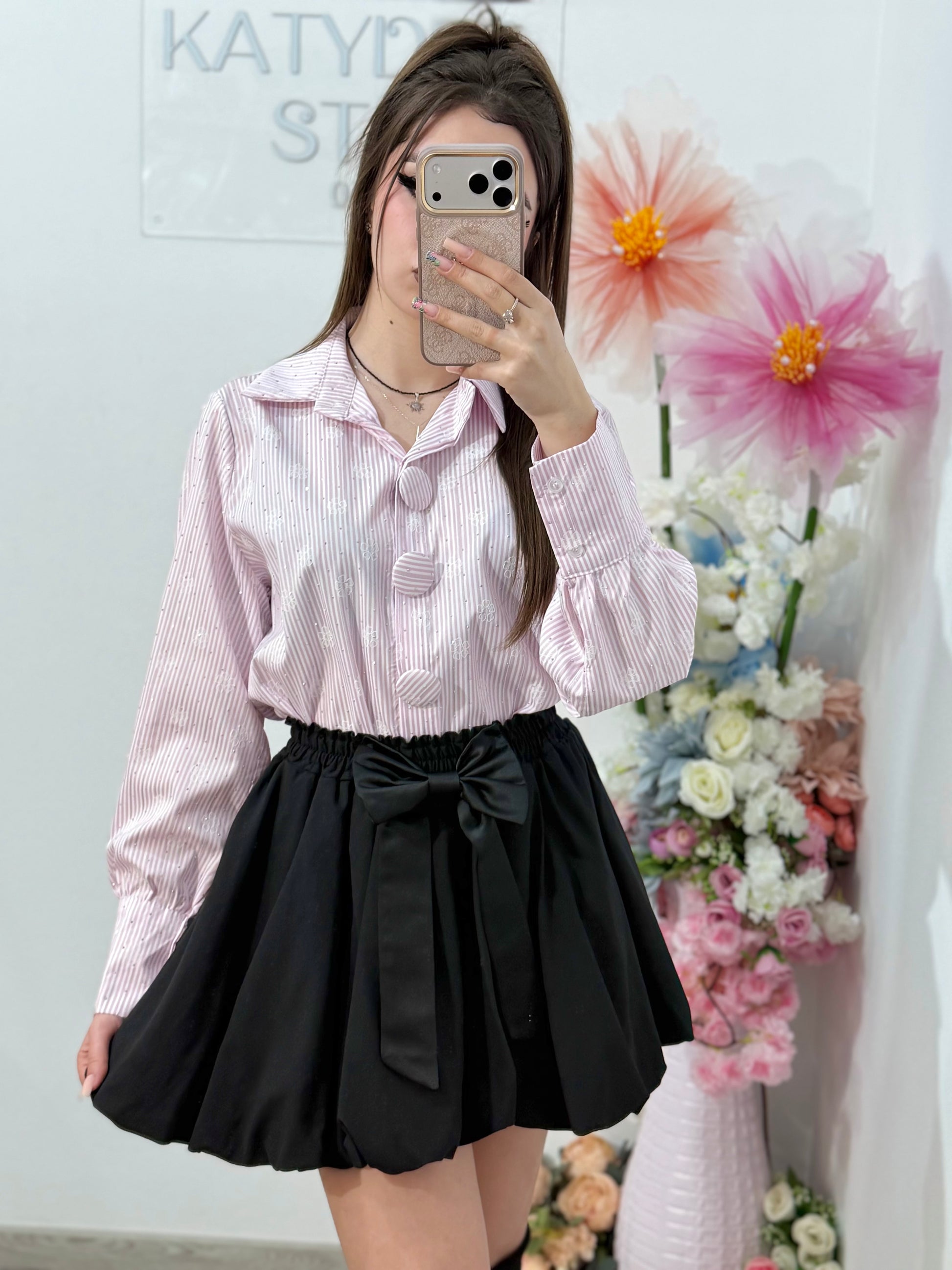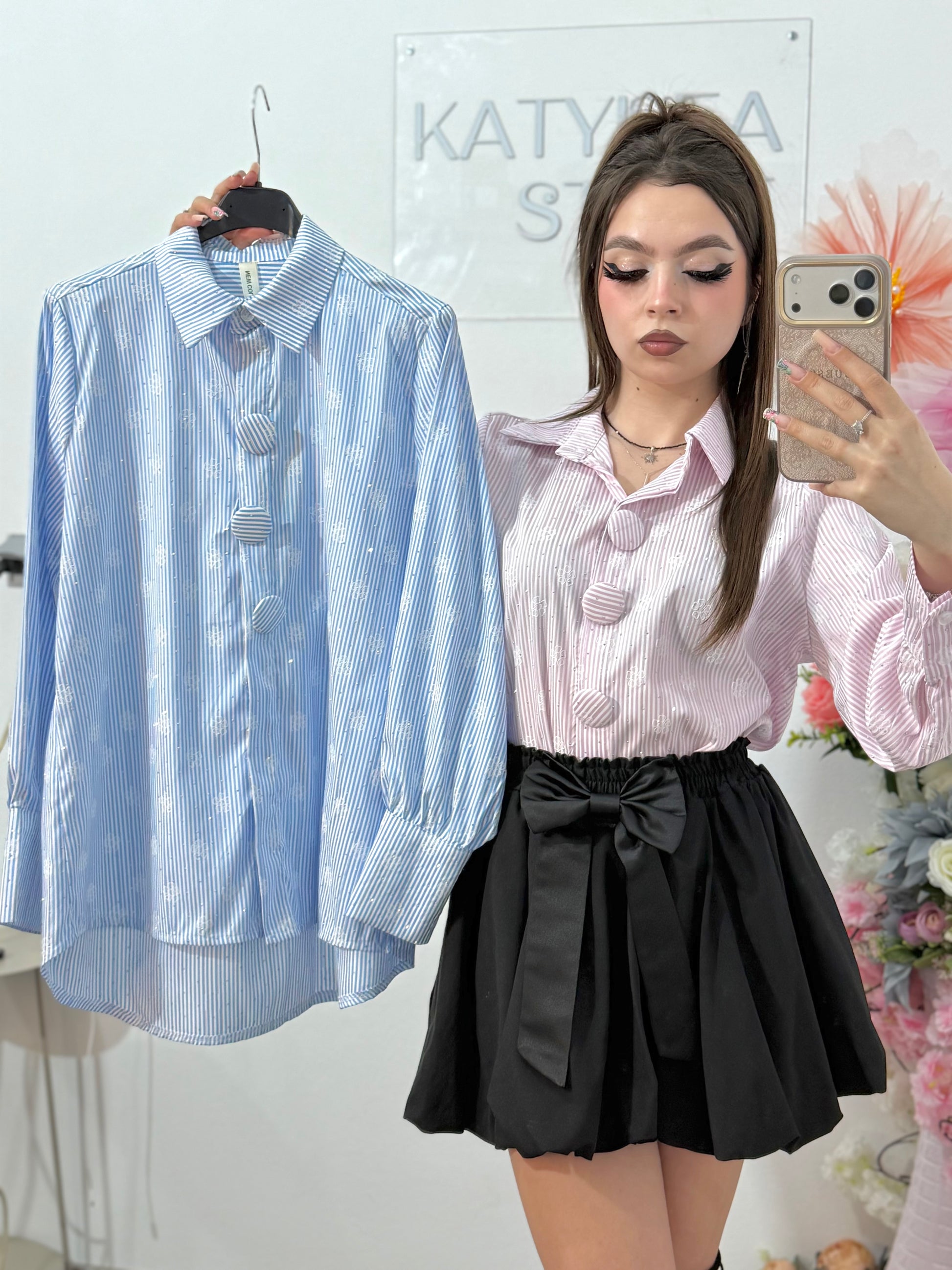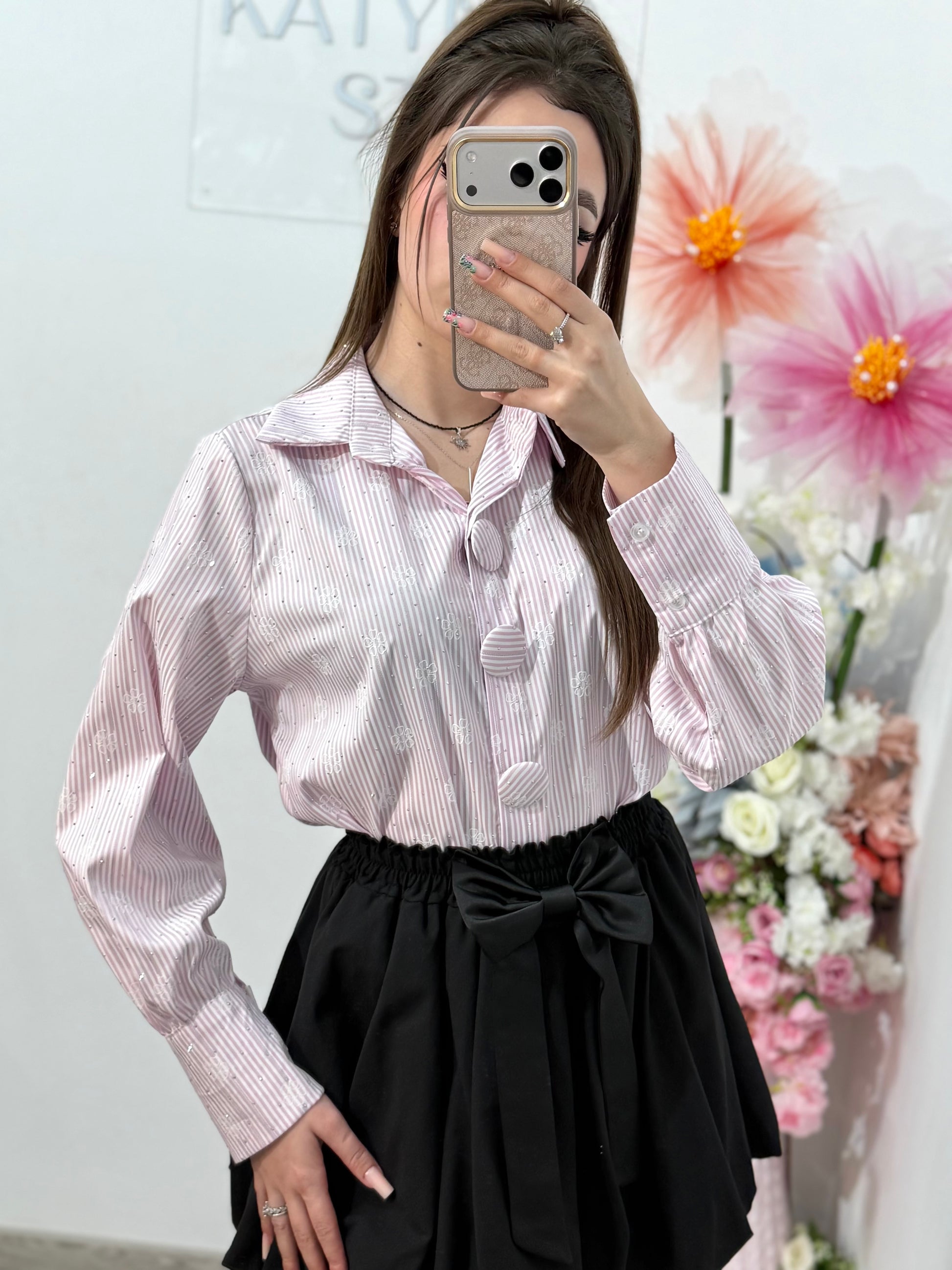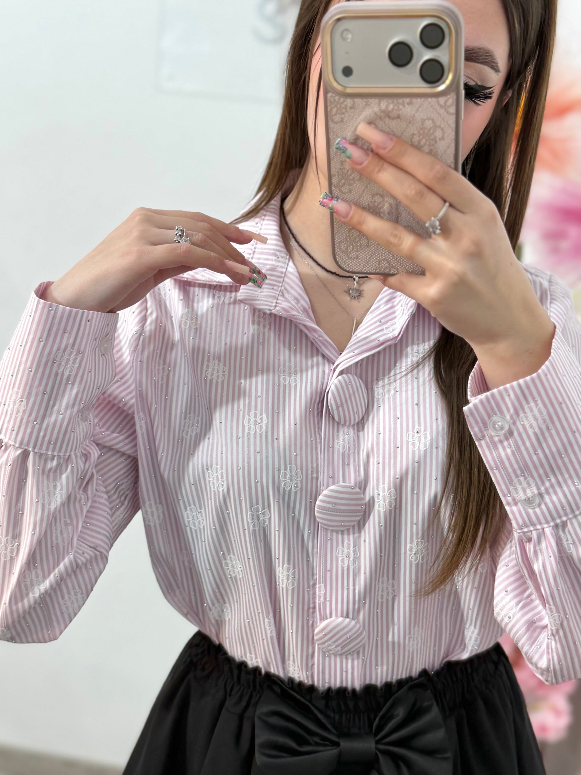 Cămașă elegantă cu dungi si cristale ștanțate ELENA