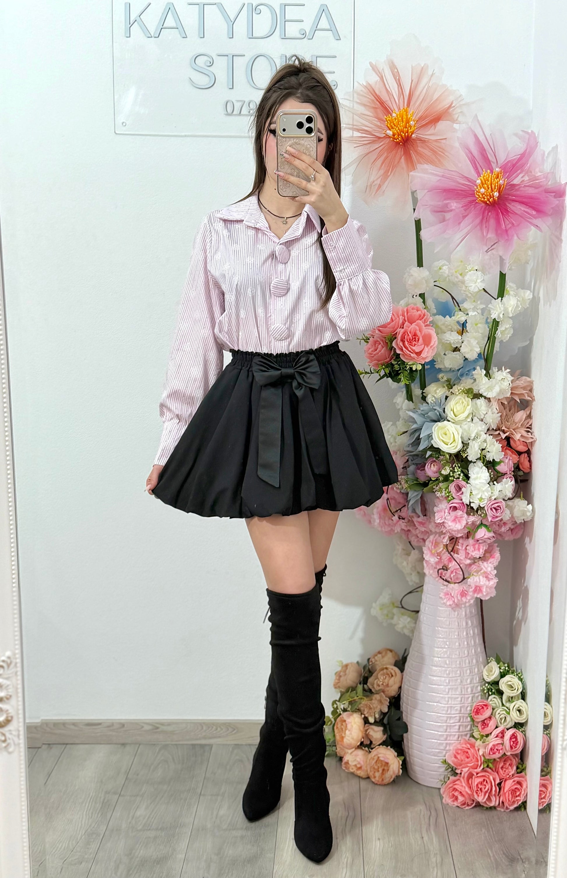 În partea din față, cămașa este accesorizată cu trei butoni mari, rotunzi, îmbrăcați în același material ca și cămașa. Aceștia devin un element decorativ deosebit, completând designul și oferind piesei un plus de stil și originalitate. ✨
