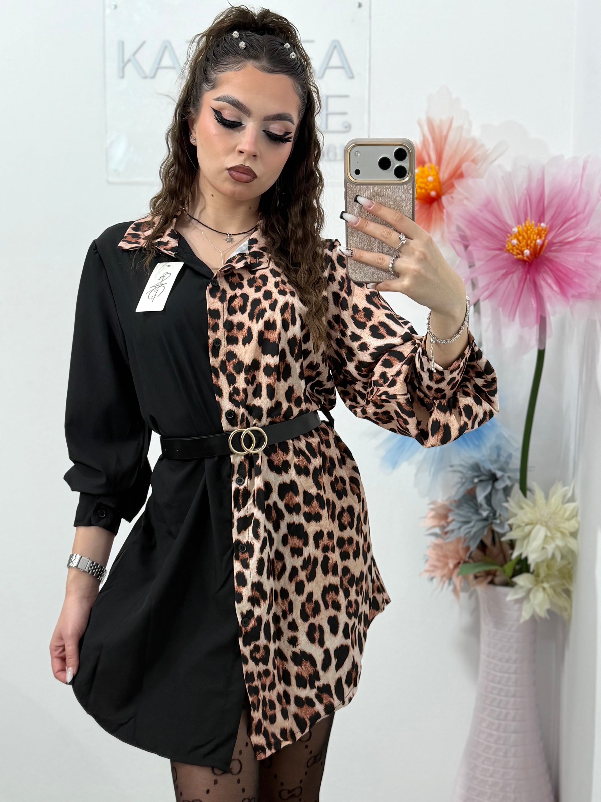 Camasa duo culoare accesorizata în talie cu o curea.