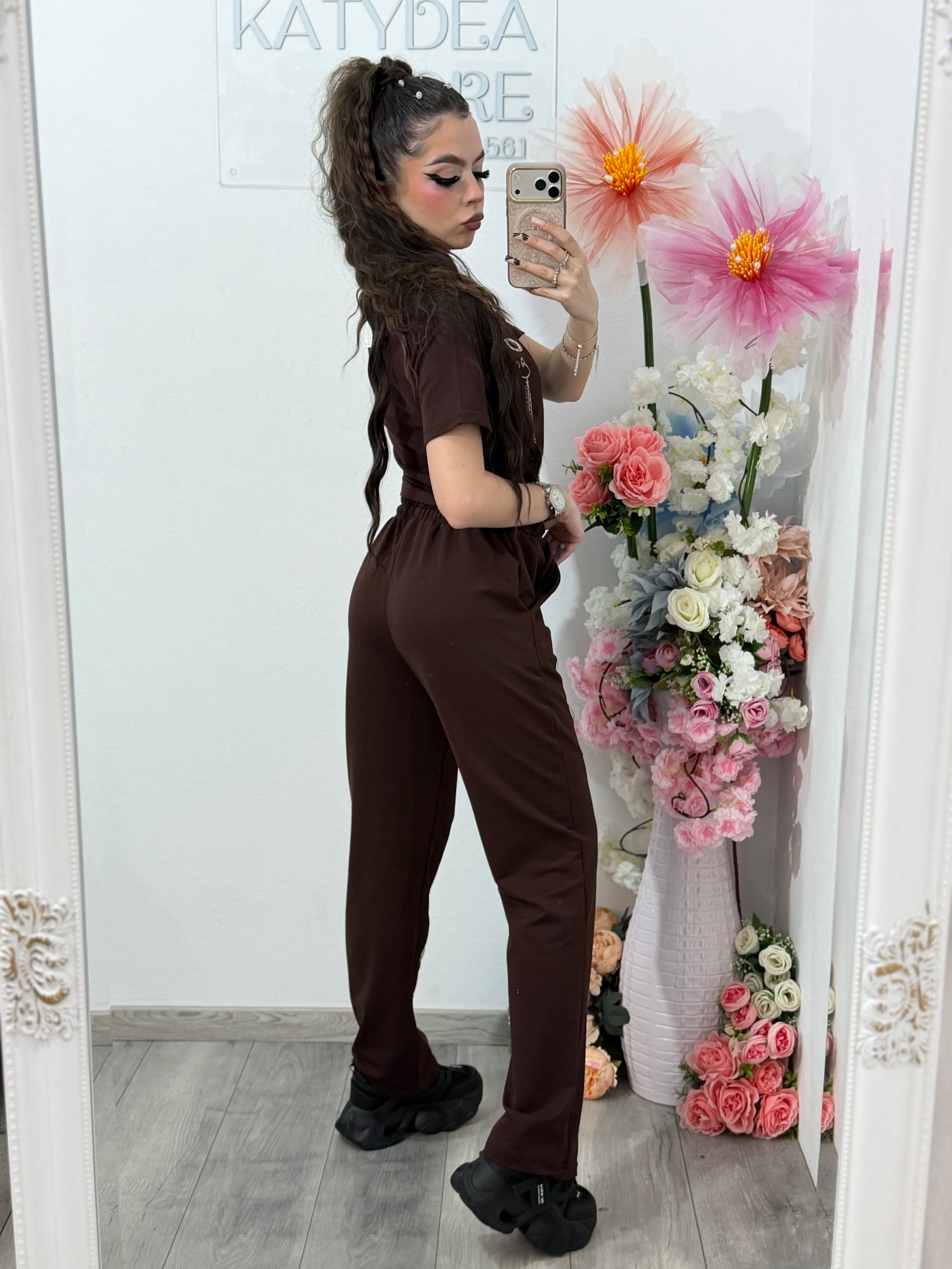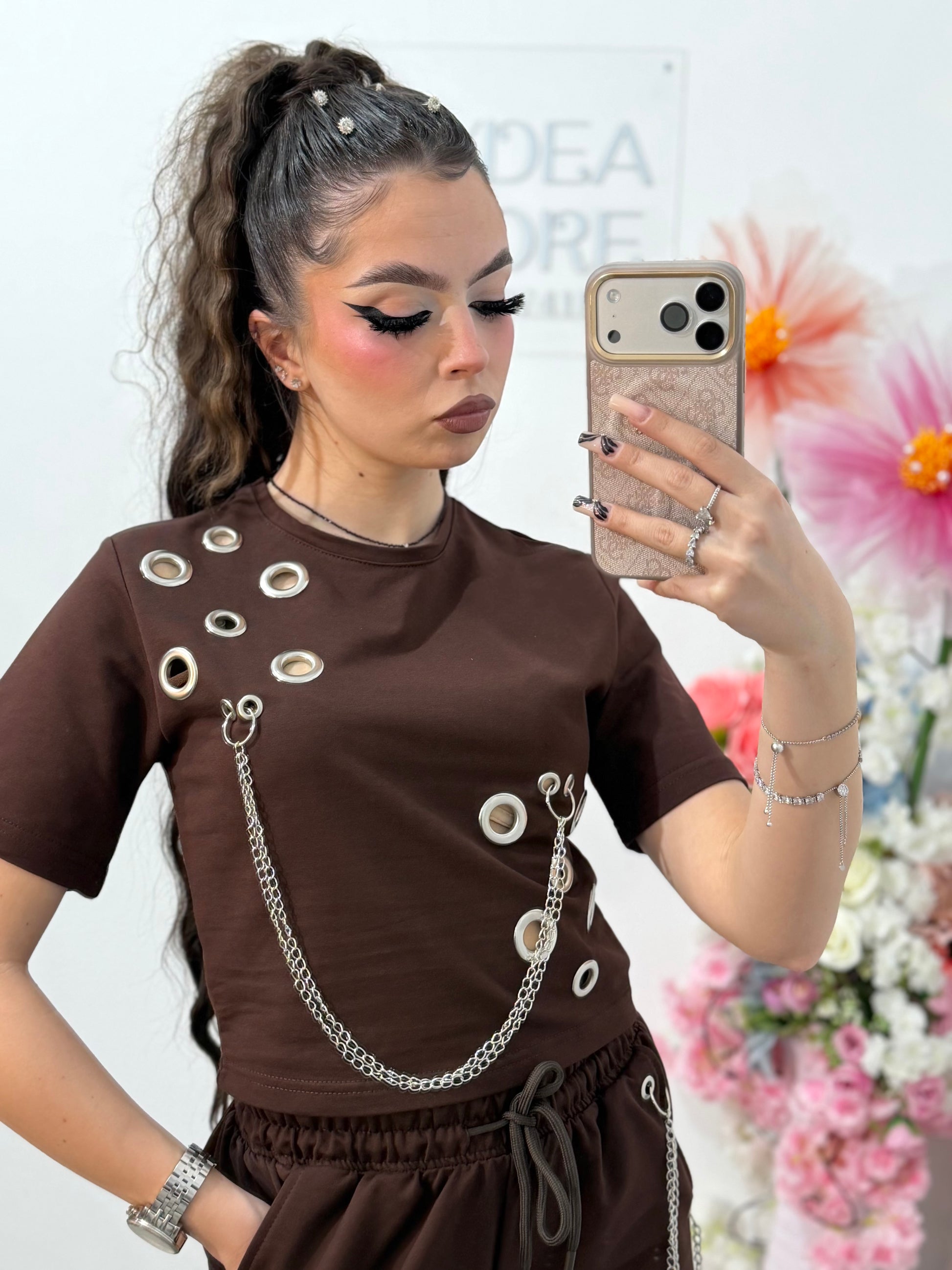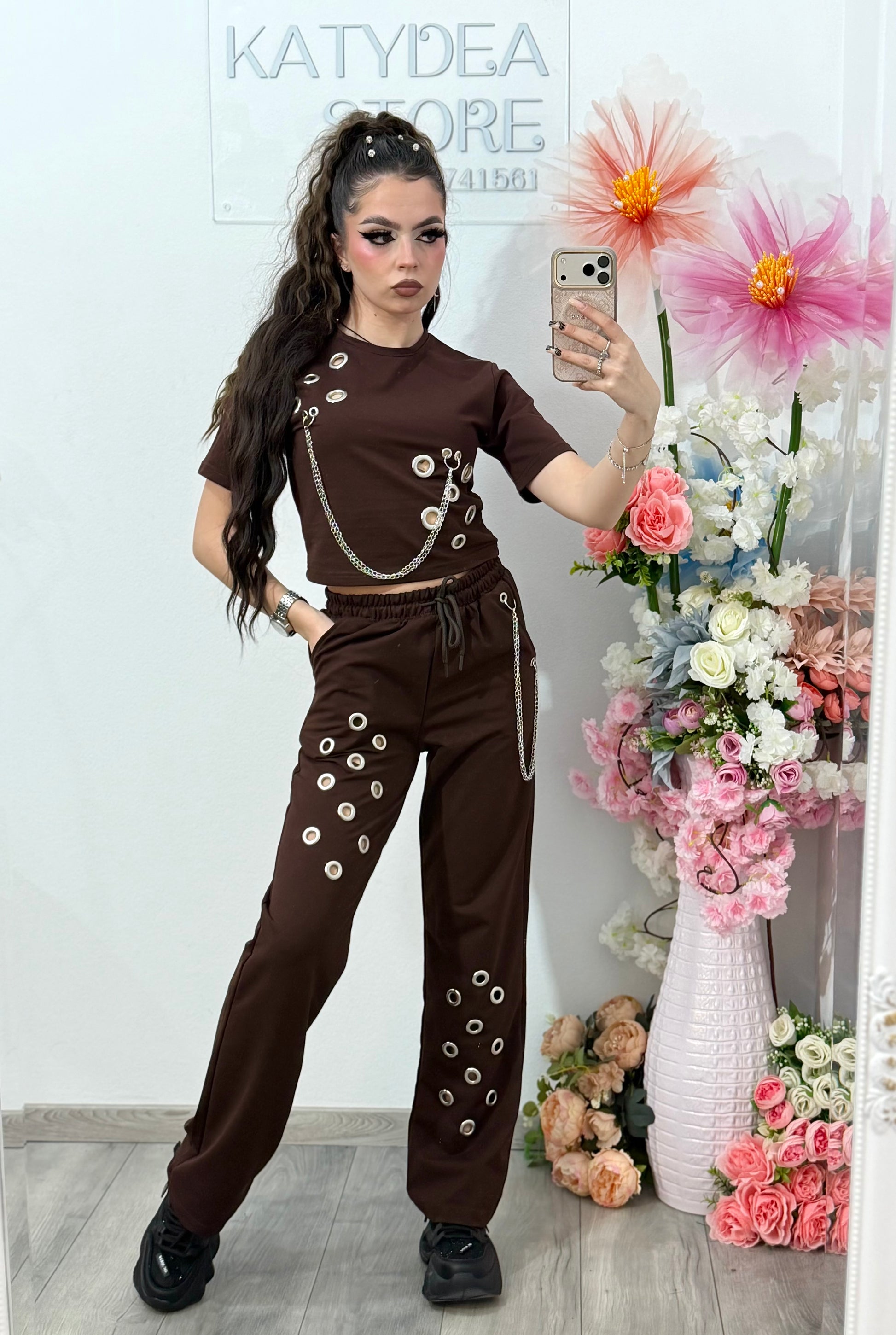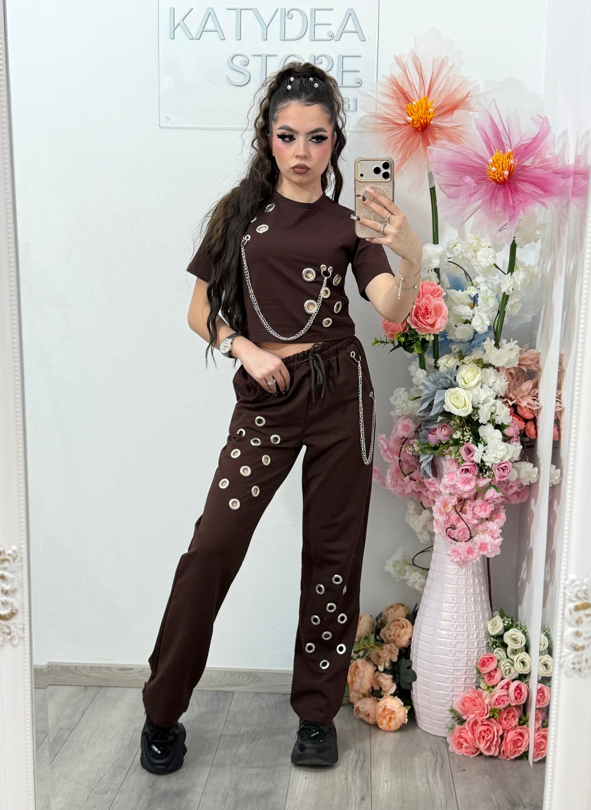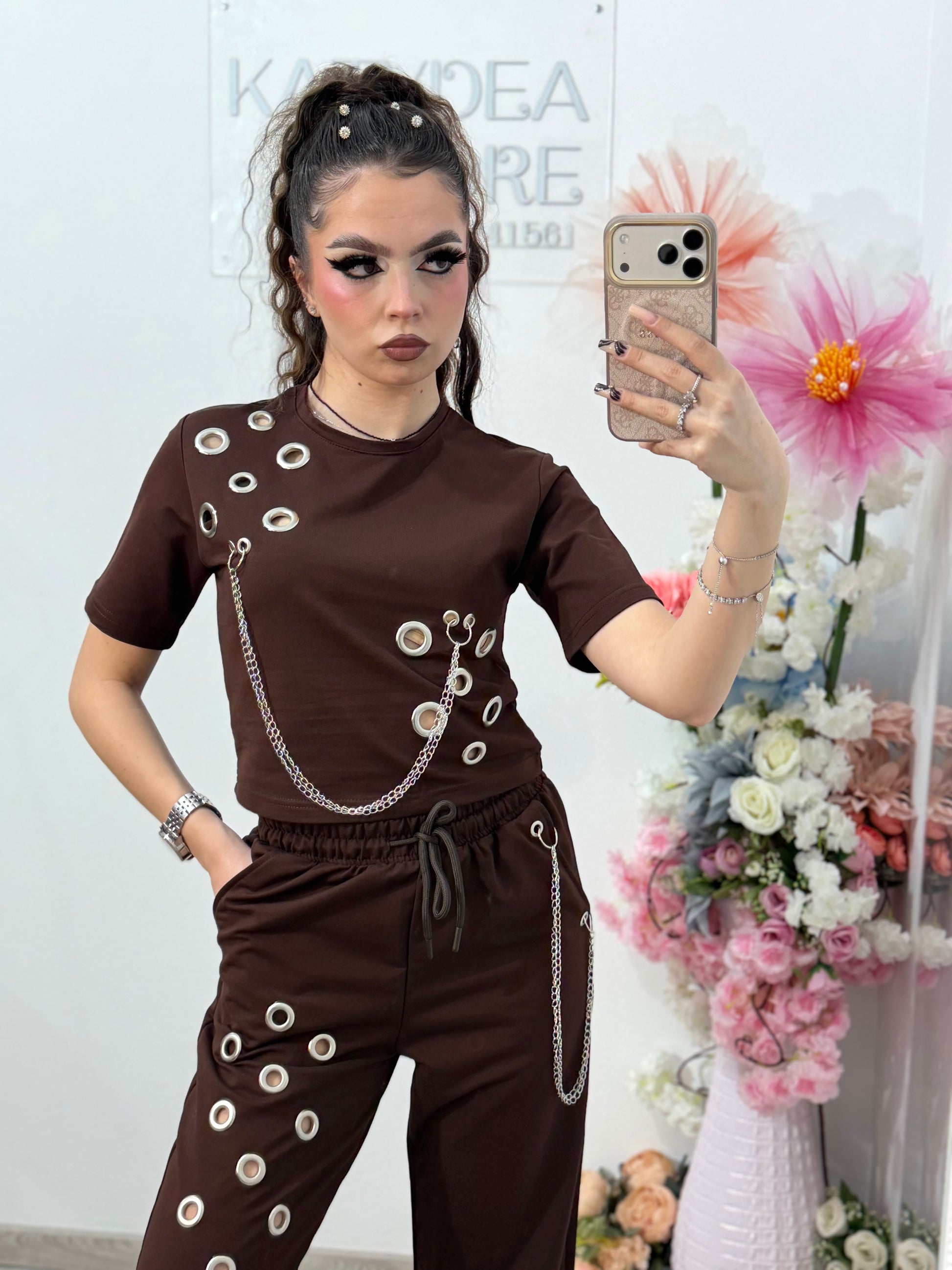 Compleu maro Geo accesorizat cu lănțișoare și inele mari