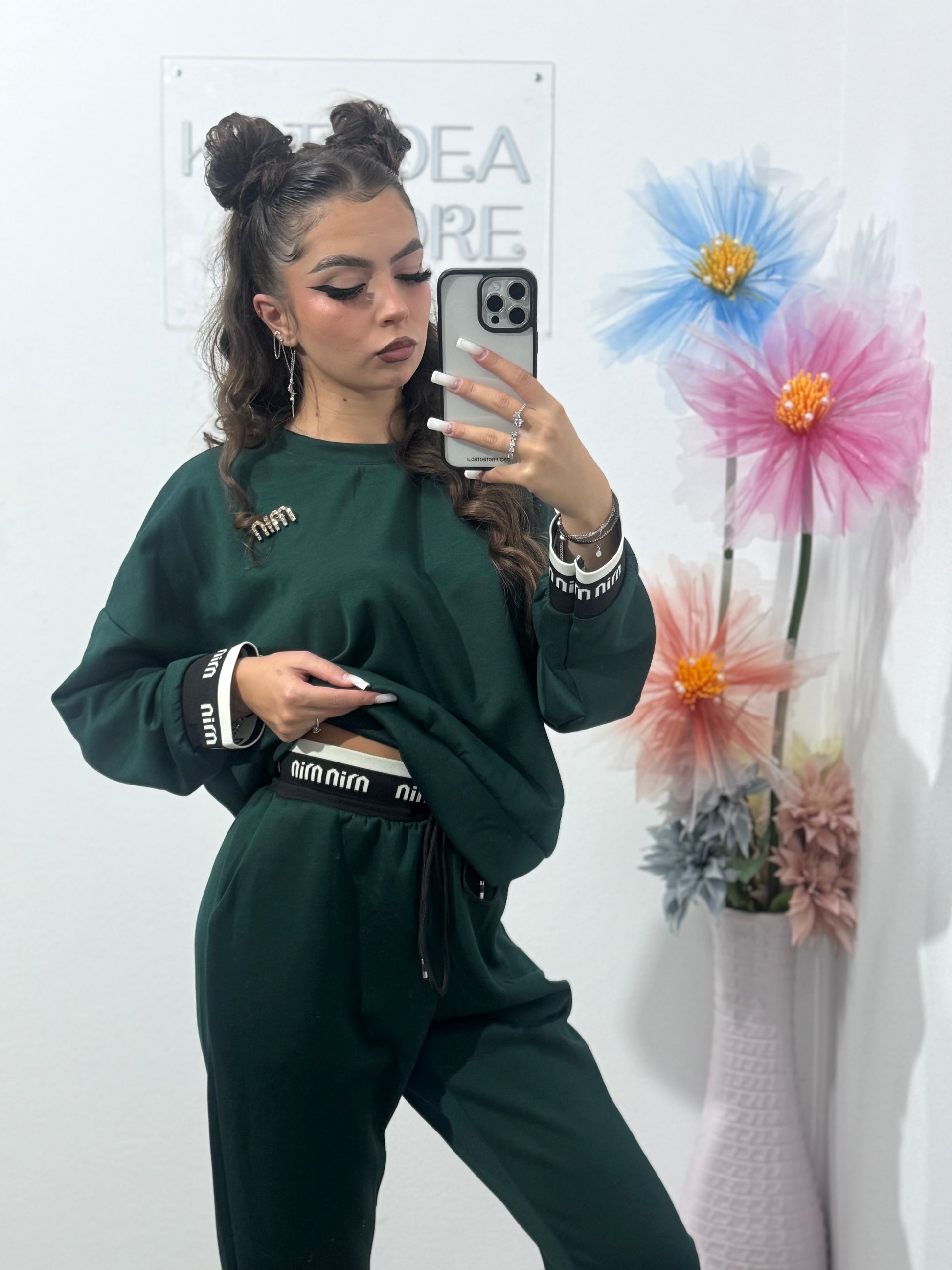 Pantalonii au buzunare laterale , elastic în talie cu detalii MINMIN. Aceștia au șiret în talie care poate fi strâns dacă este necesar.