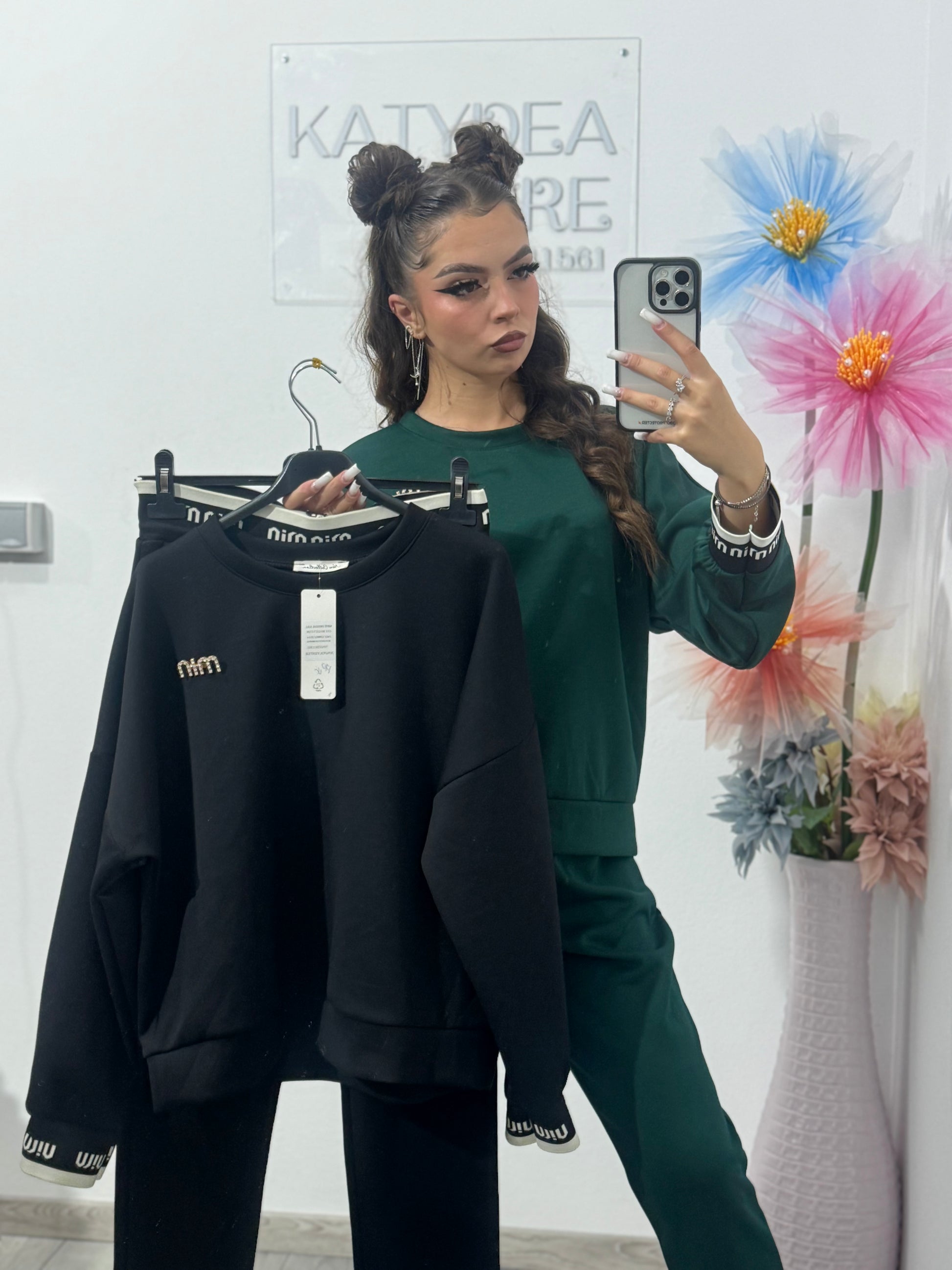 Bluza este accesorizata cu elastice la mâneci MiuMIN, și vine împreună cu o broșă Min.