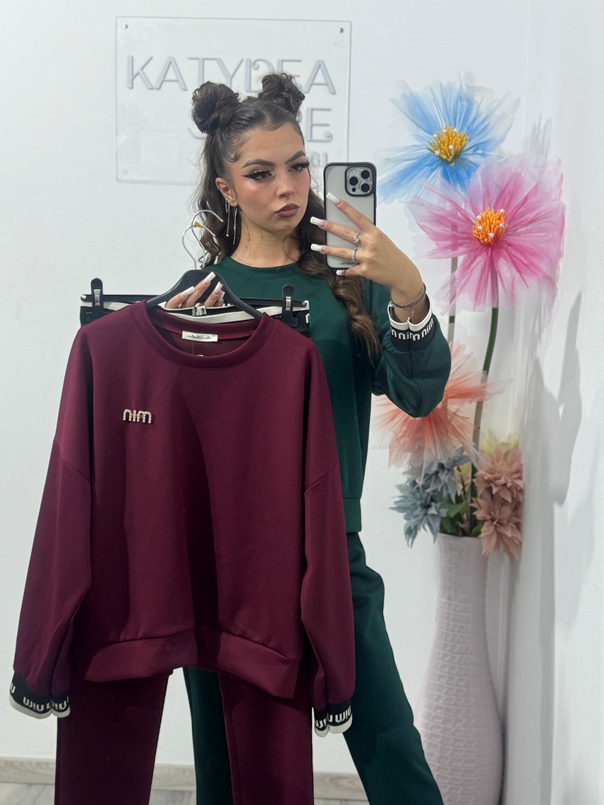 Compleu din vâscoză de înaltă calitate format din bluză și din pantaloni conici.