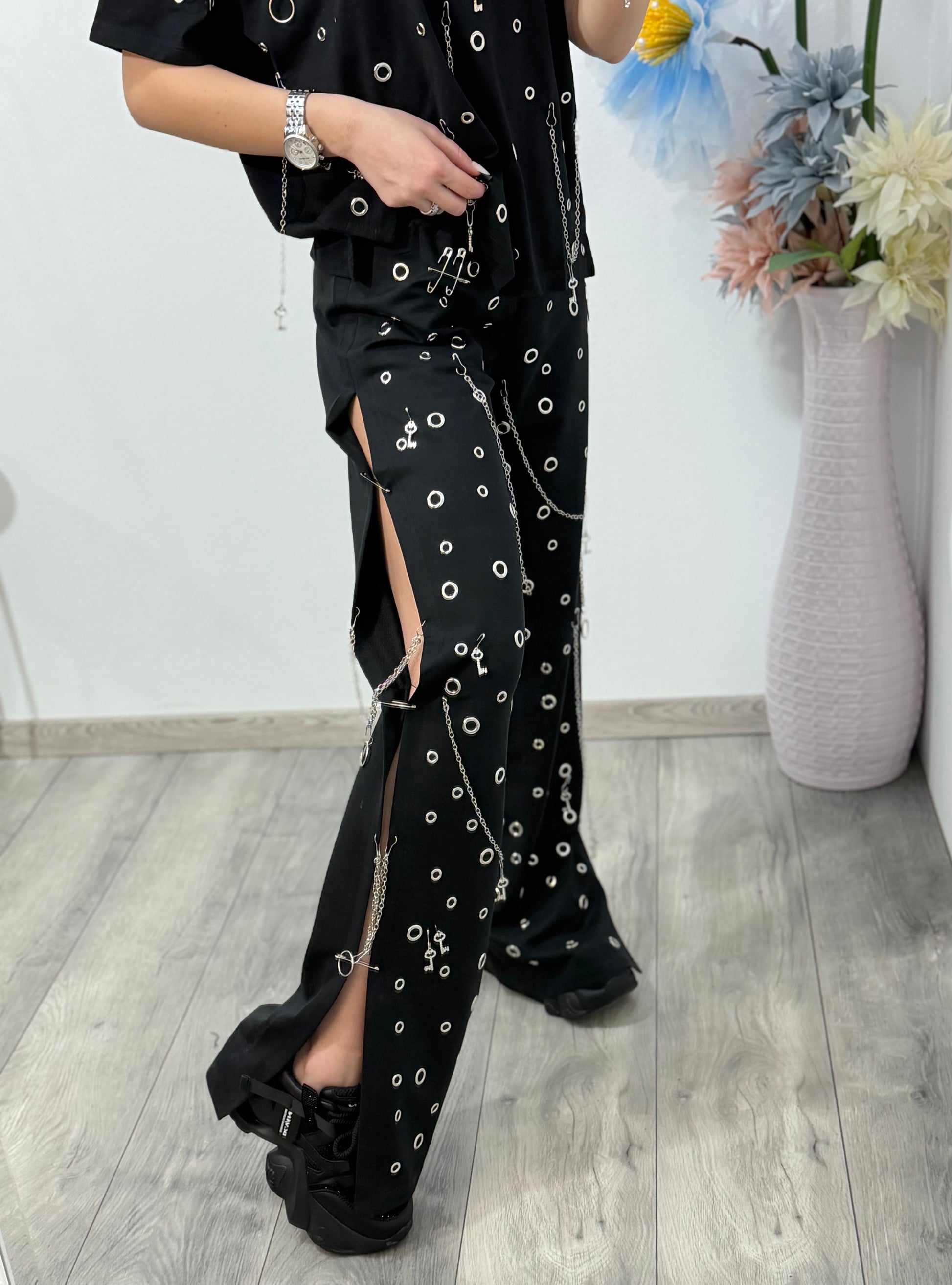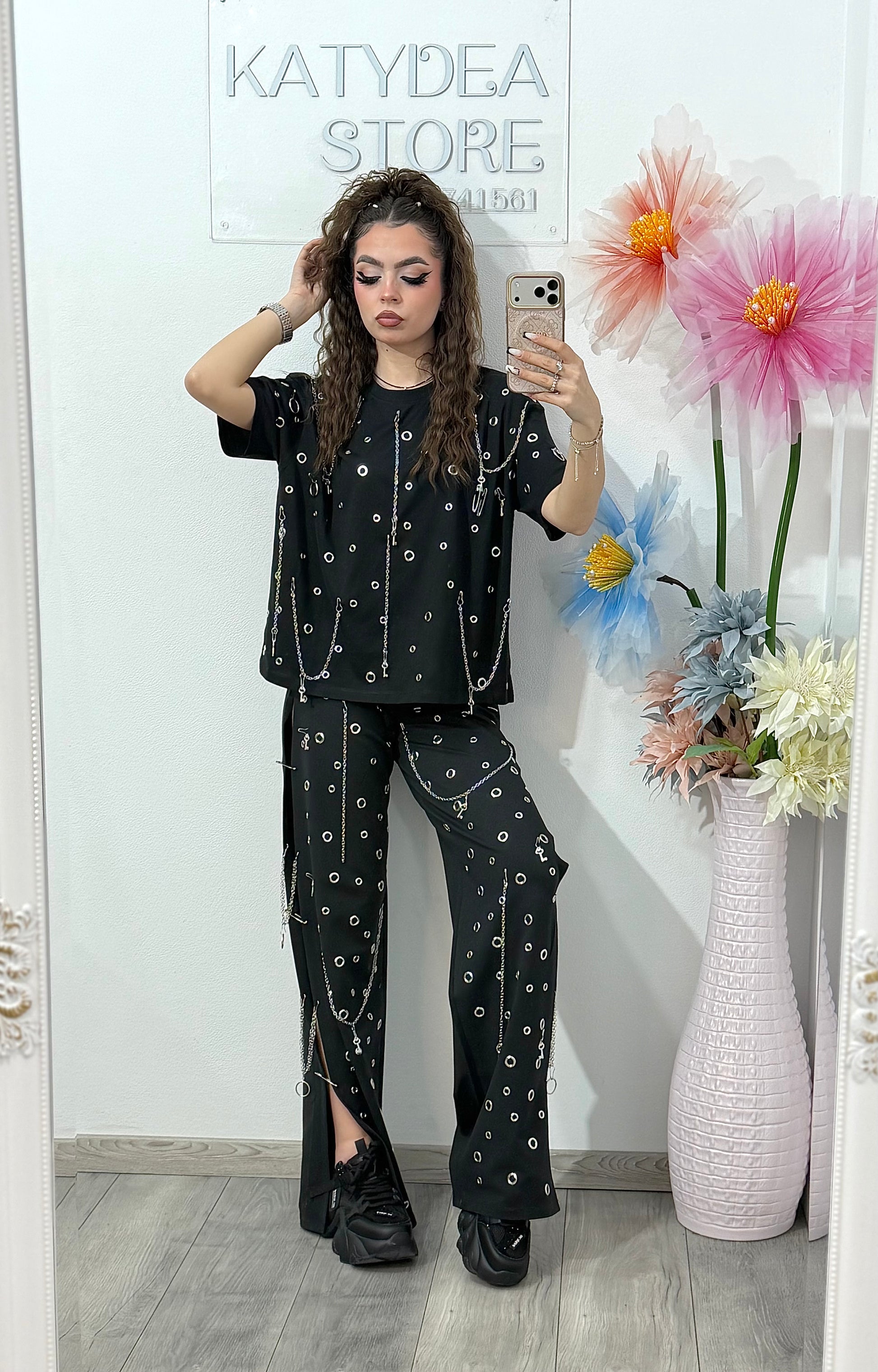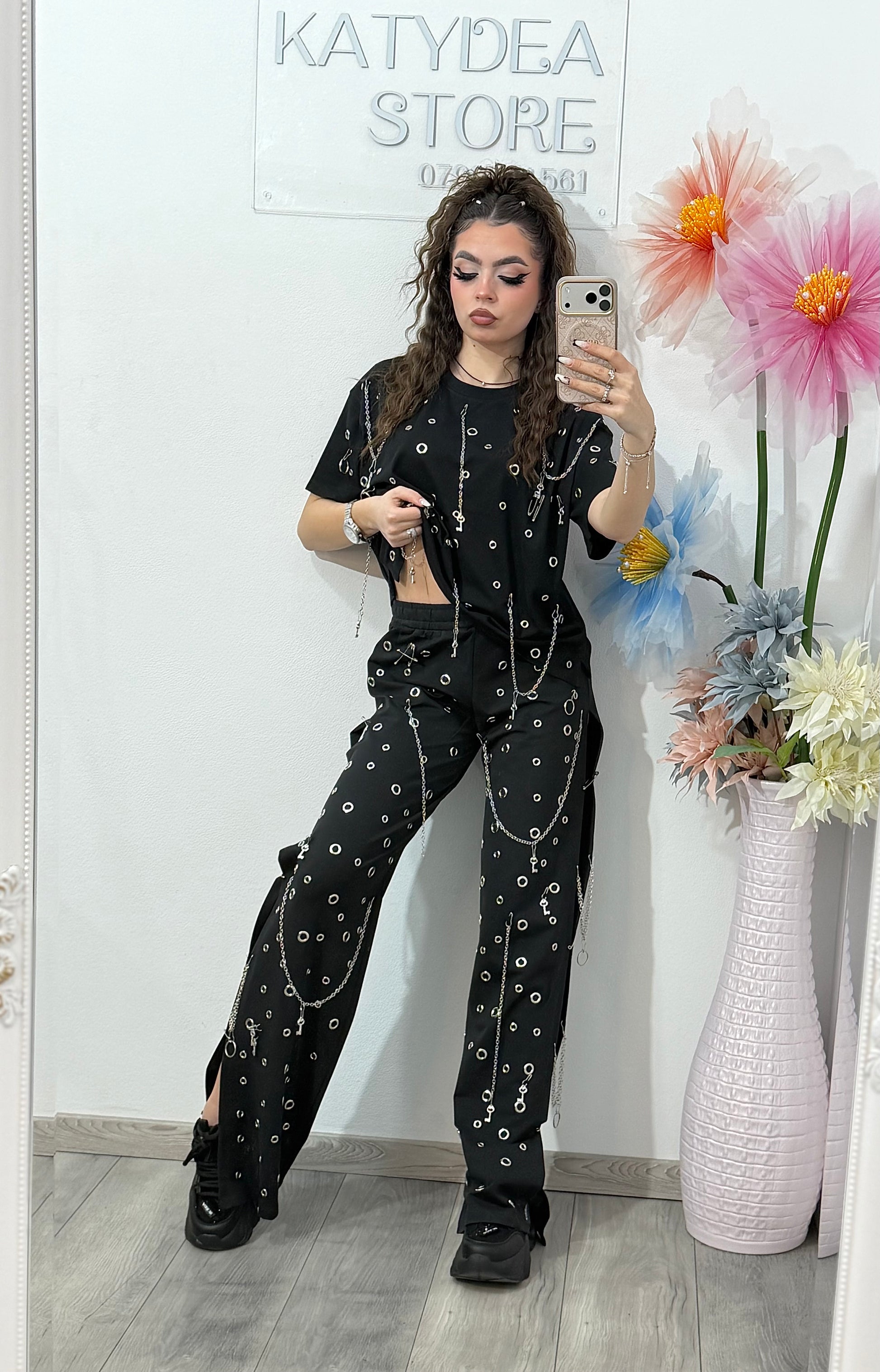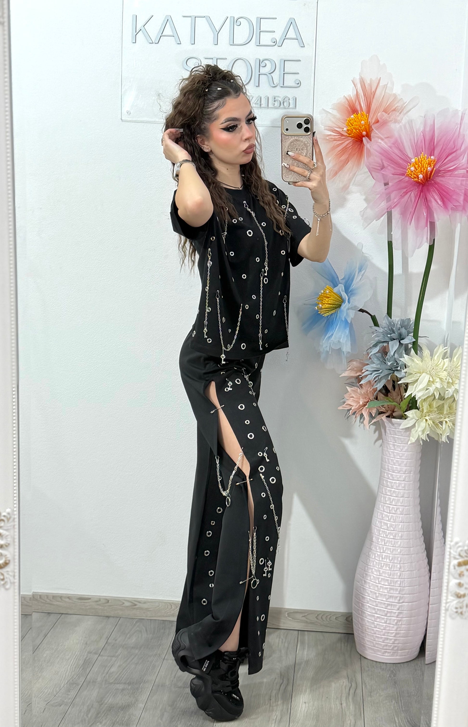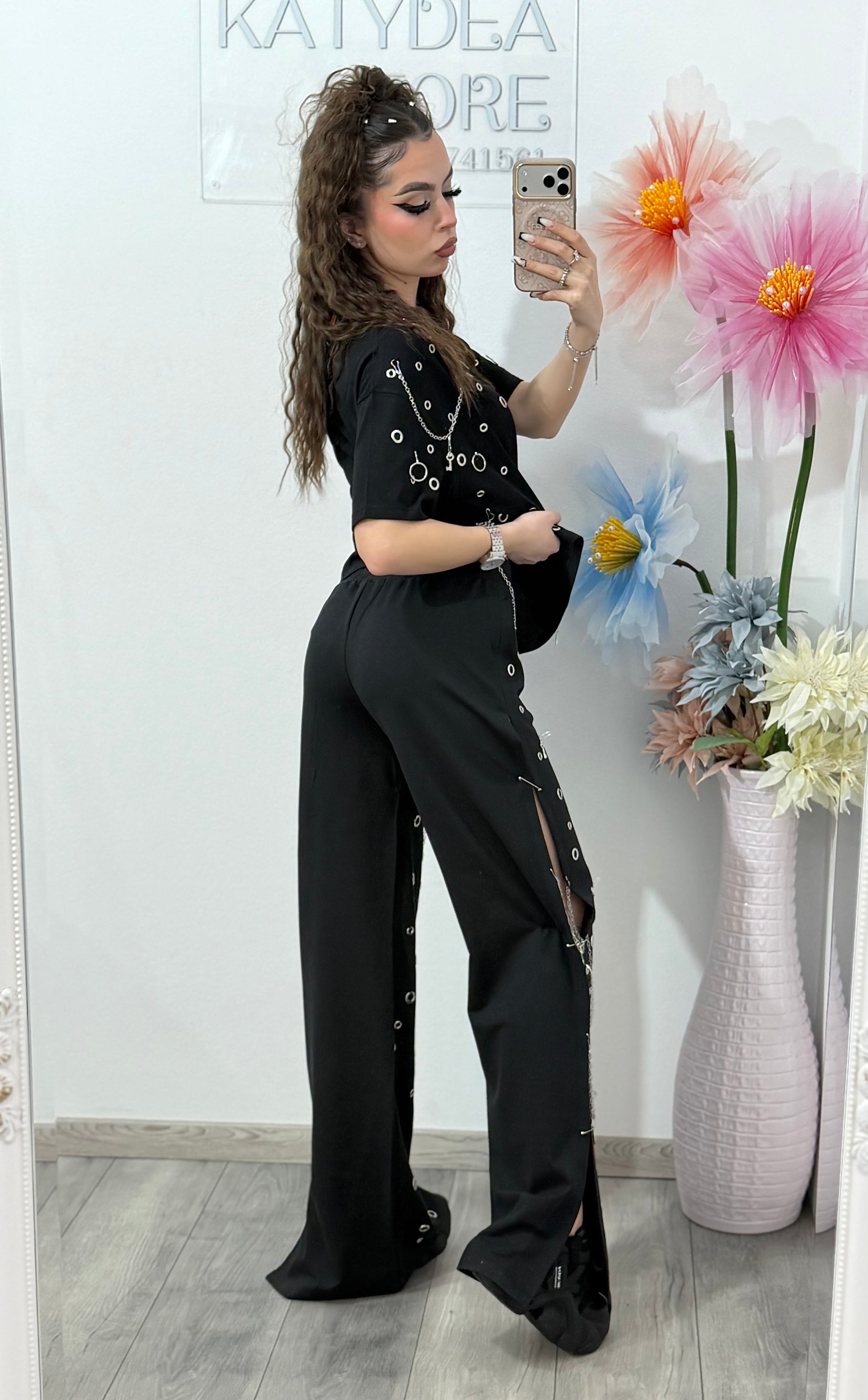 Compleu negru cu detalii argintii și cu bolduri FREYA