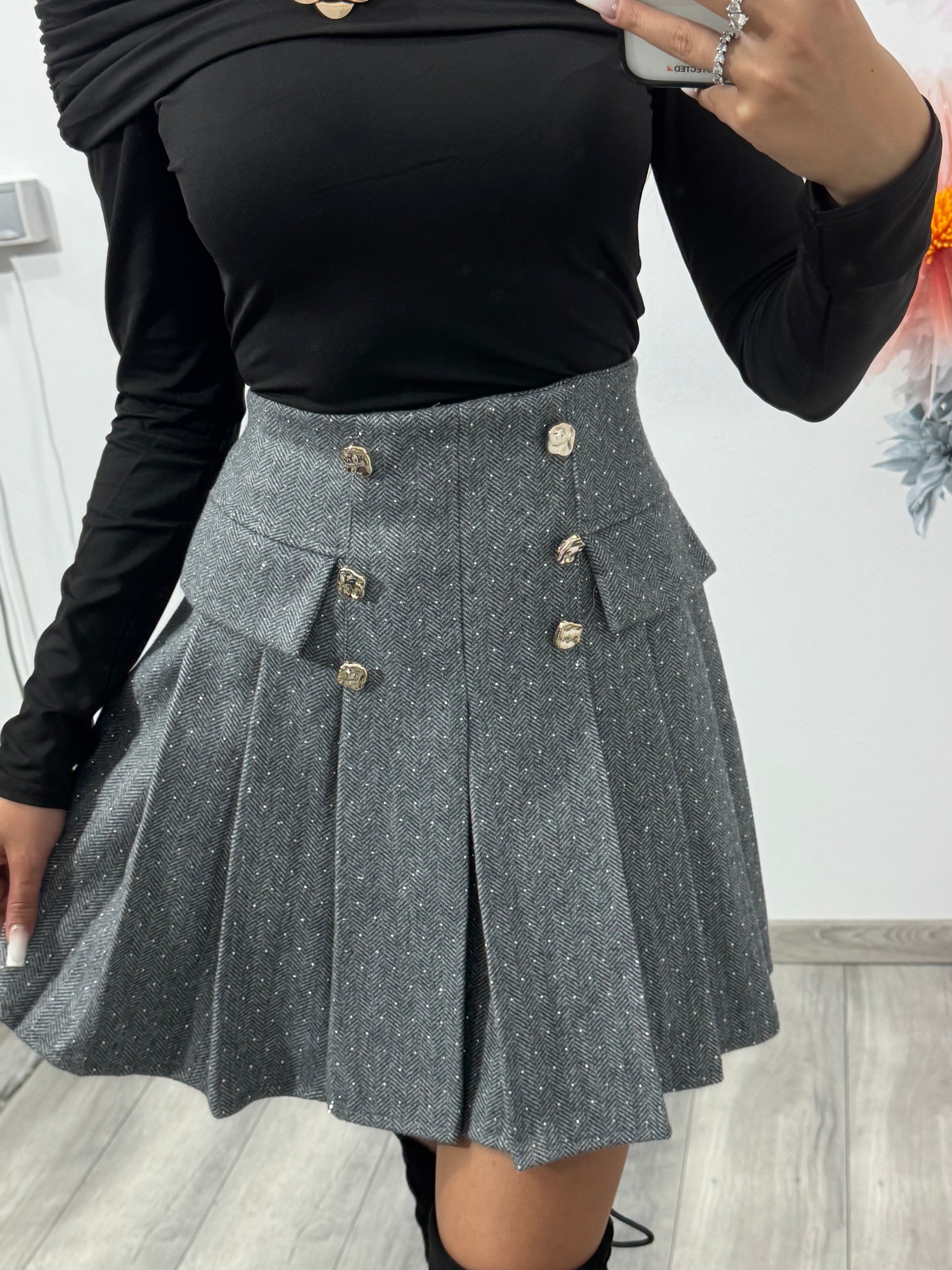 Fustă plisată din stofă și lână Eliza