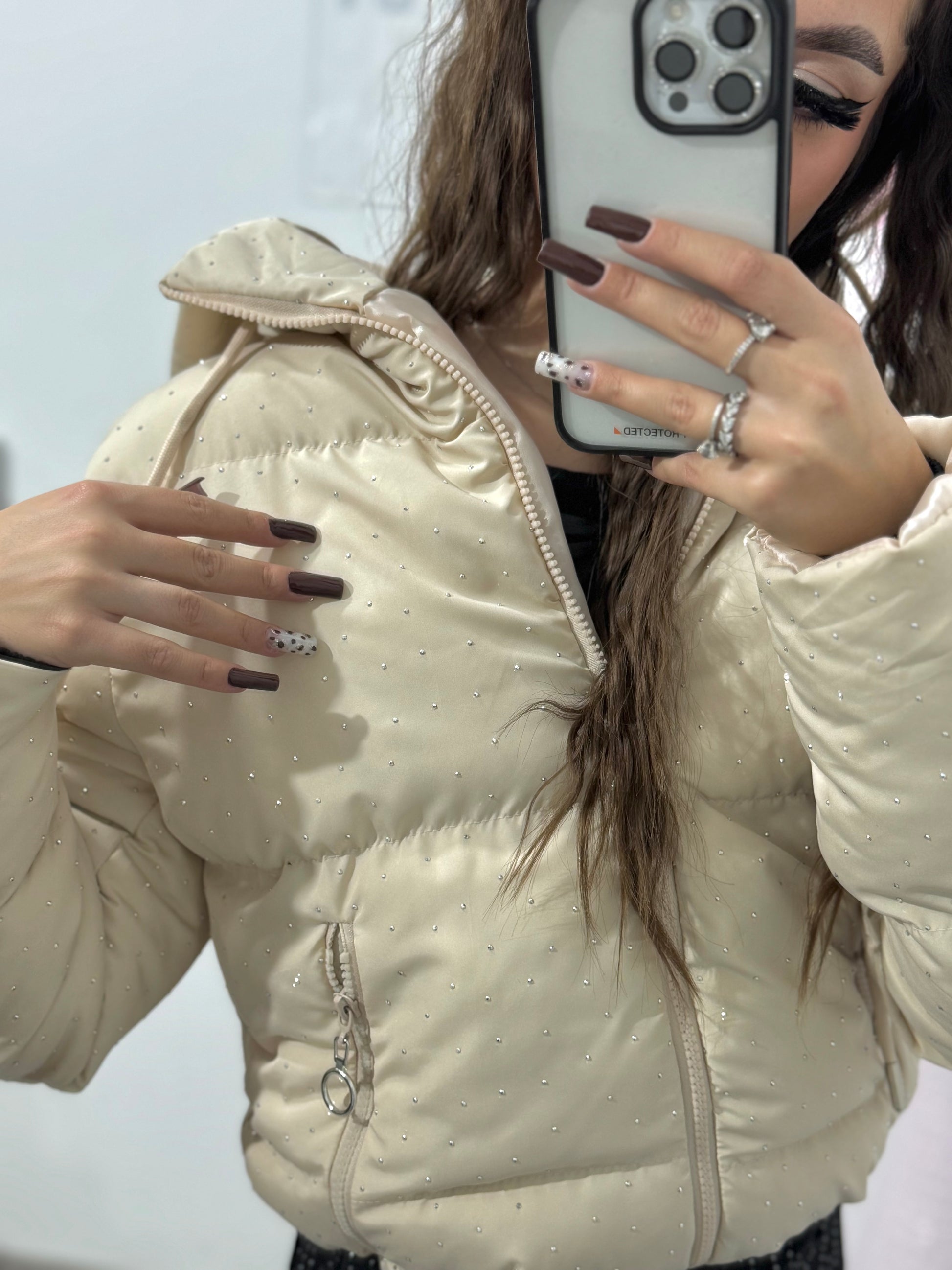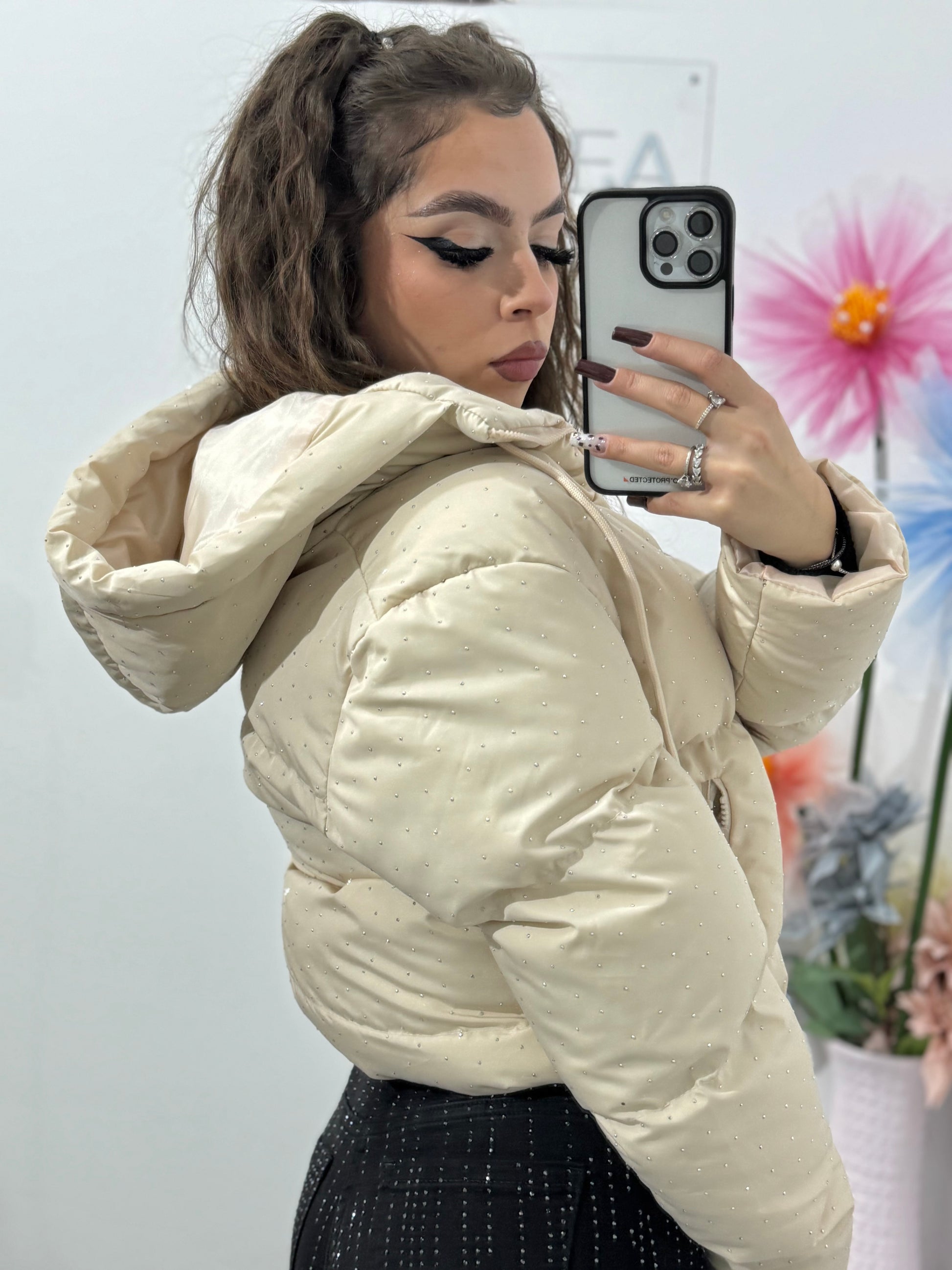 Geacă puffer cu cristale ștanțate pe toată suprafața