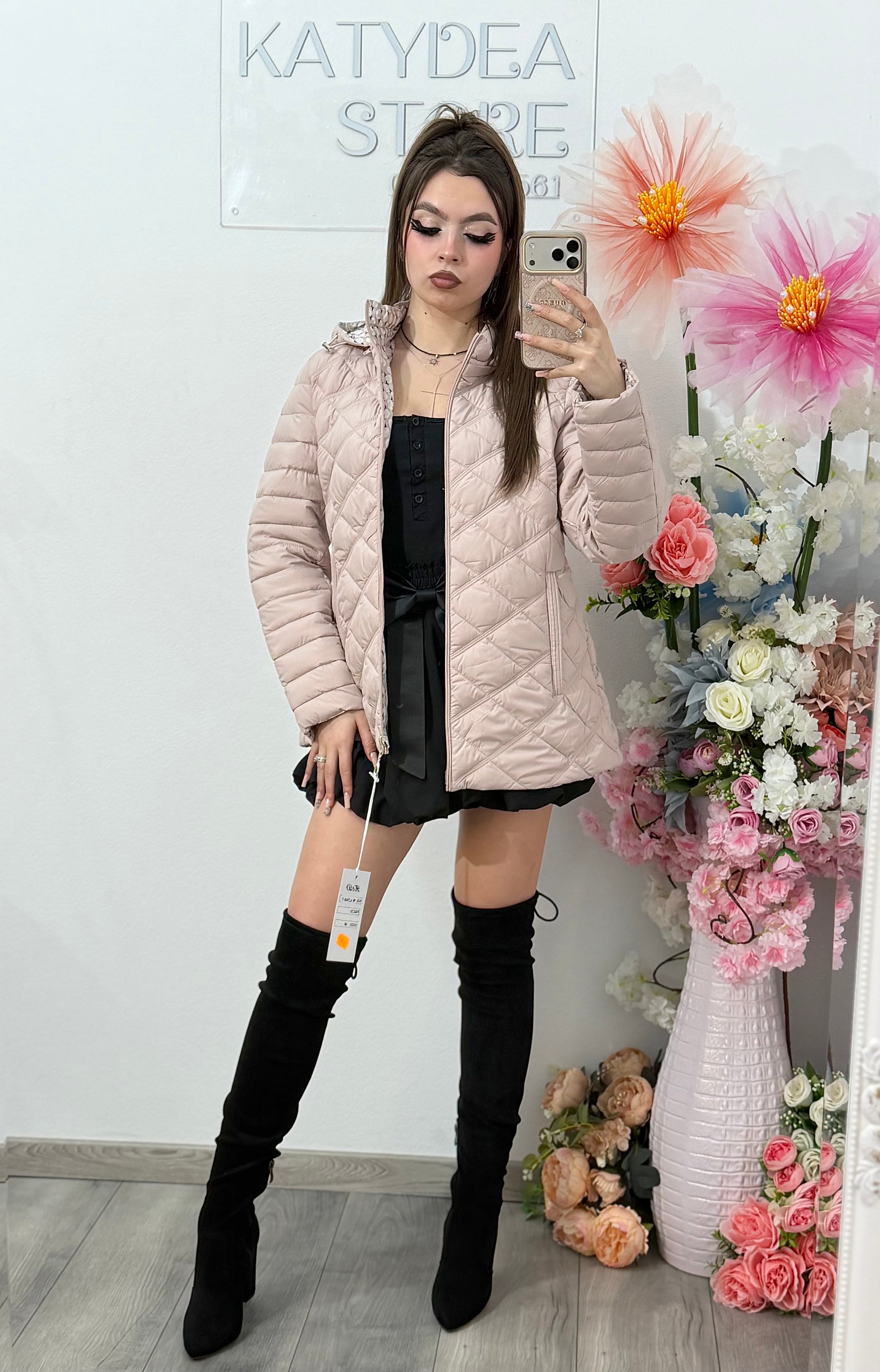 Această geacă cu dublă față este un model versatil și feminin, potrivit pentru ținute casual sau smart-casual.