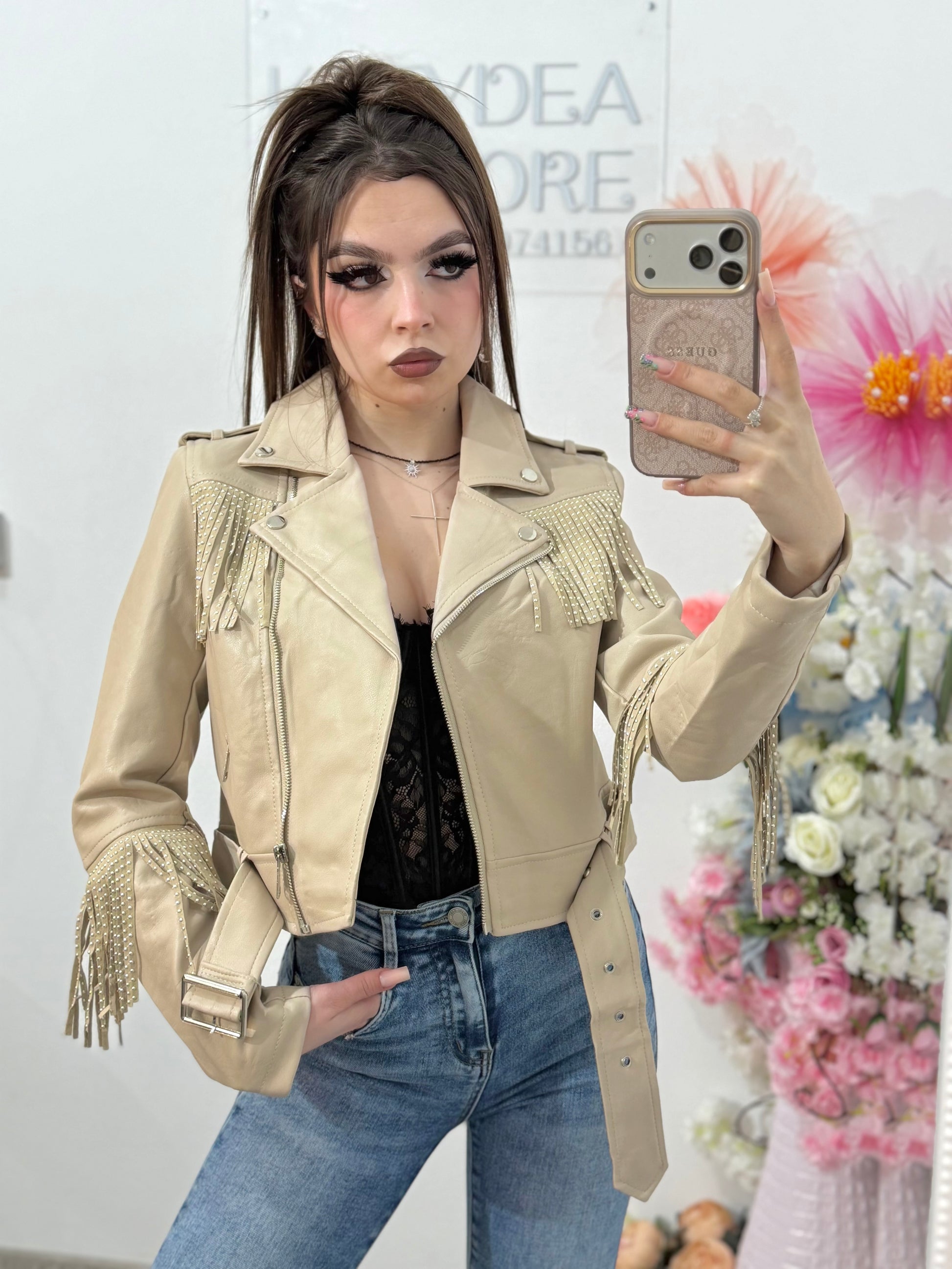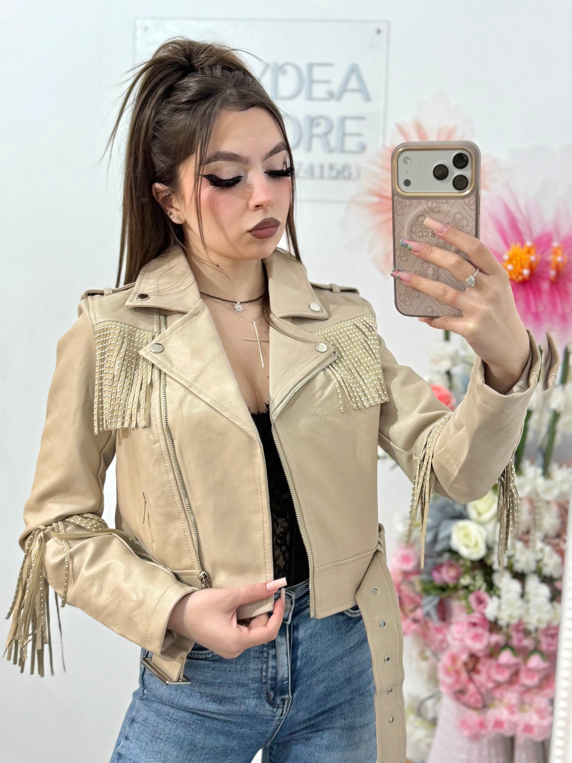 Geacă biker cu franjuri strălucitoare