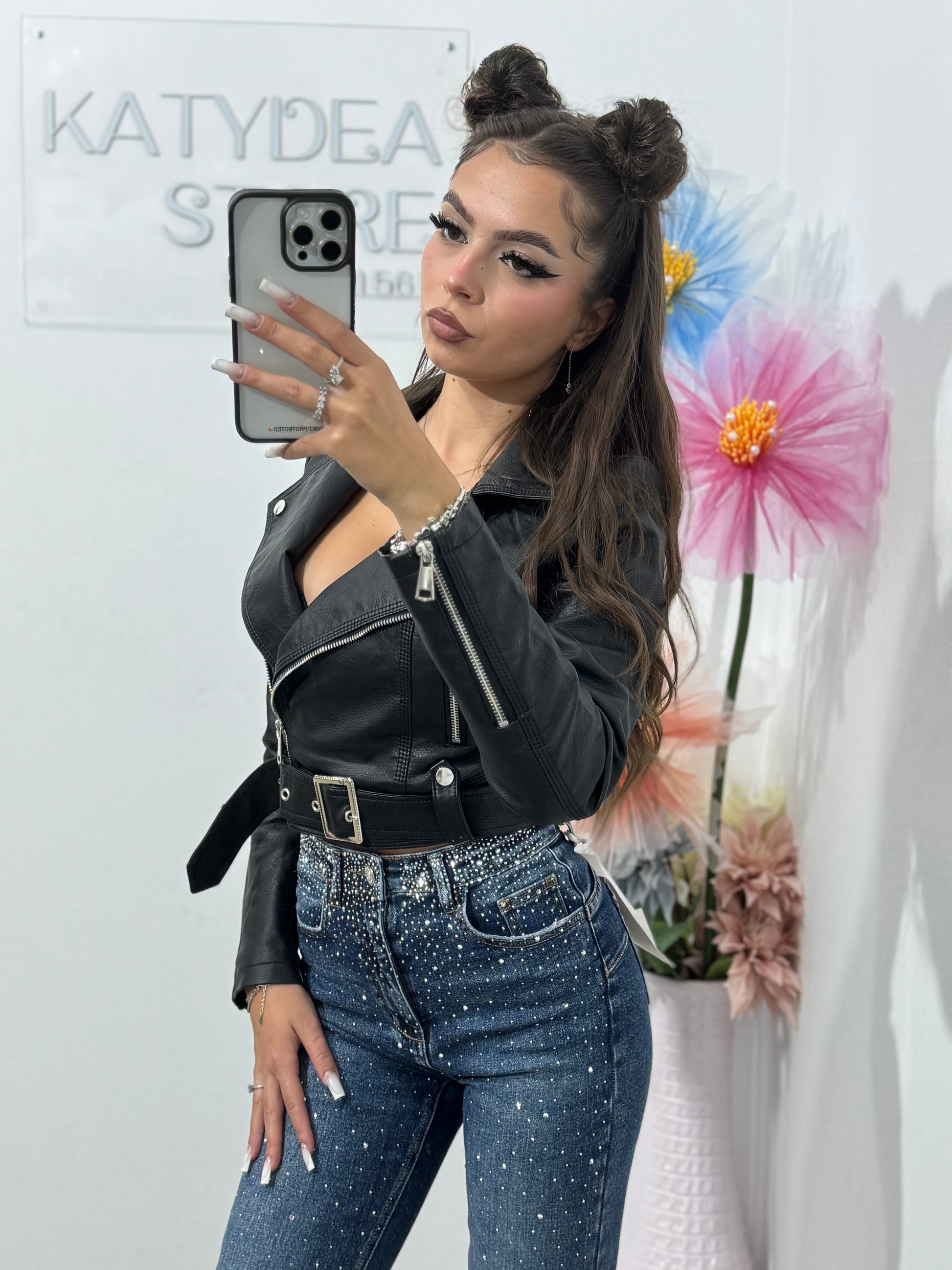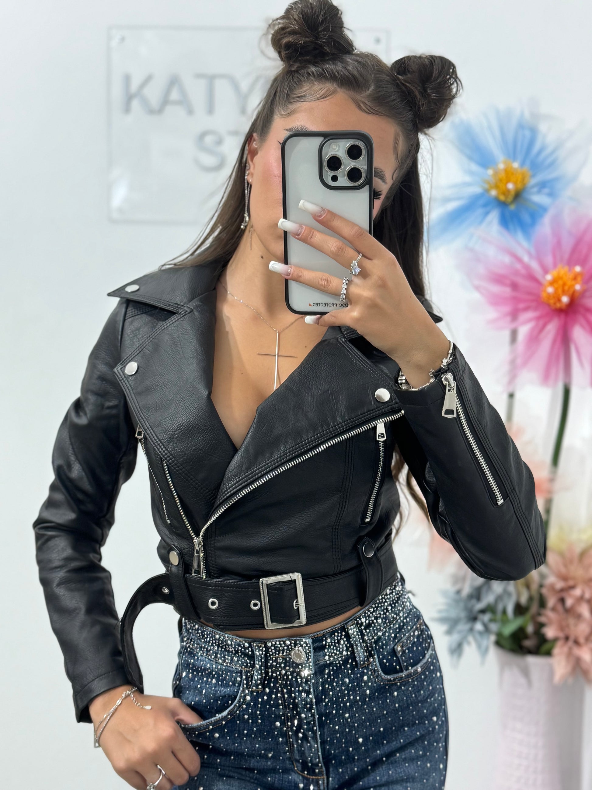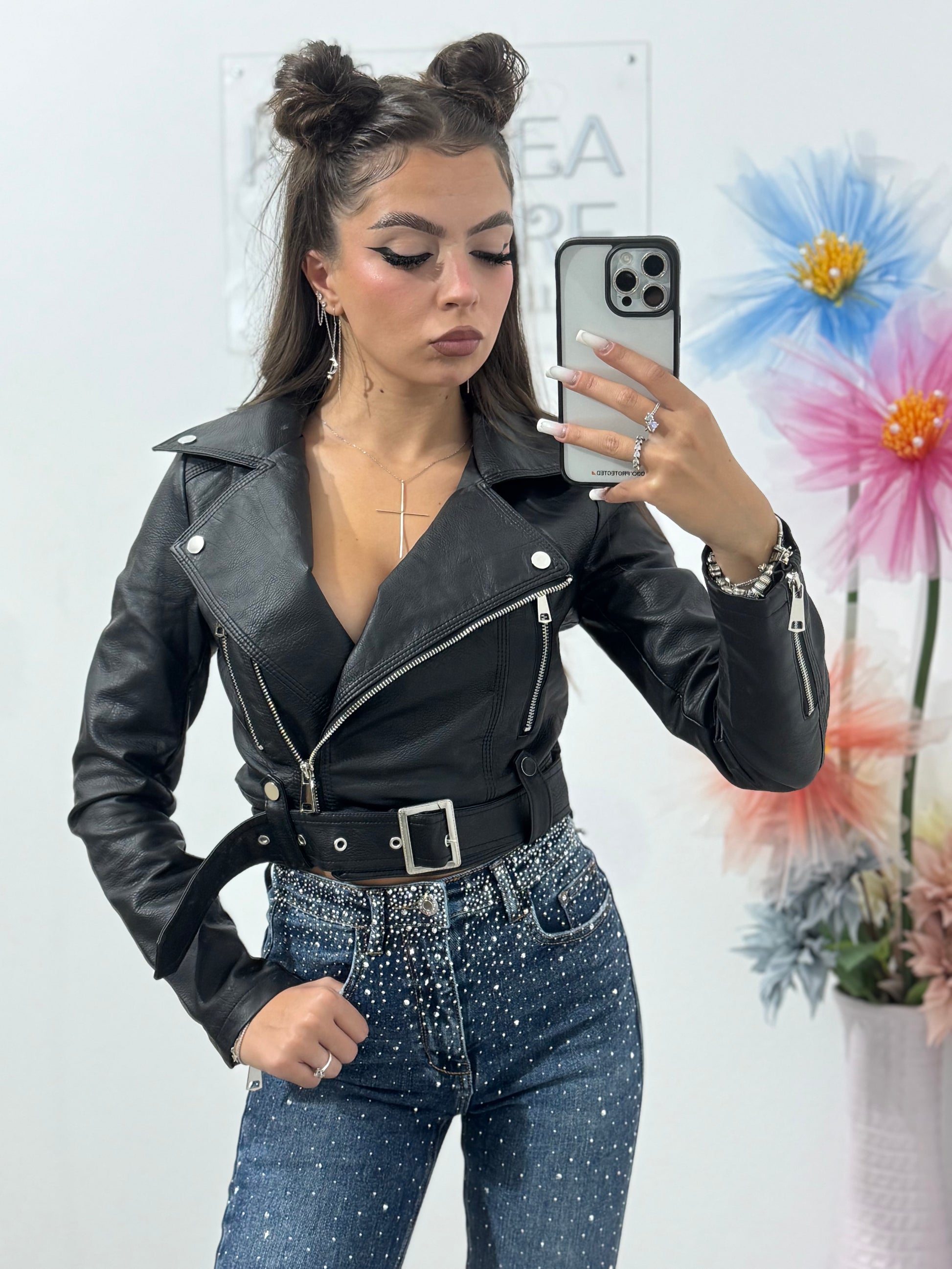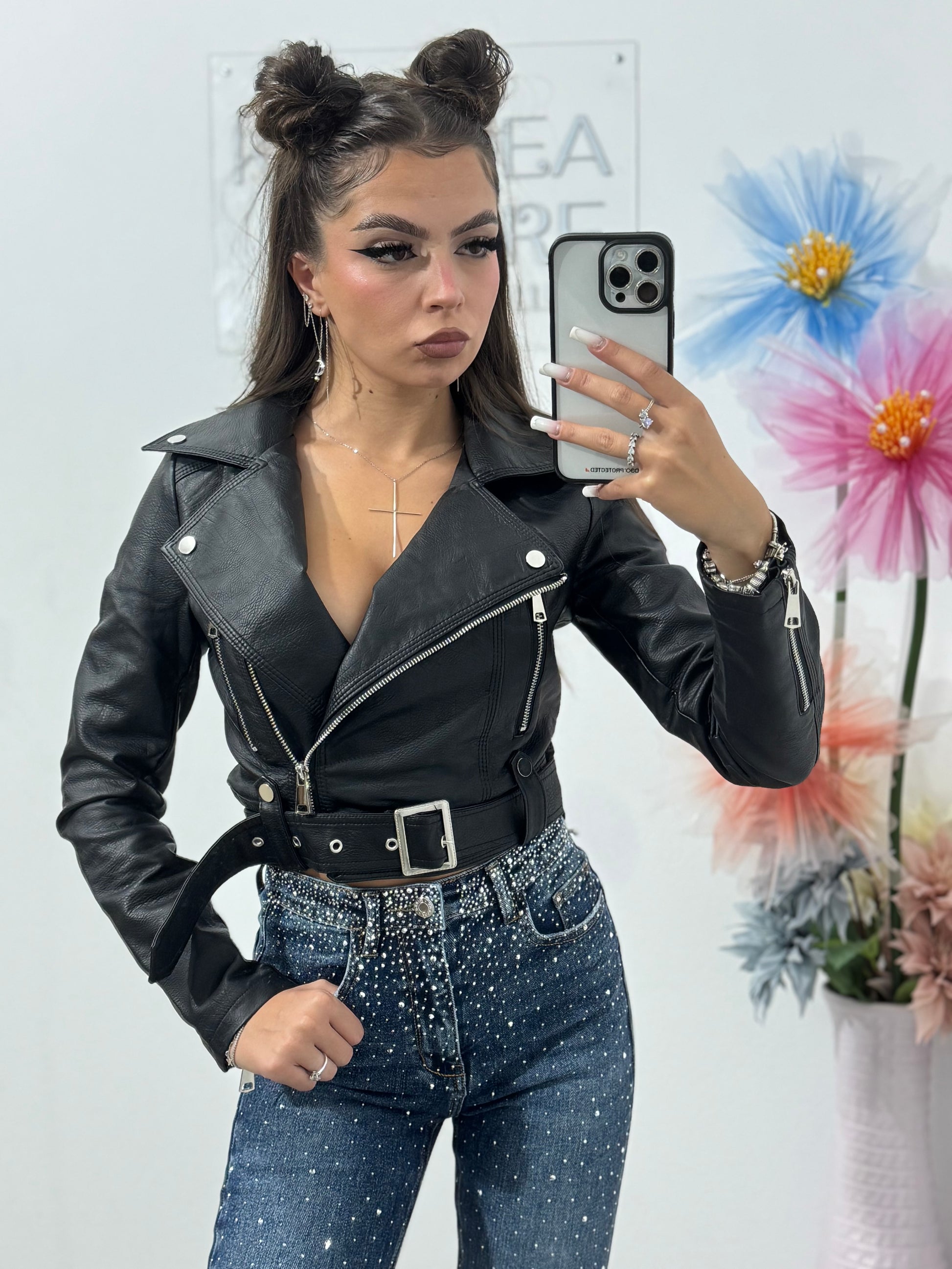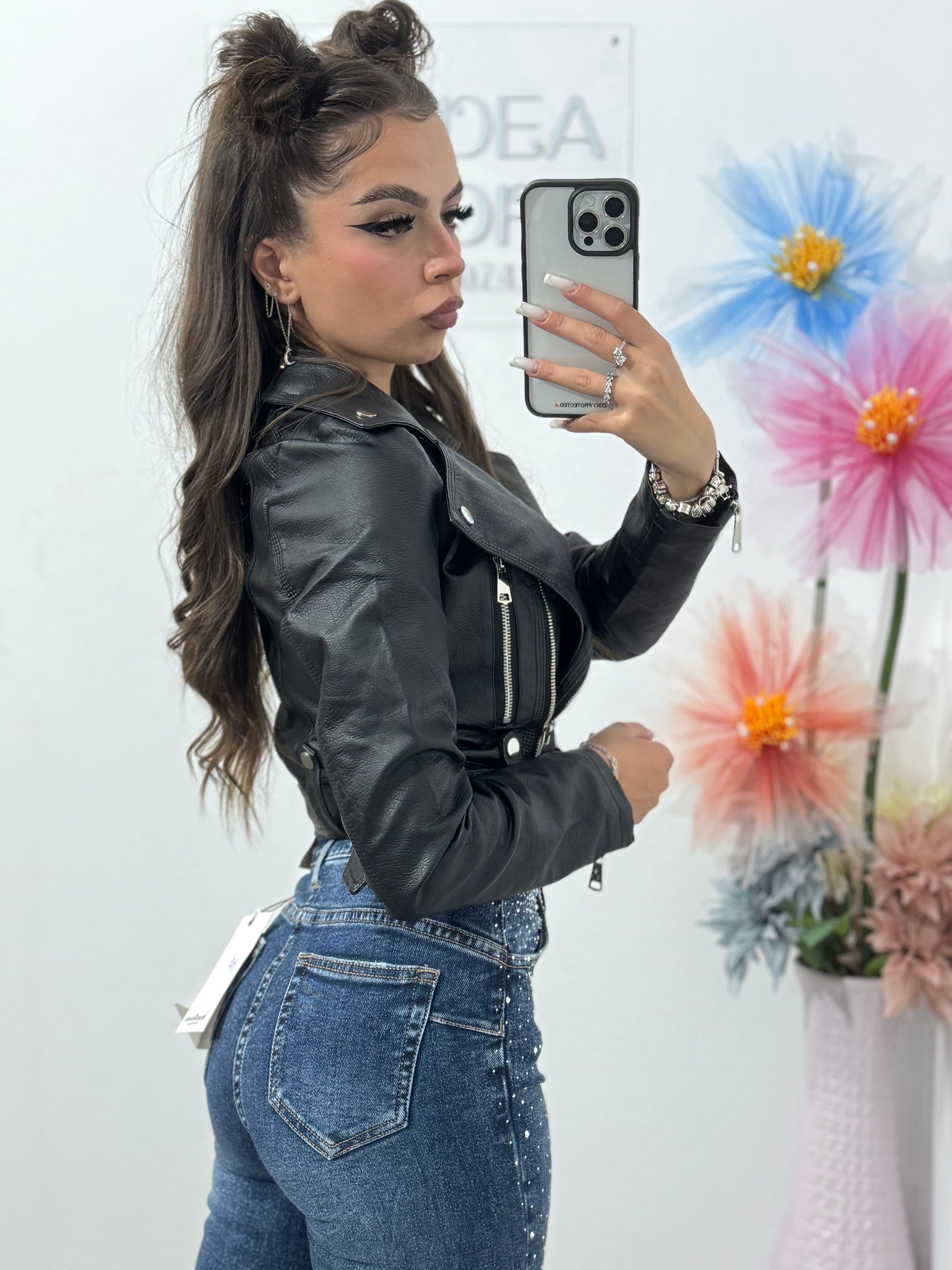 Geacă din imitație de piele neagră Ioana