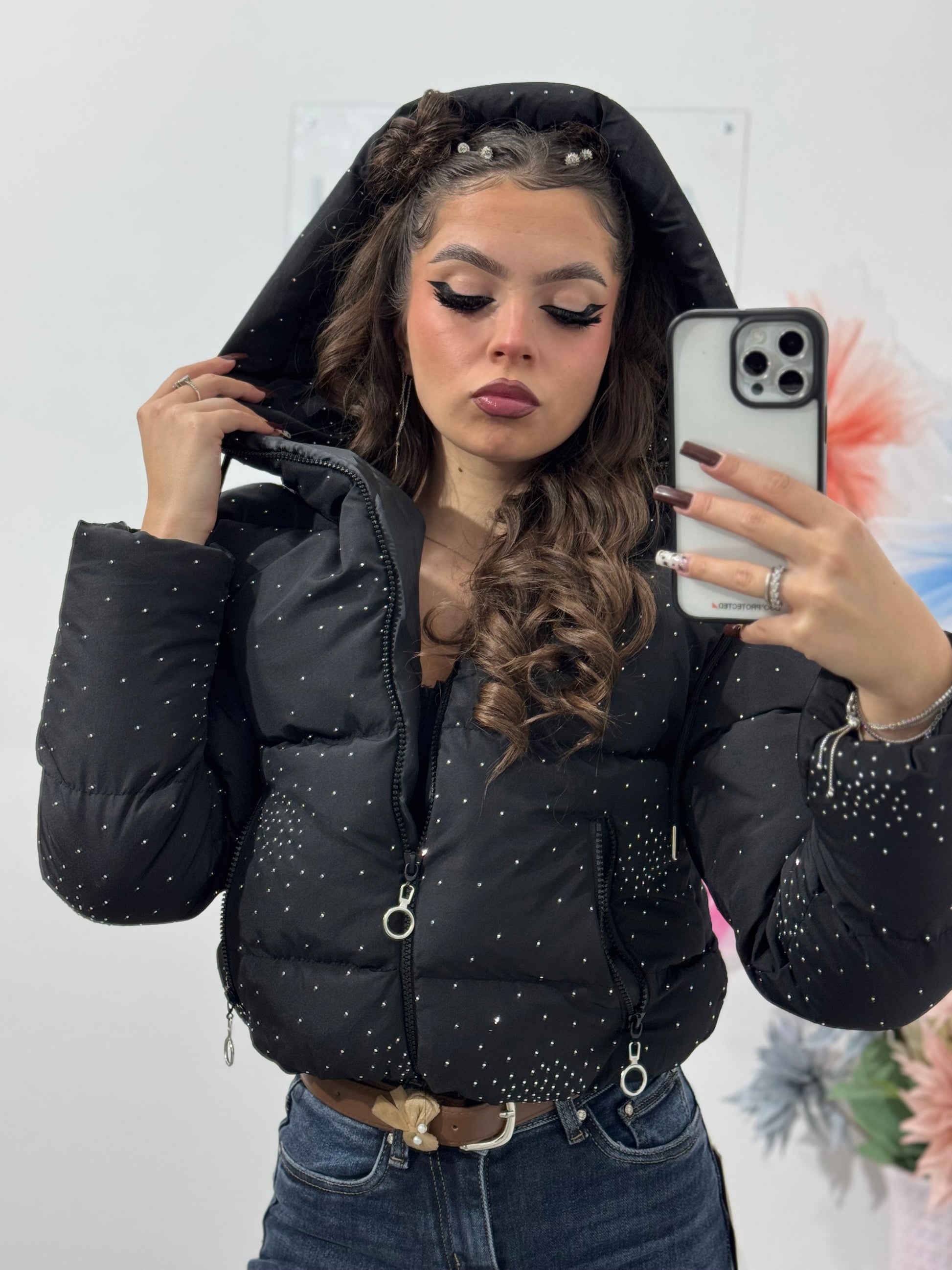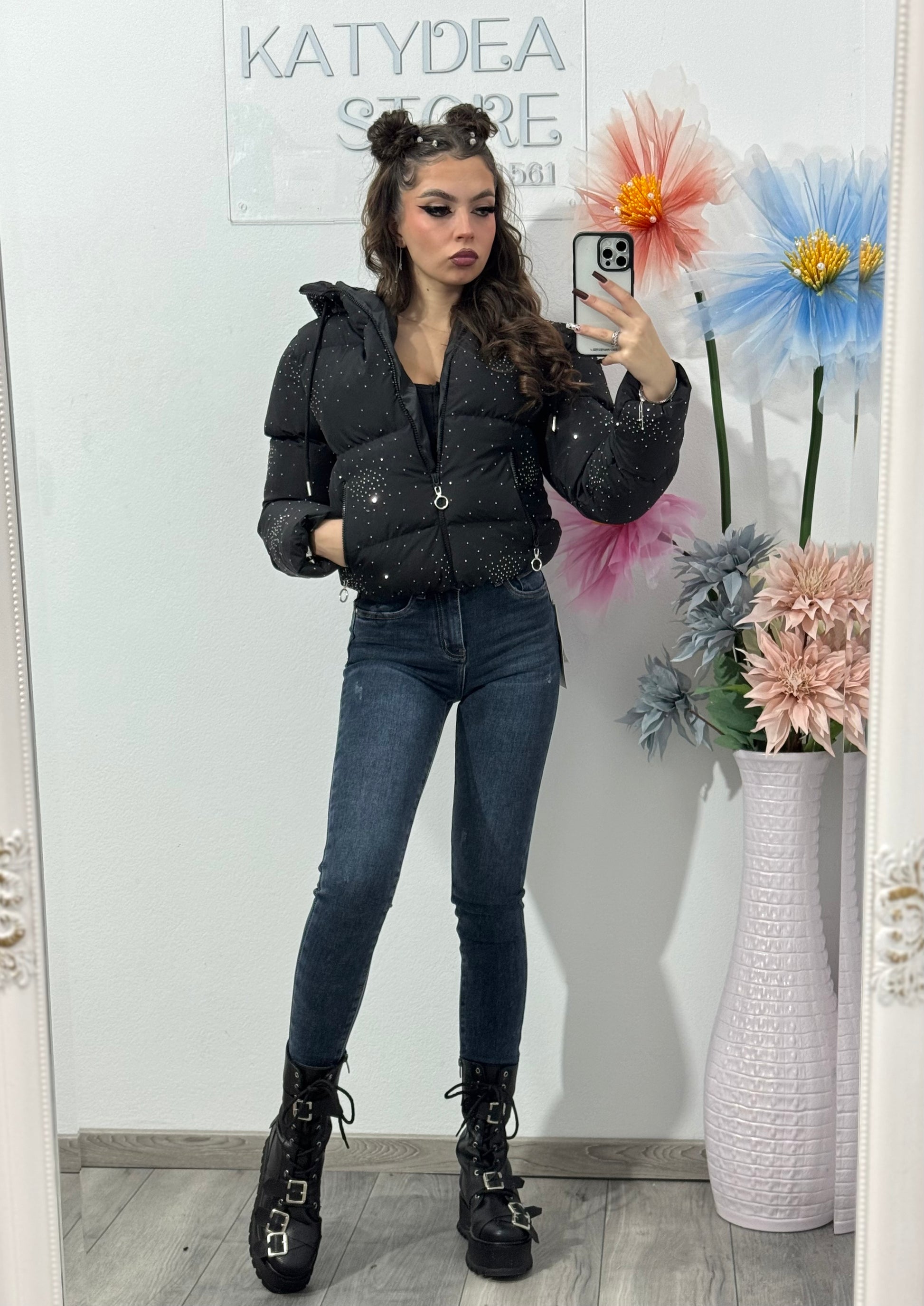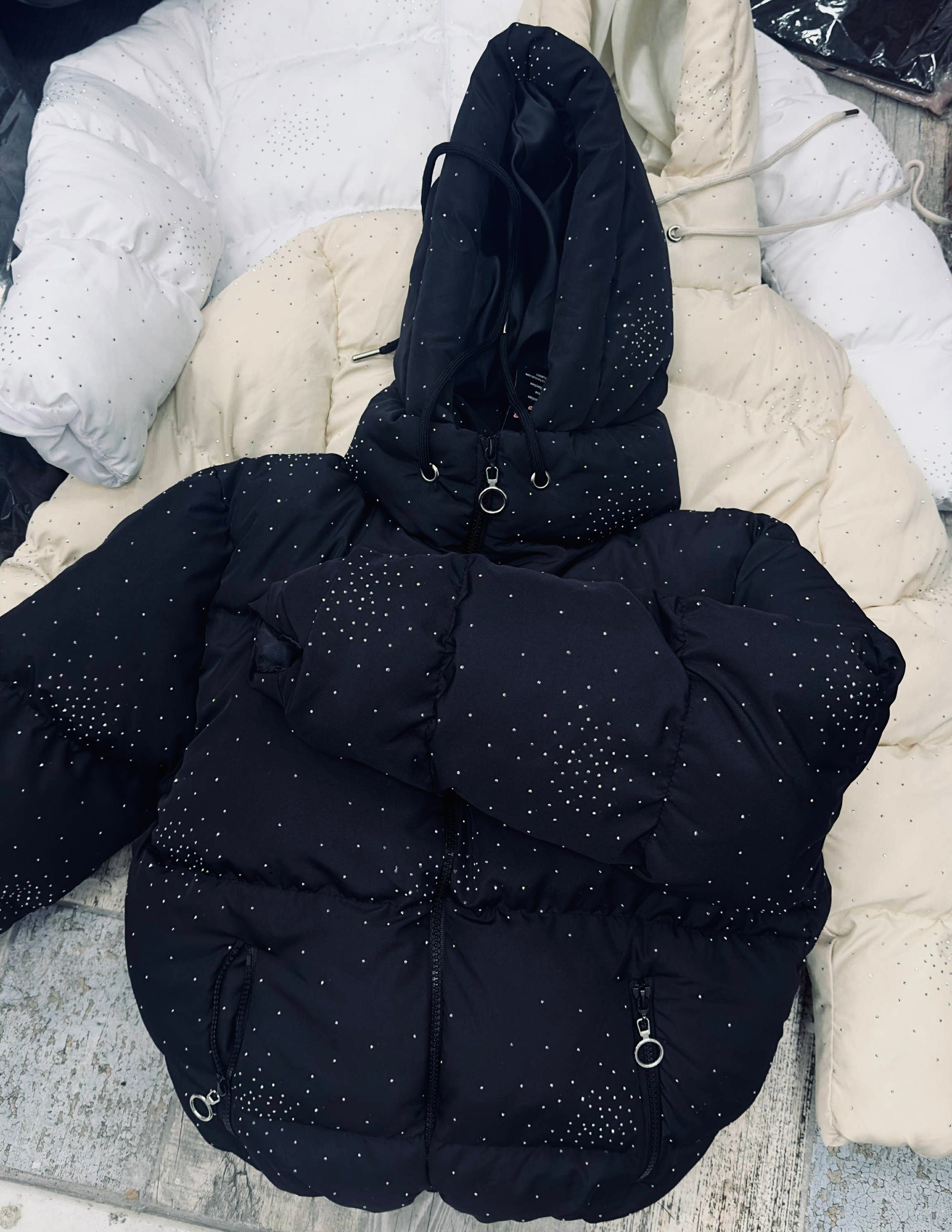 Geacă puffer cu cristale ștanțate pe toată suprafața