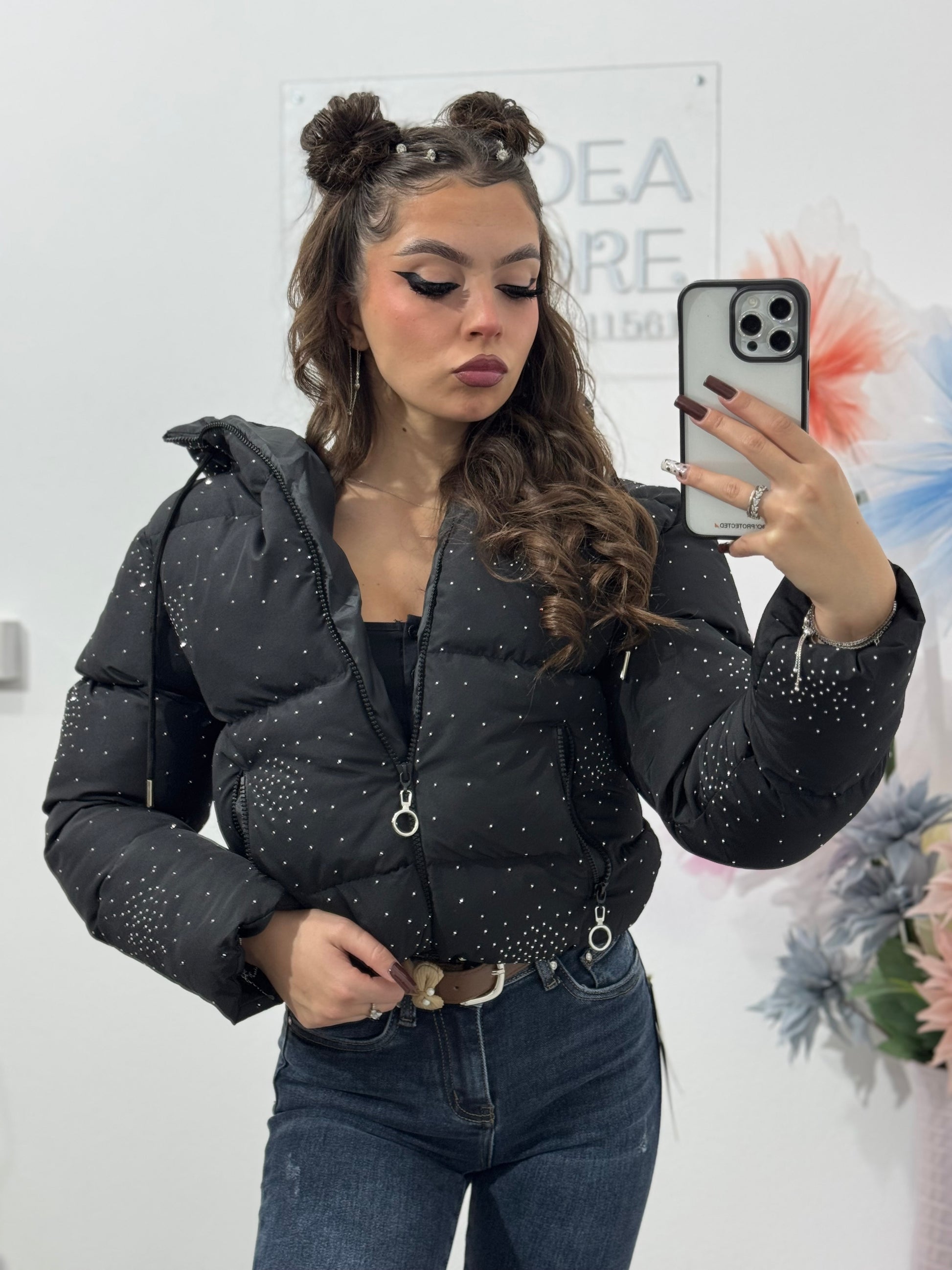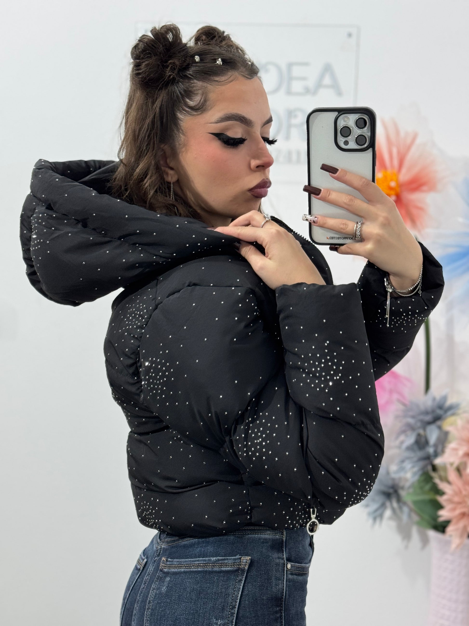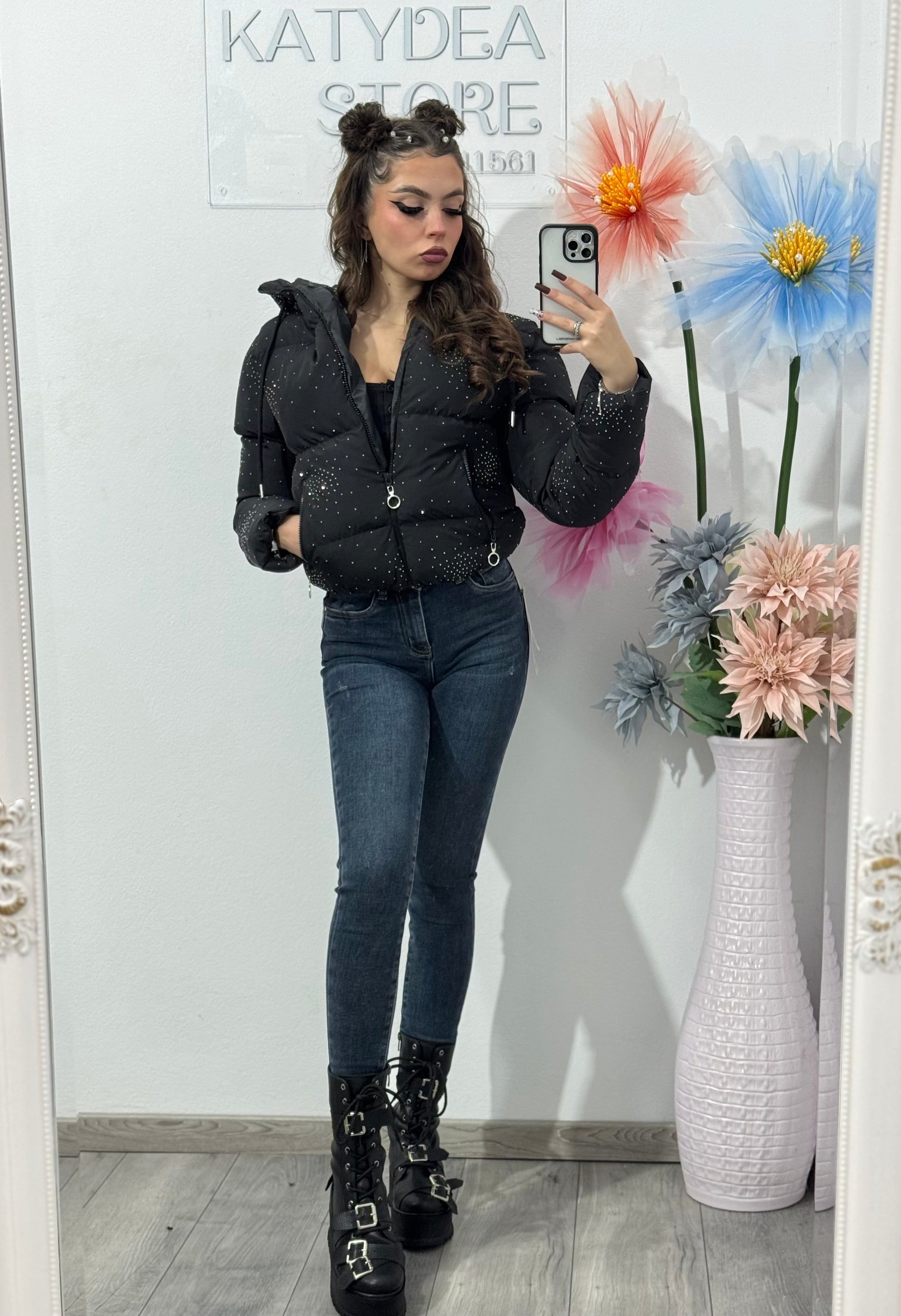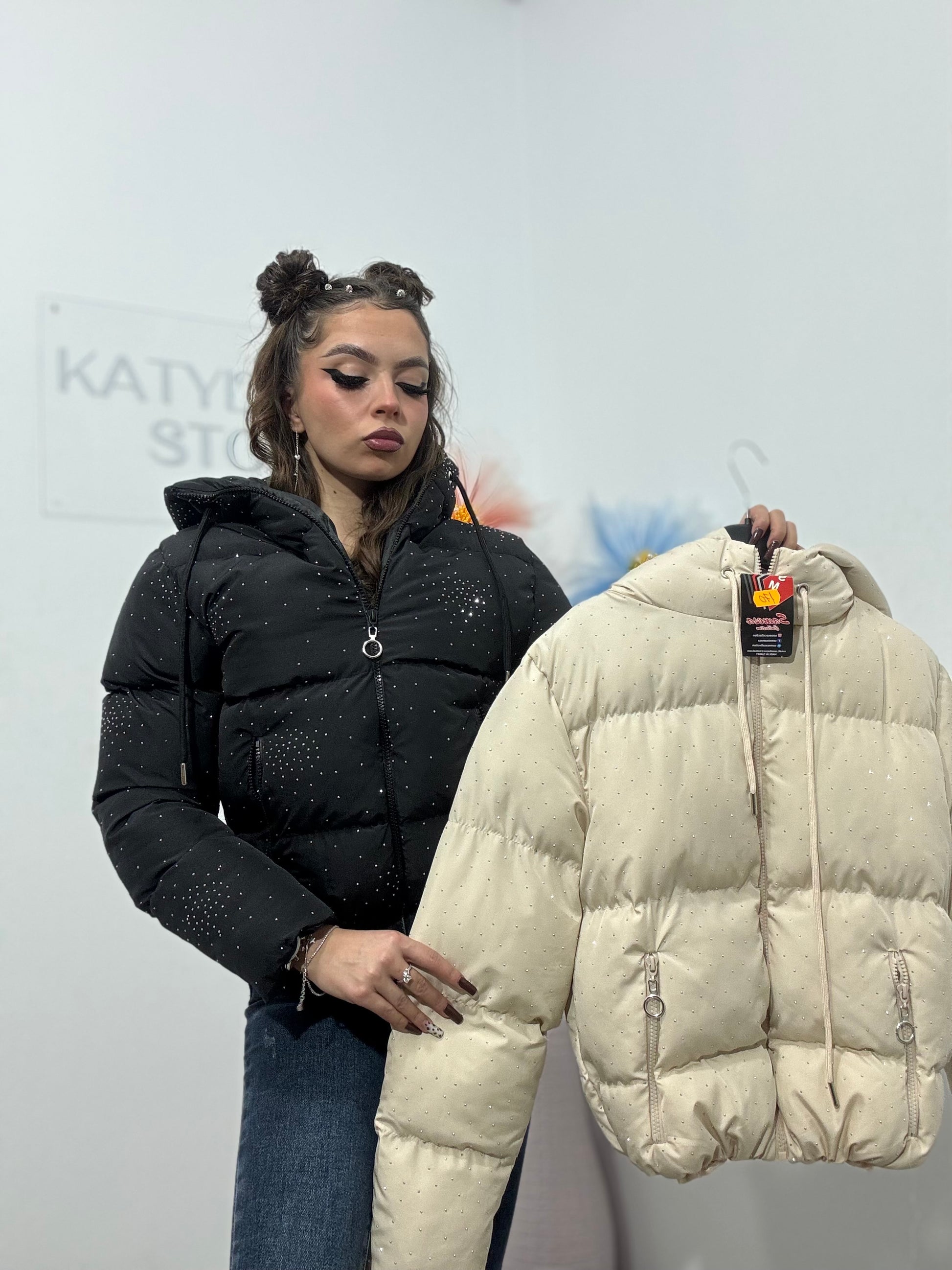 Geacă puffer cu cristale ștanțate pe toată suprafața