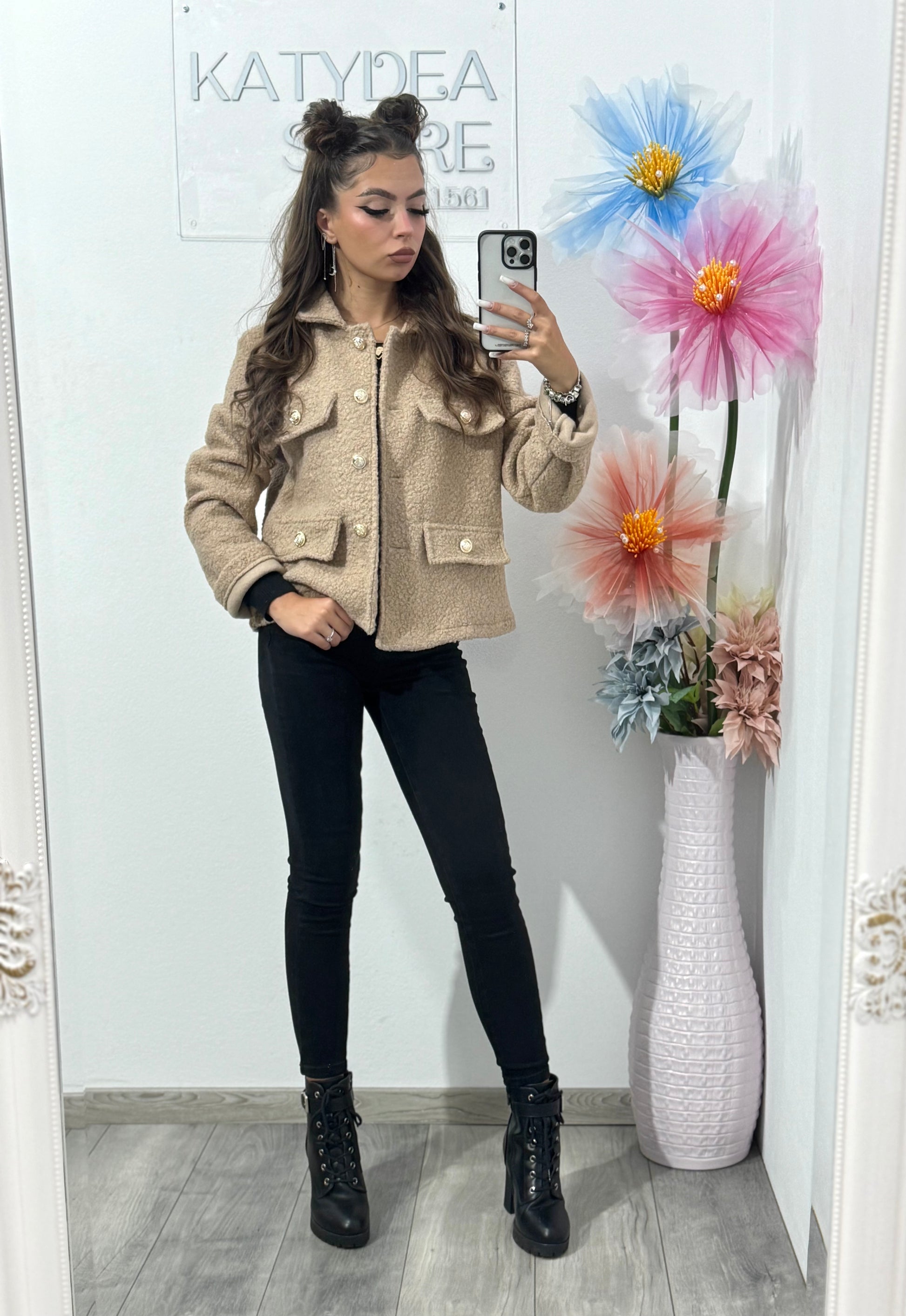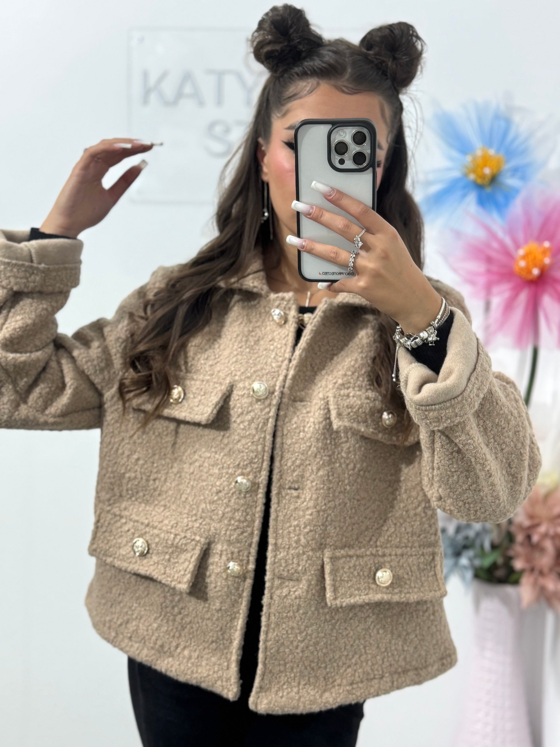 Geacă scurtă tip shacket, perfectă pentru zilele răcoroase.