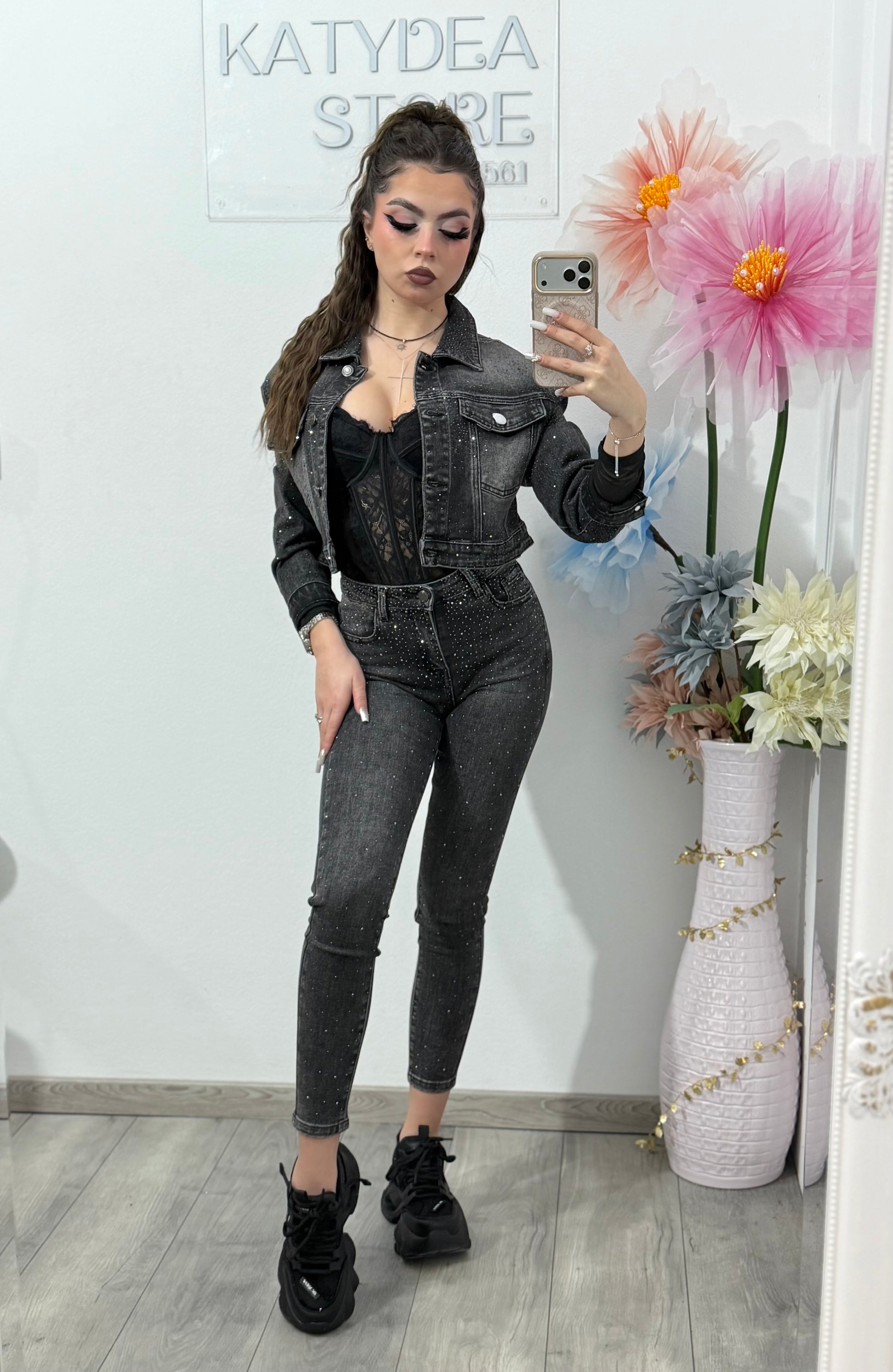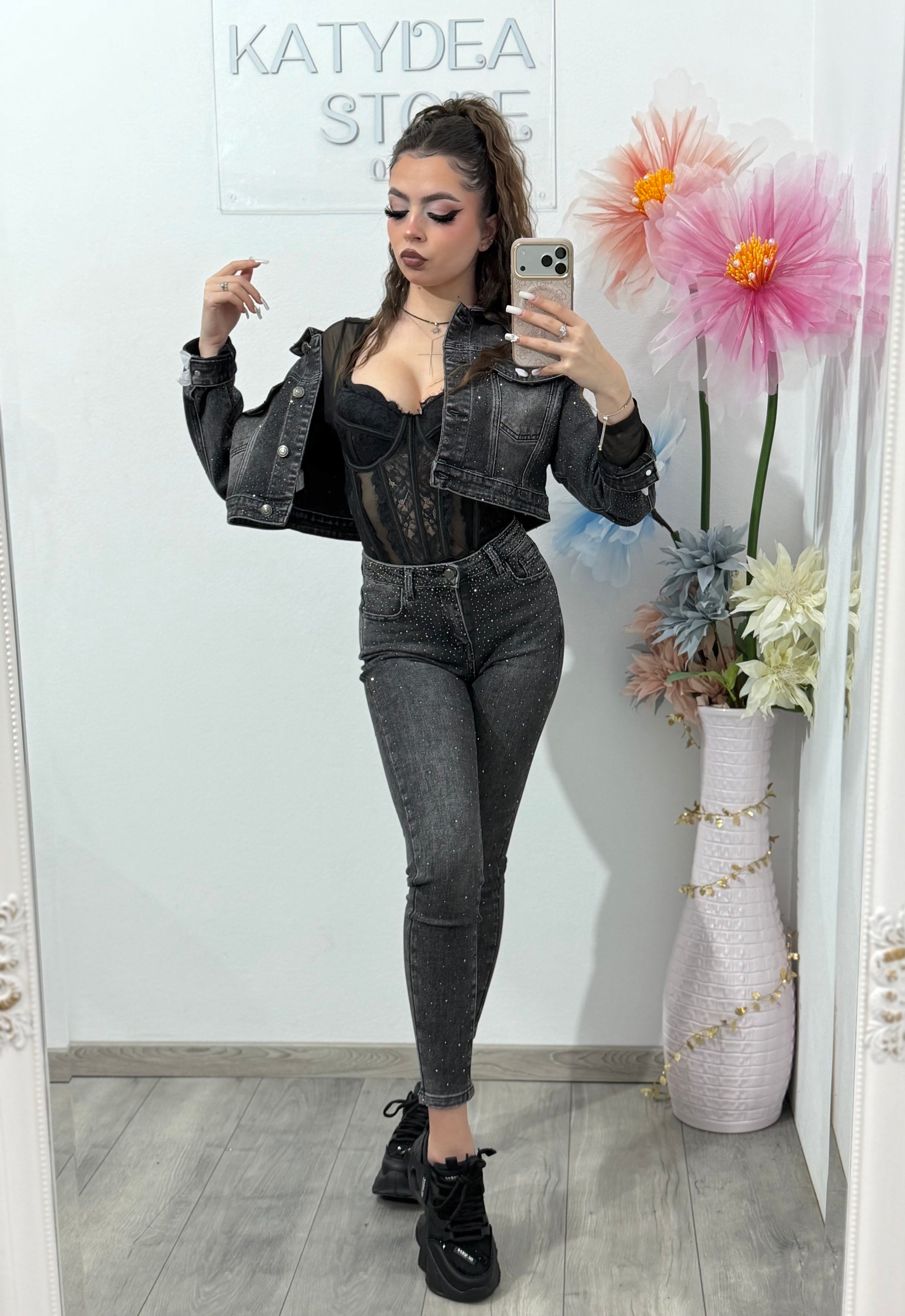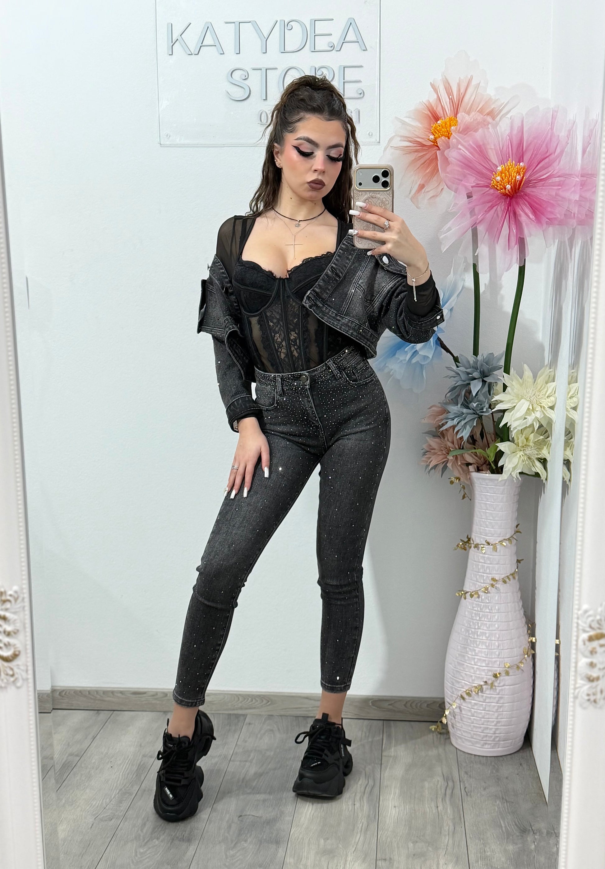 Modelul are 1,65m și 50kg și poartă mărimea XS.