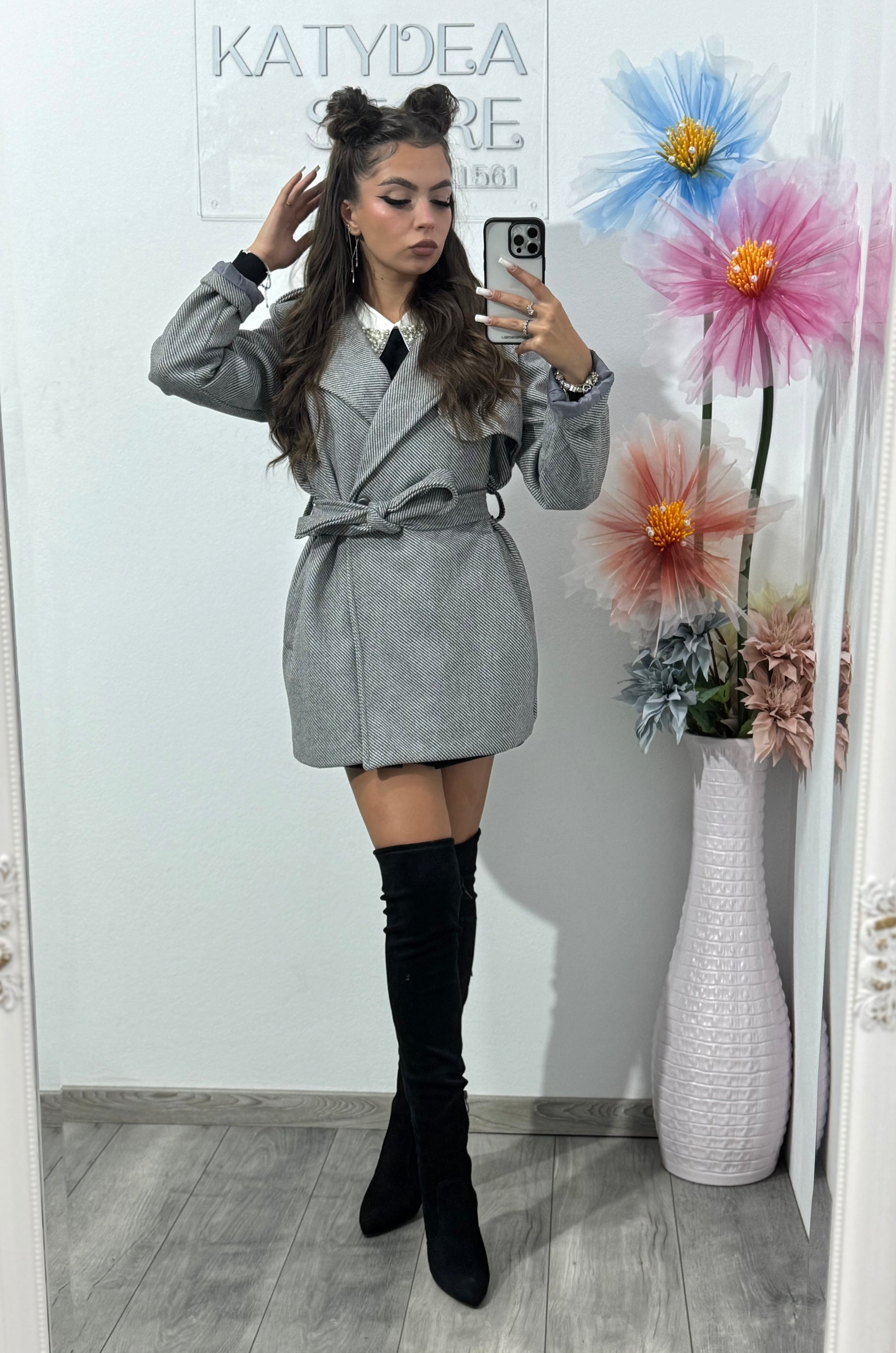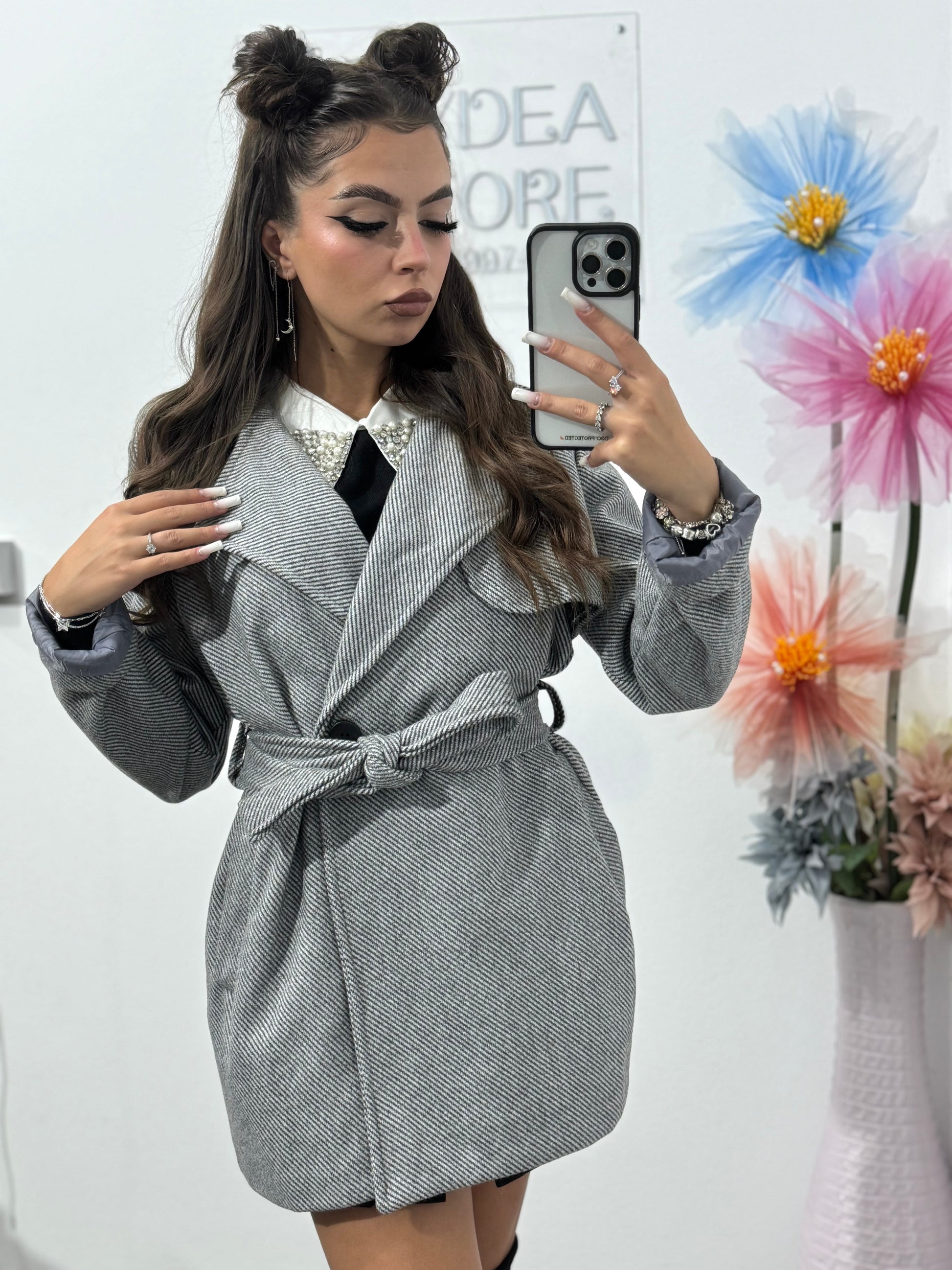 Acest palton gri este o piesă esențială pentru garderoba de toamnă-iarnă, combinând confortul cu eleganța atemporală.