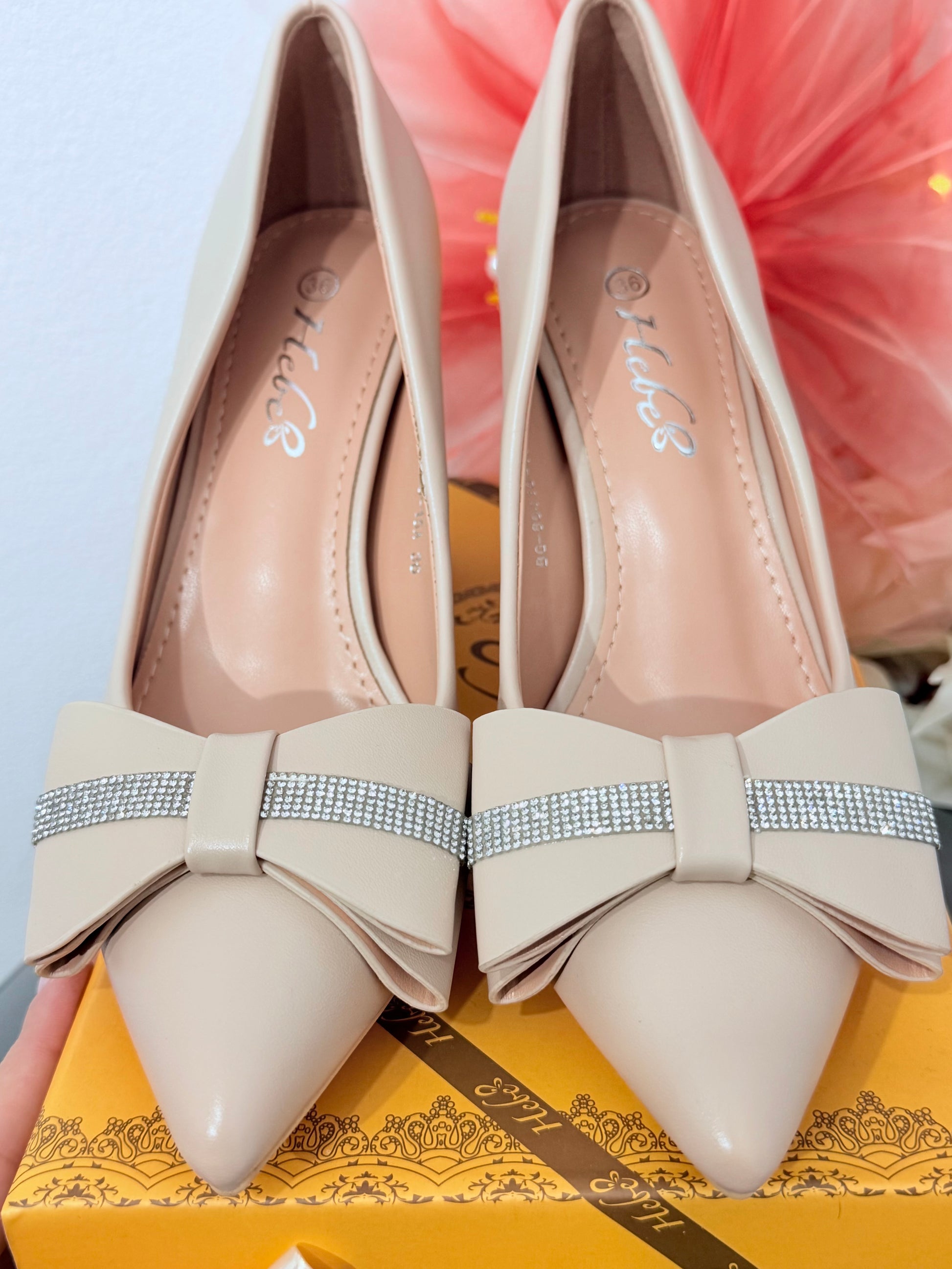 Pantofi eleganți bej cu fundiță SELIN