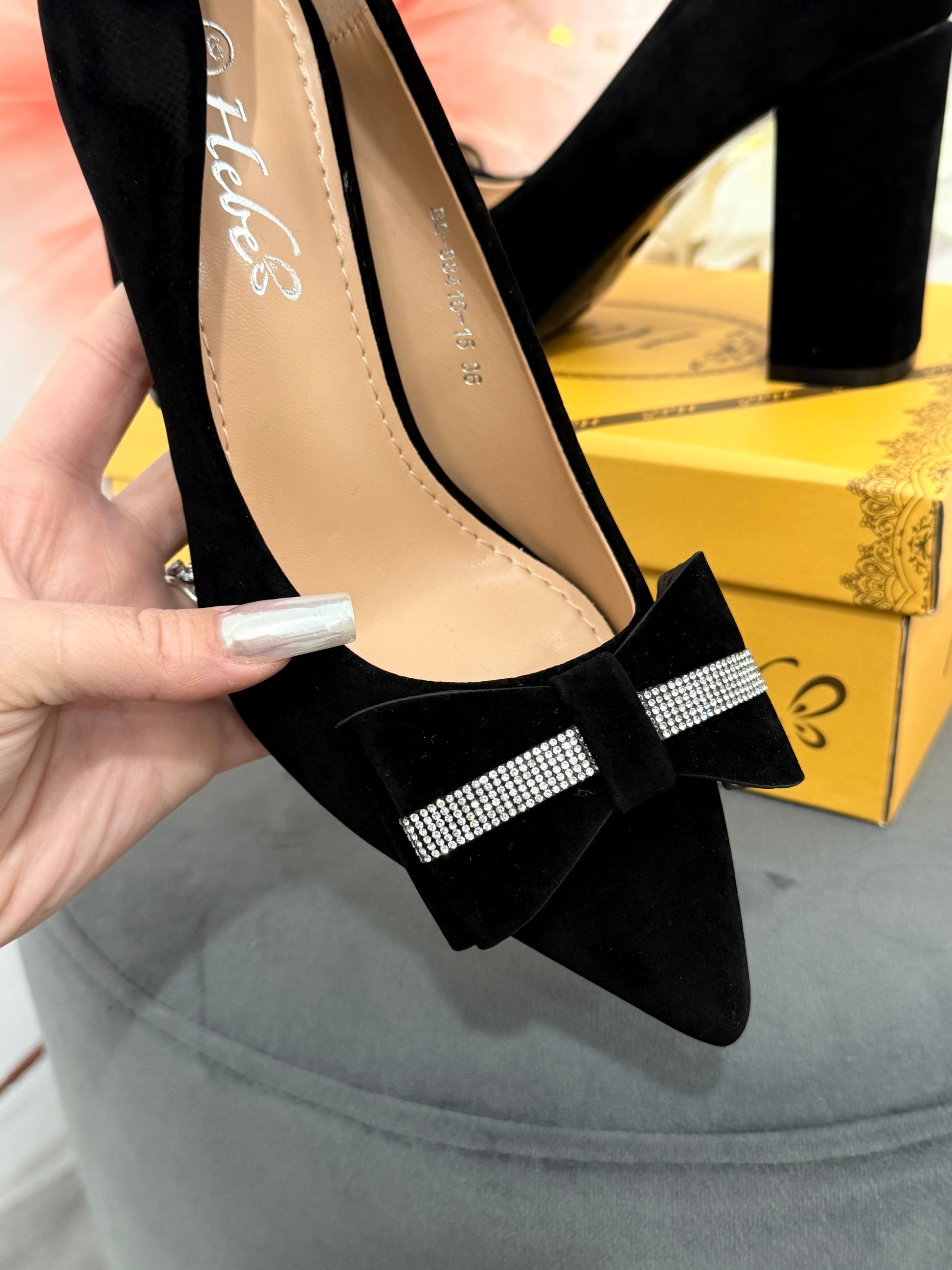 Pantofi eleganți negri cu fundiță SELIN