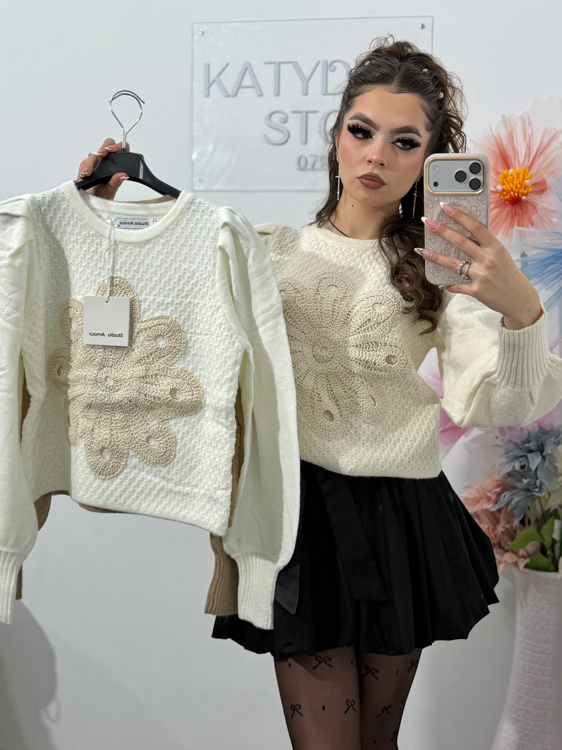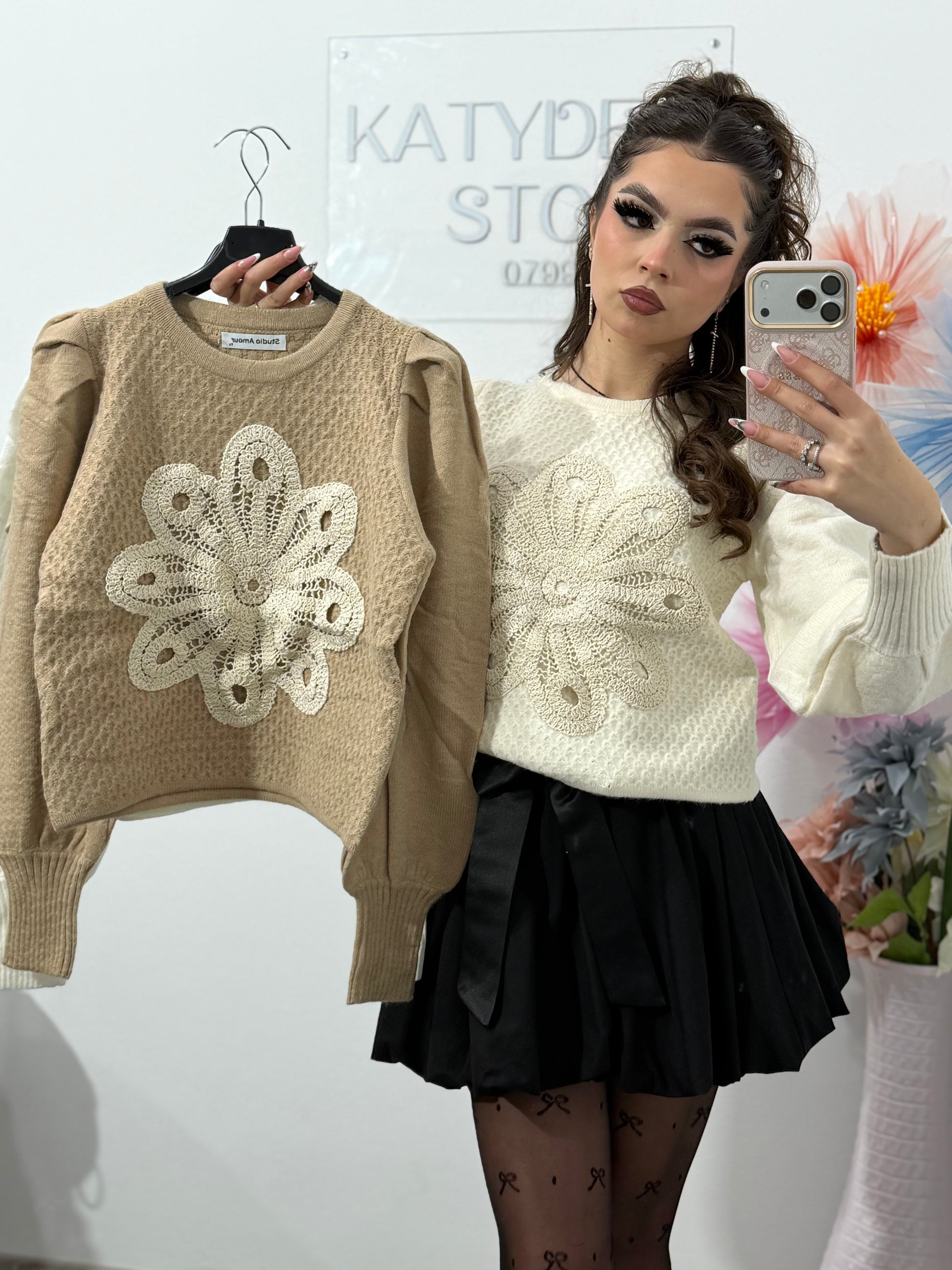 Accesorizat cu floare tricotata