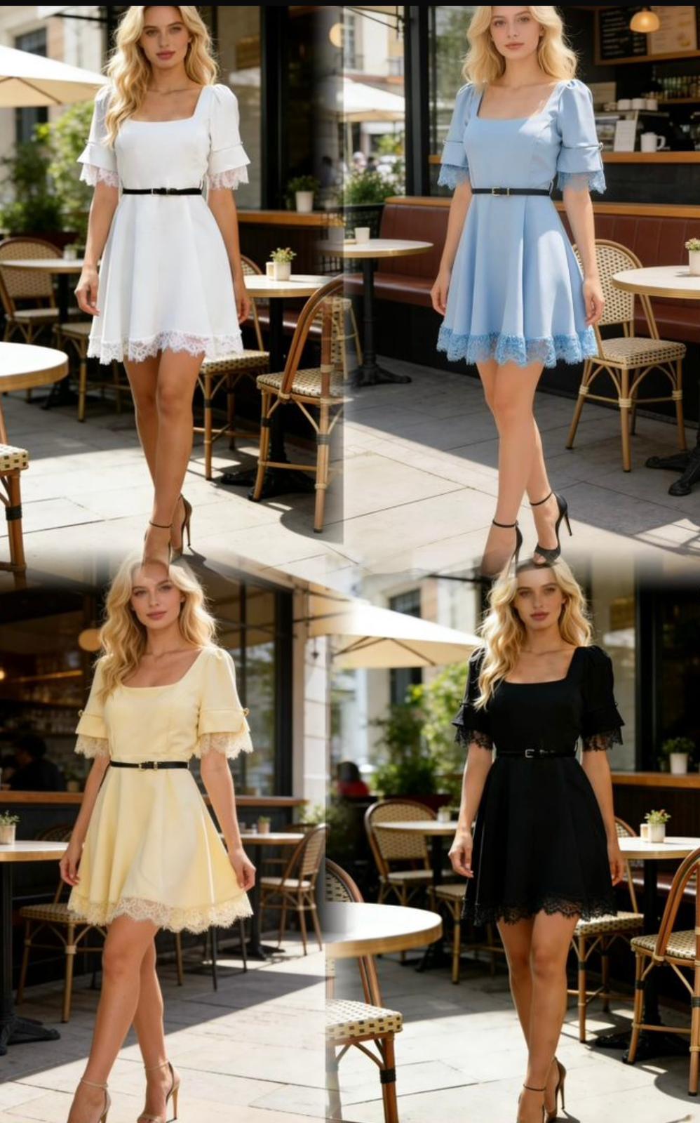 Modelul are terminatie din dantela la maneci si poale.