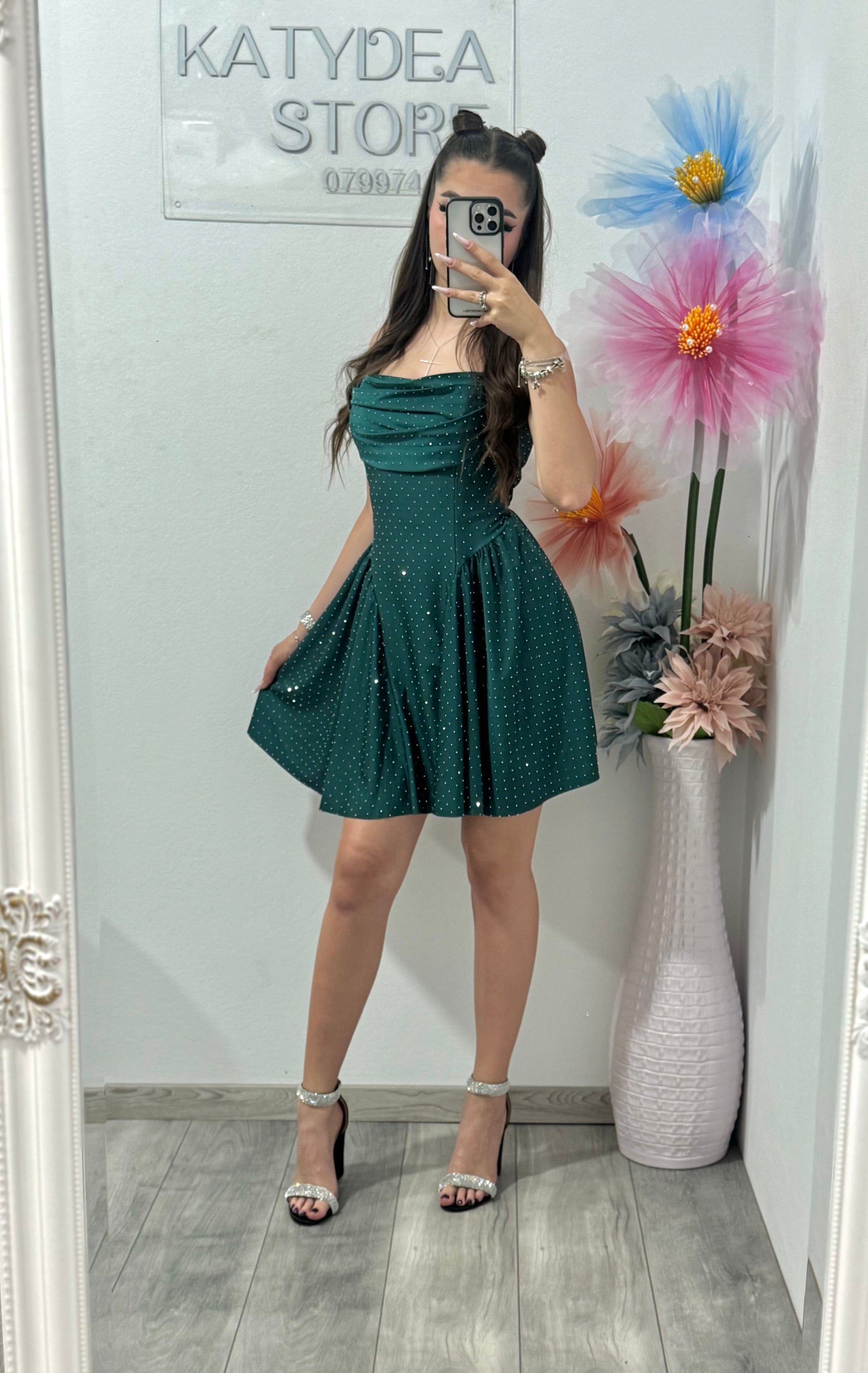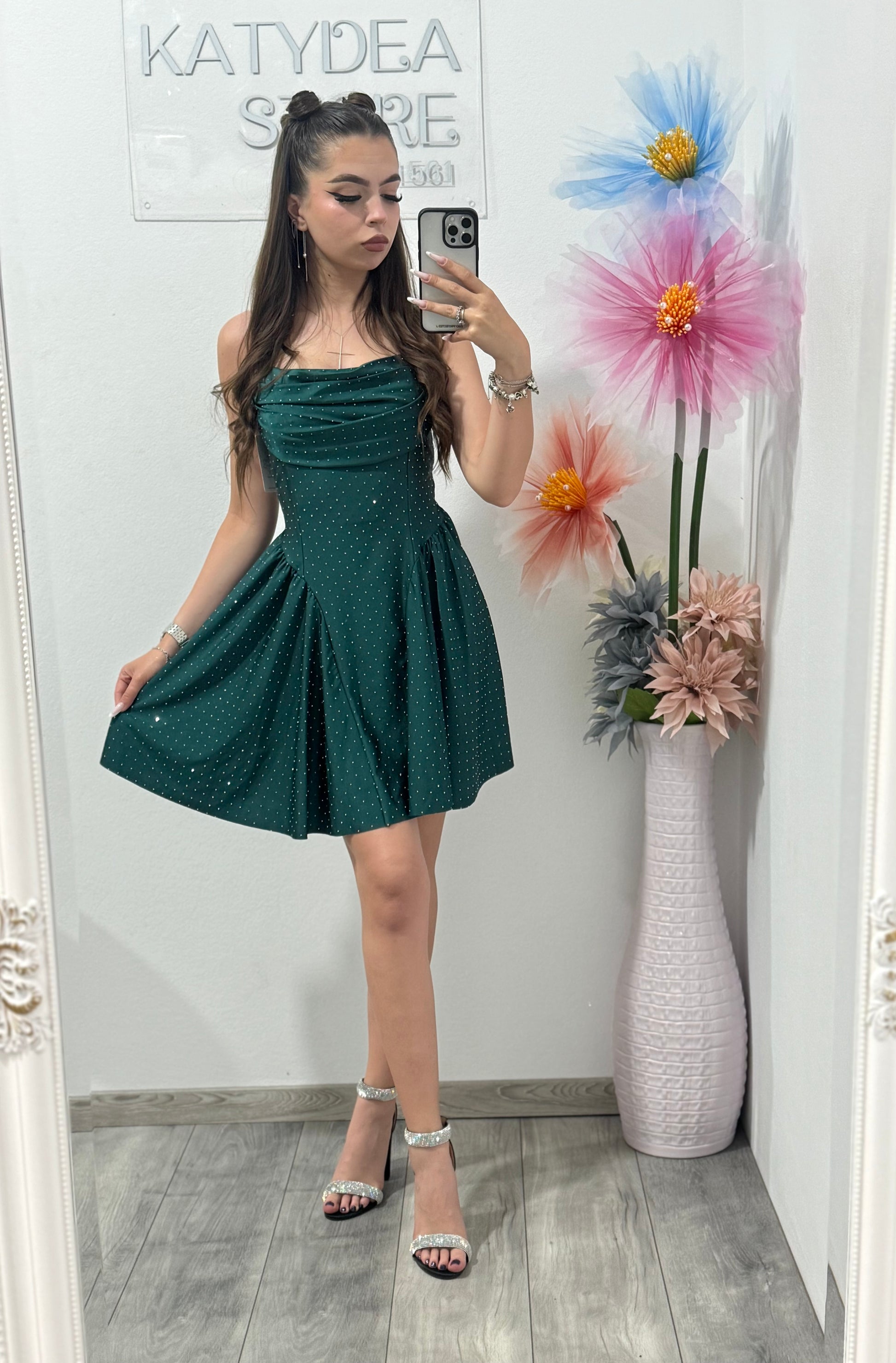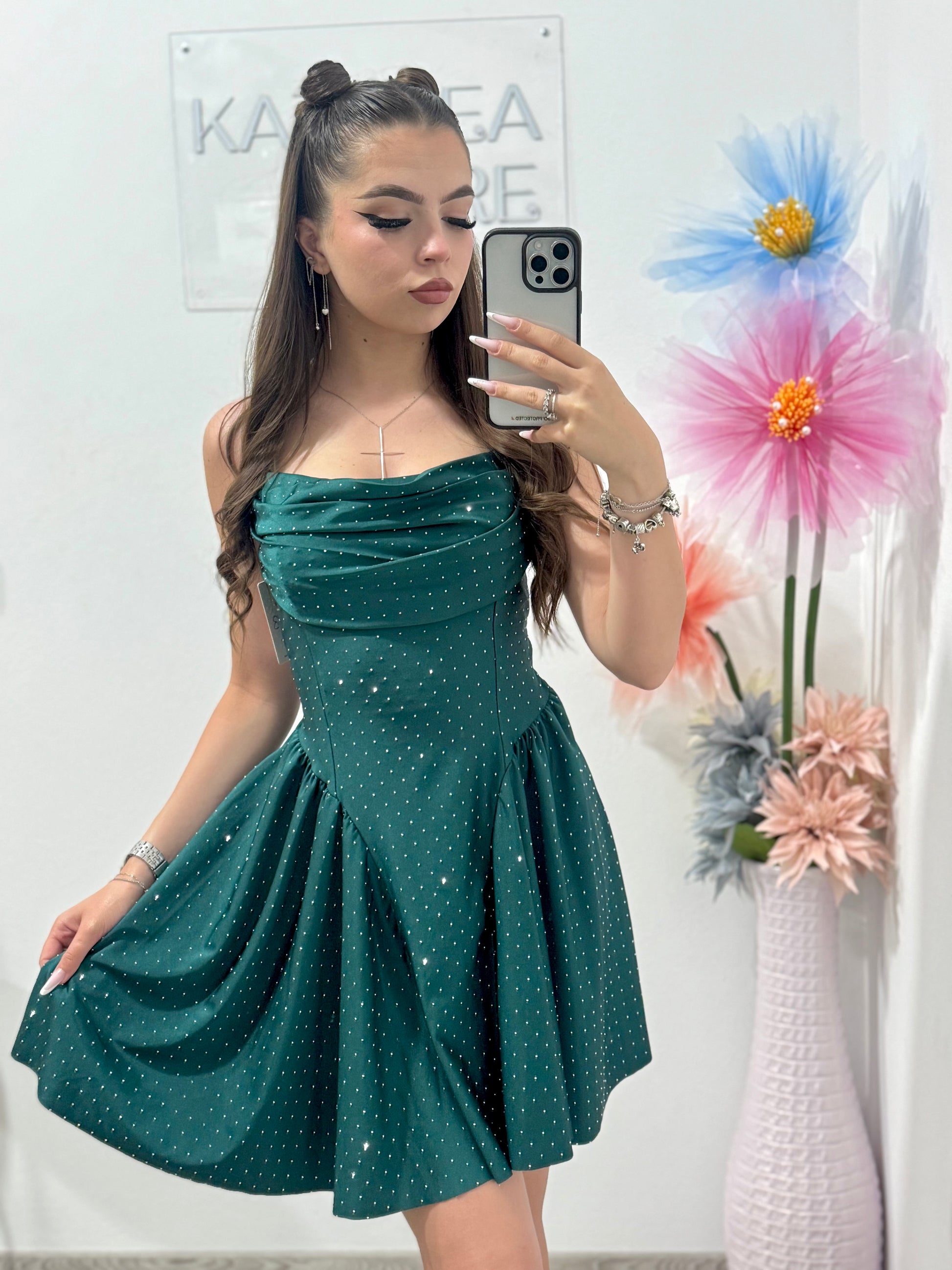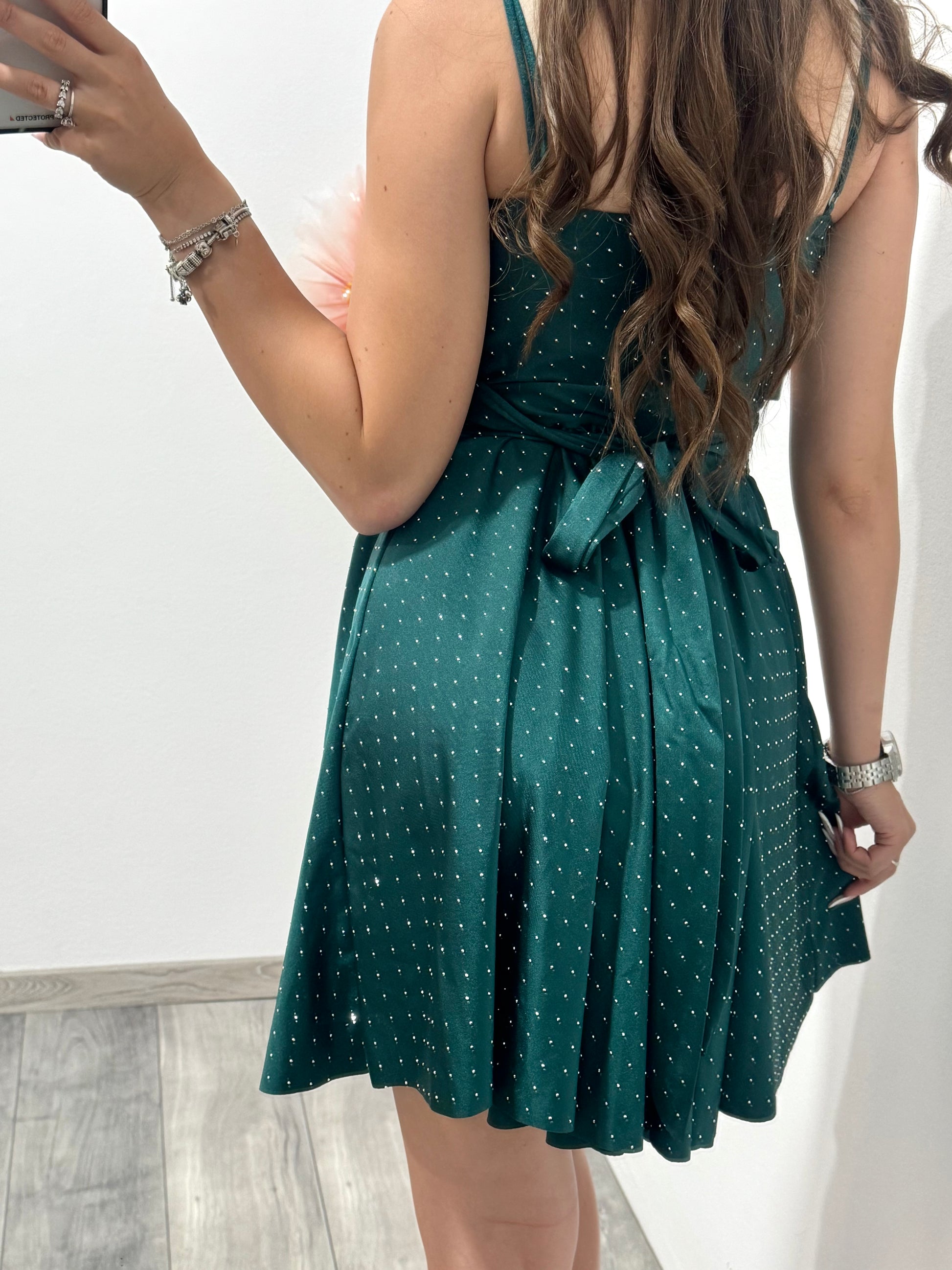 Se poate strânge în funcție de talie la spate cu o fundiță.