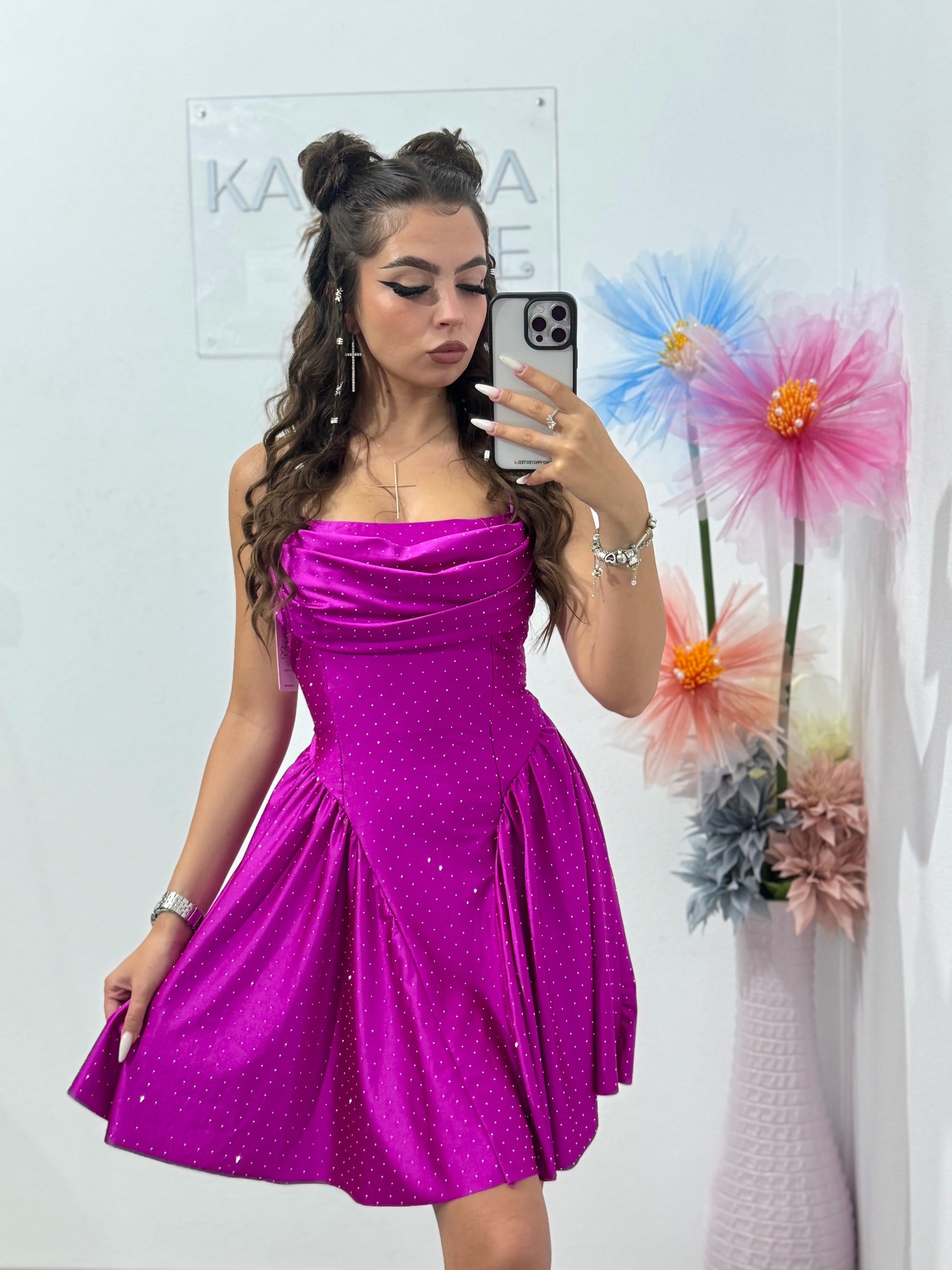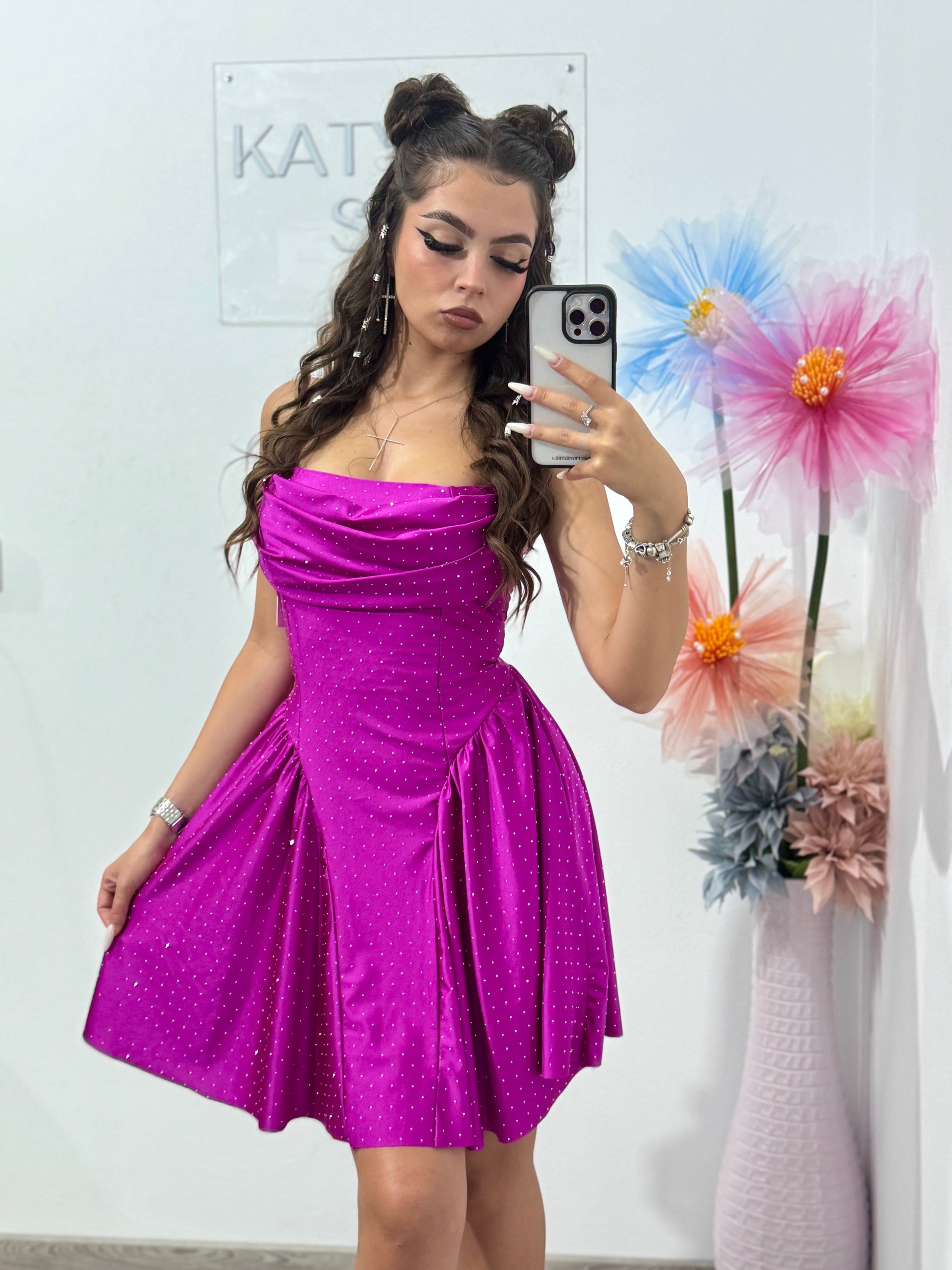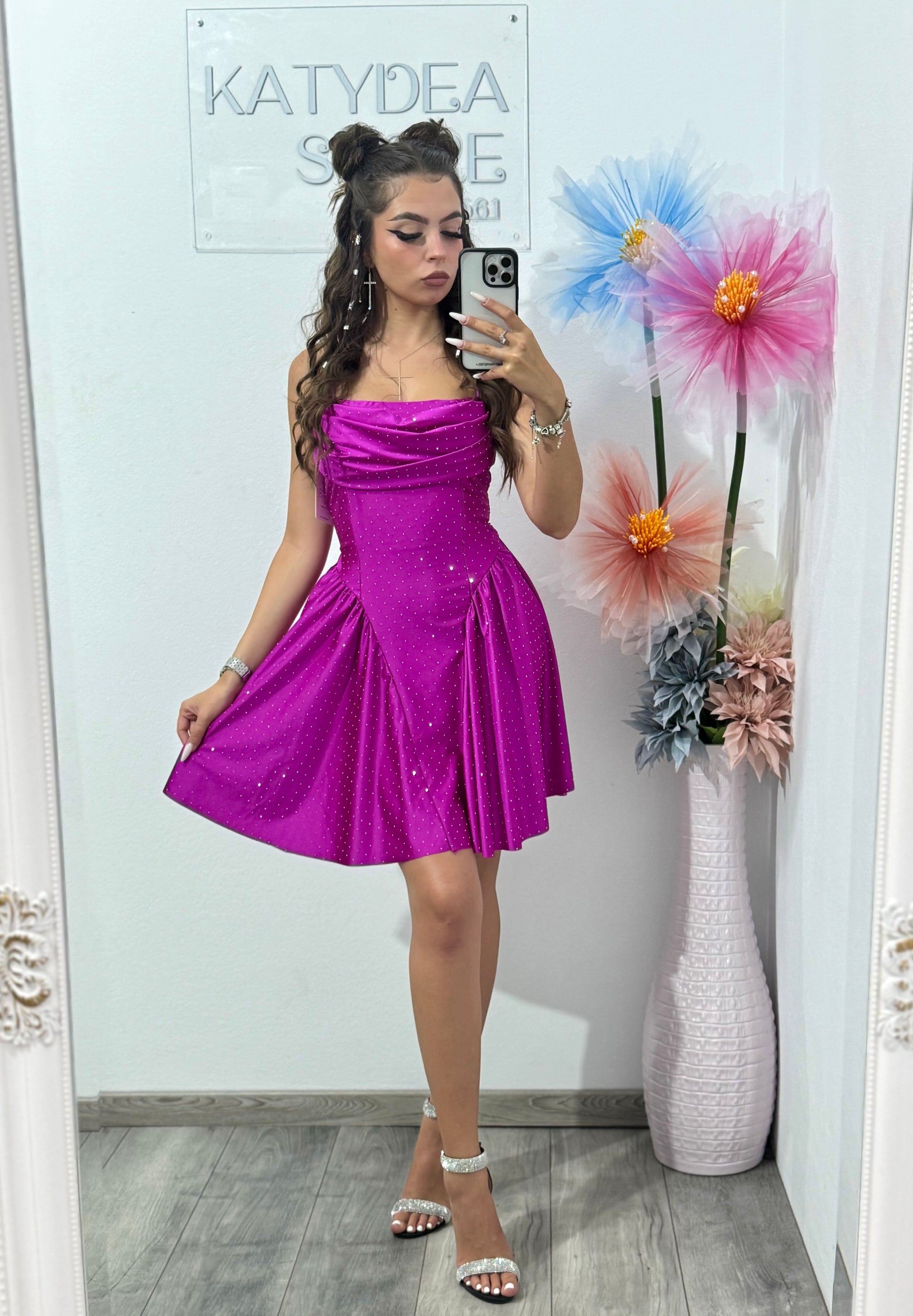 Se poate strânge în funcție de talie la spate cu o fundiță.
