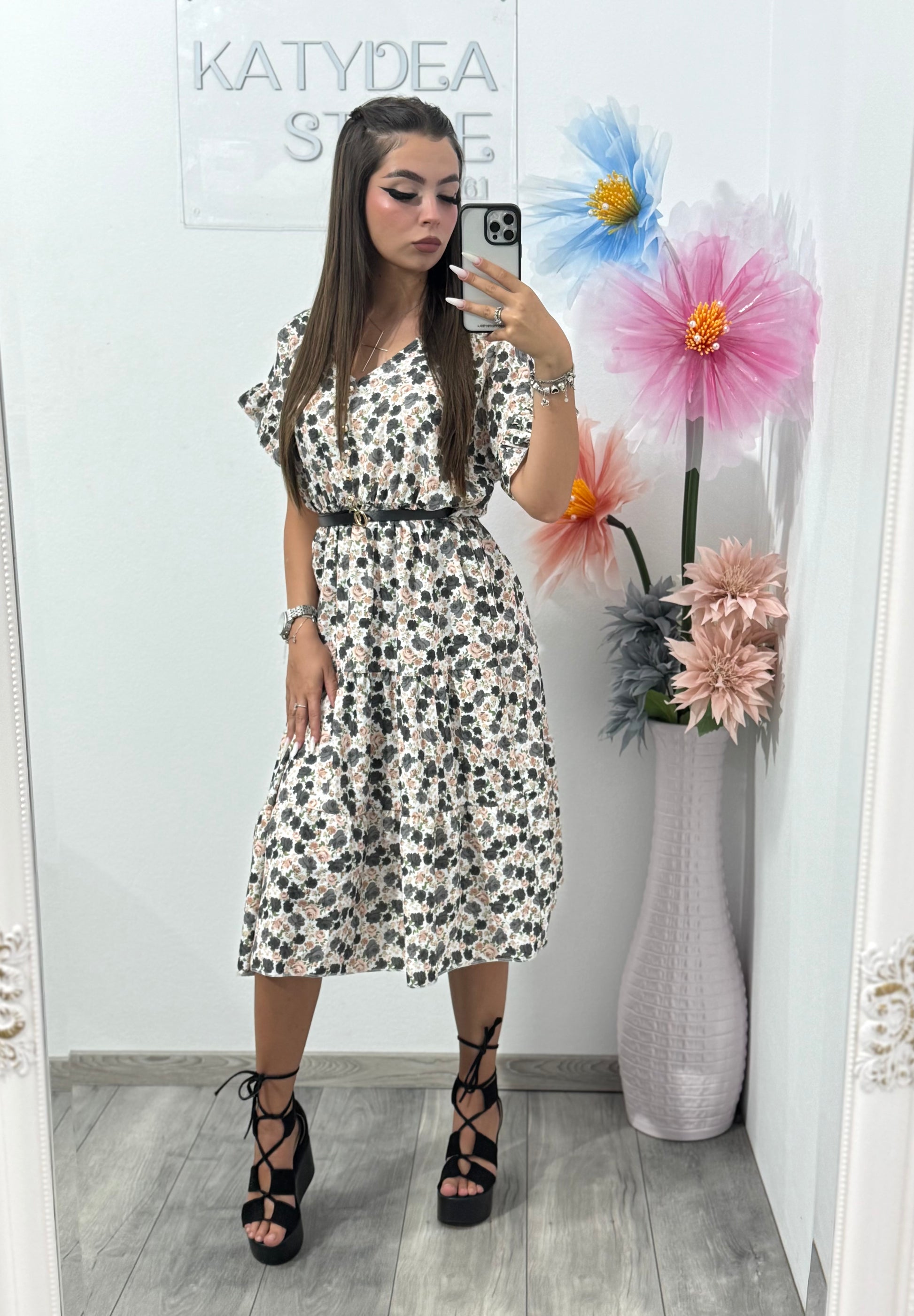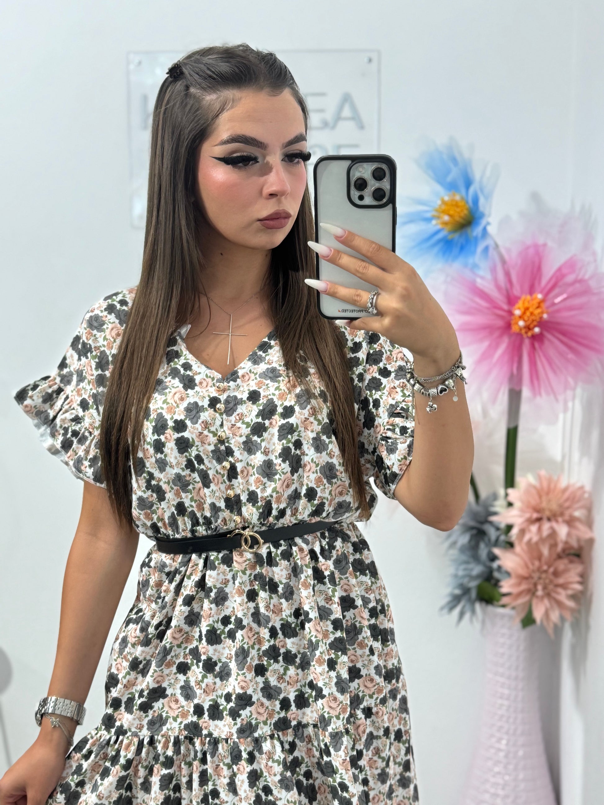 Rochie cu imprimeu floral și năsturași Myra