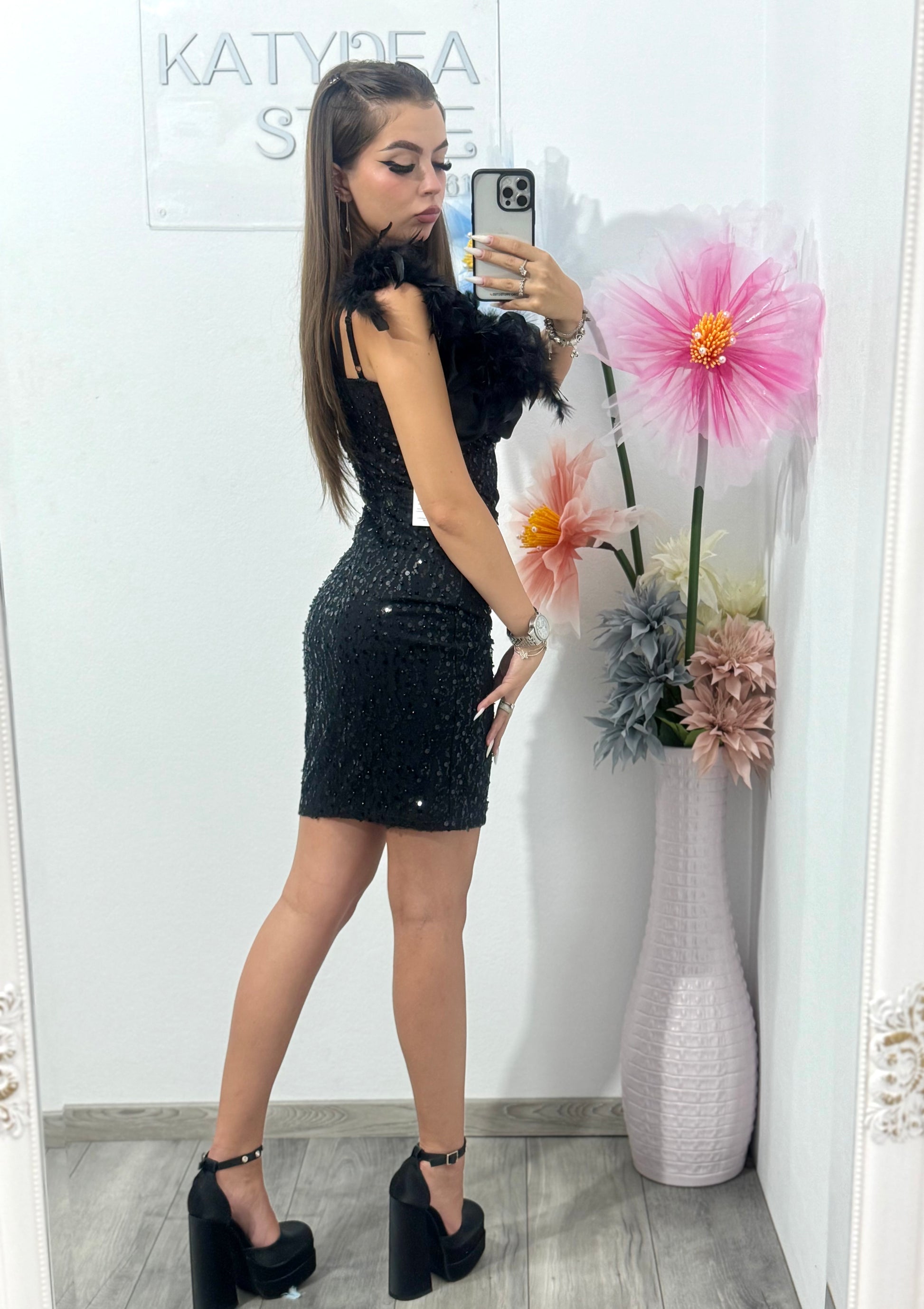 Modelul are 1,65m și 50kg și poartă mărimea 36(S).