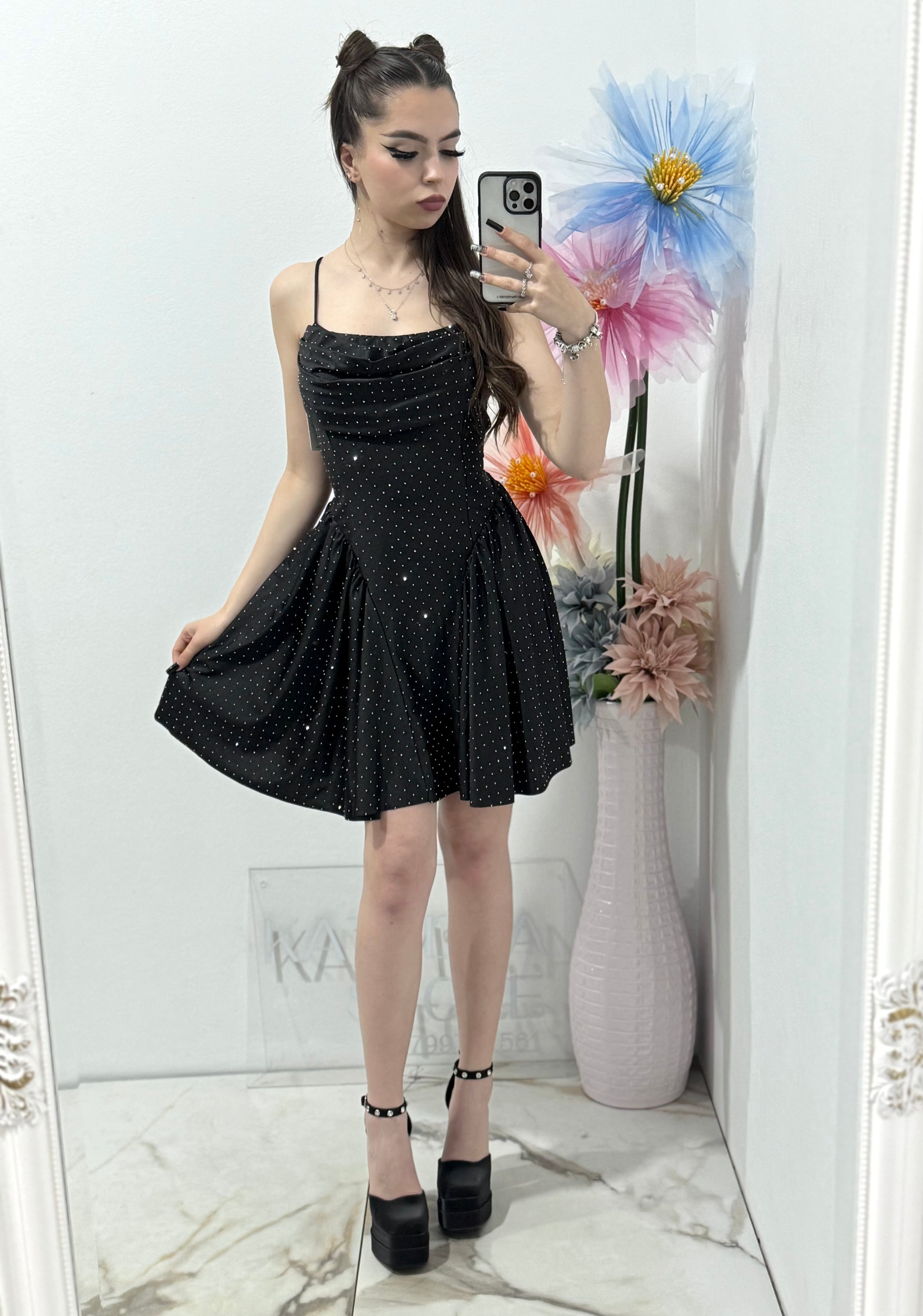 Rochie elegantă cu cristale neagră Ginny