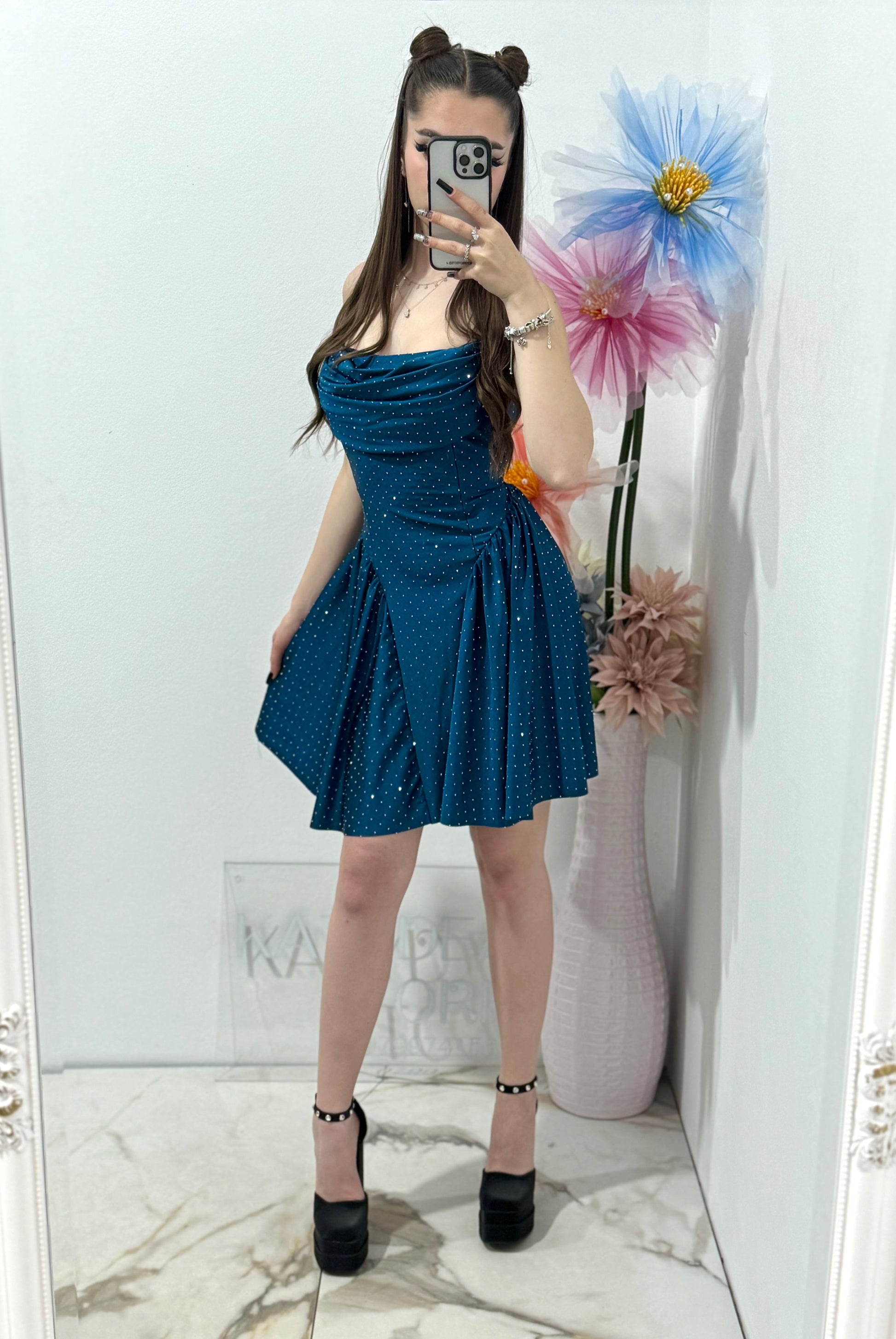 Se poate strânge în funcție de talie la spate cu o fundiță.
