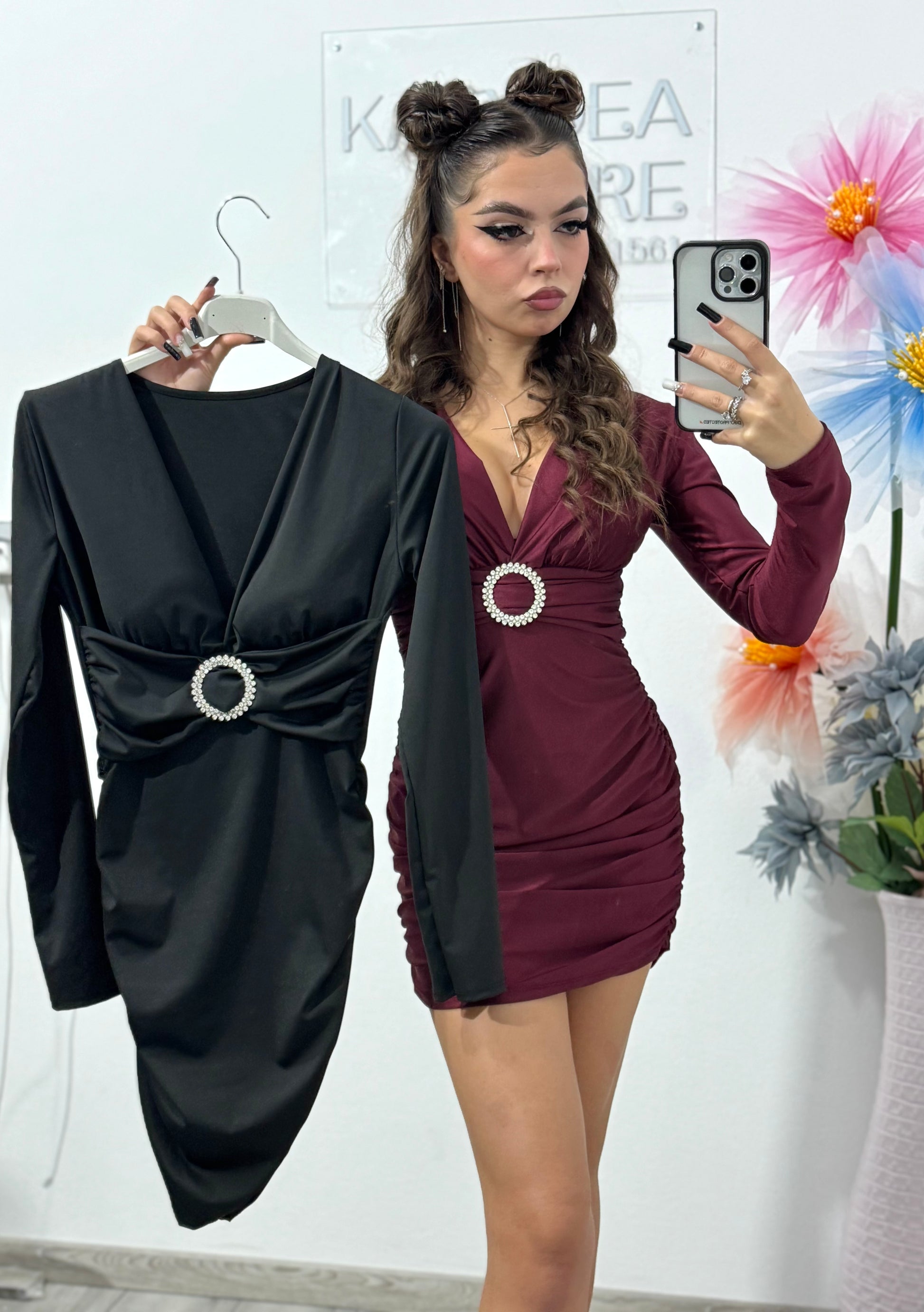 ✨ Detaliul central al rochiei este catarama cu cristale argintii plasată în talie — un accent prețios care atrage privirea și adaugă o notă de strălucire. Catarama evidențiază talia și creează un efect elegant, transformând rochia într-o piesă cu personalitate.