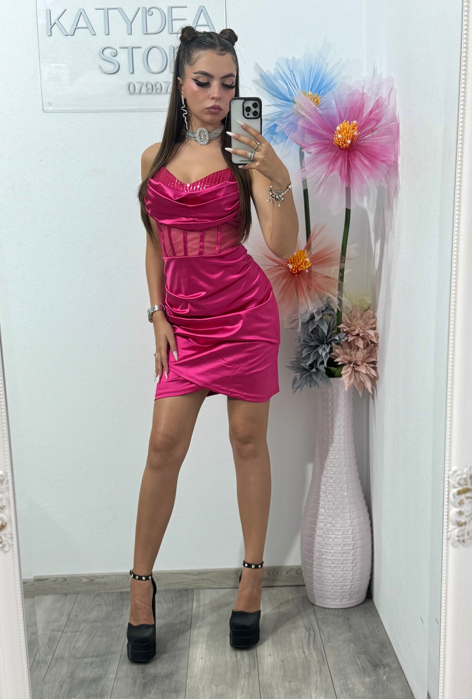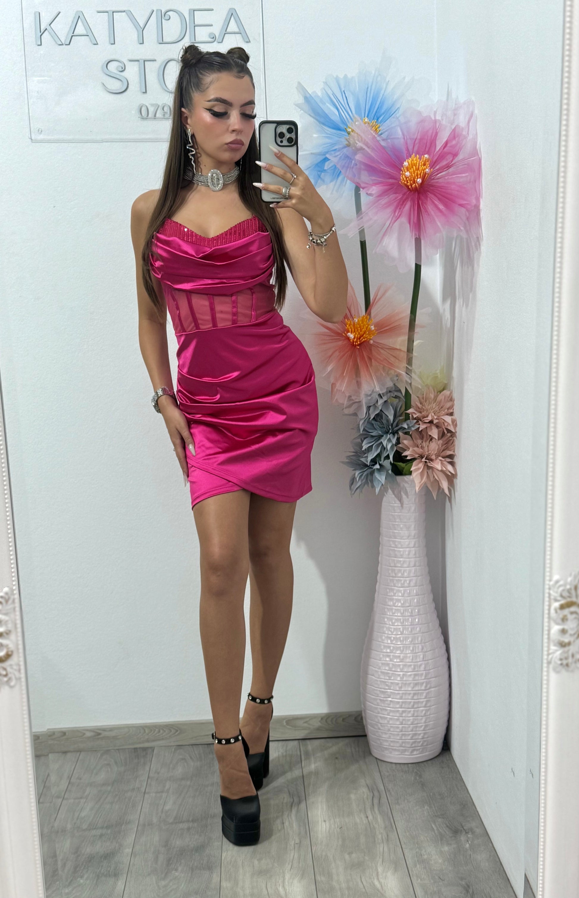 Rochie scurtă cu corset fucsia Annemary