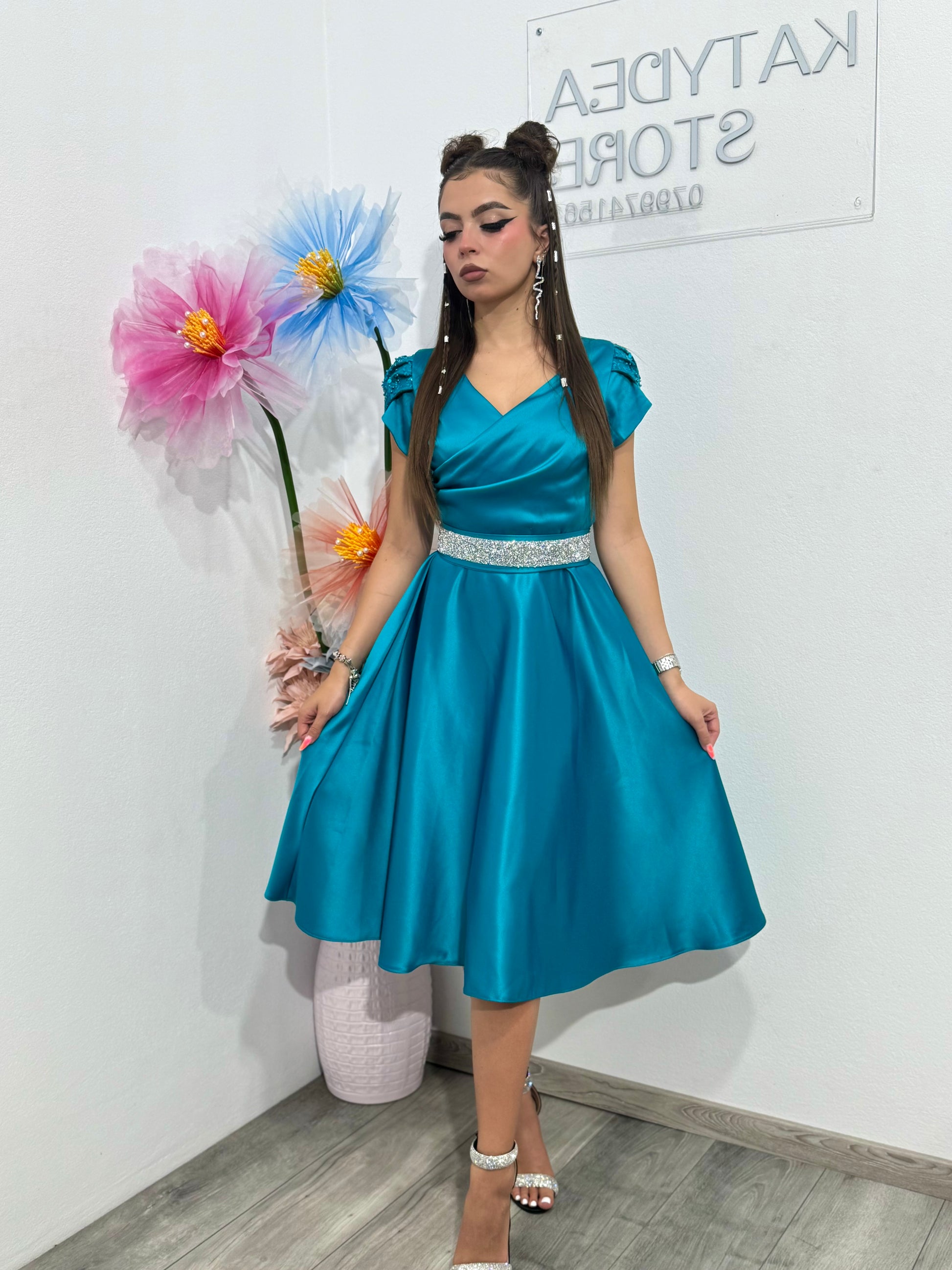 Rochie eleganta confectionata din tafta si maneci din paiete. Fusta este in clos, se Inchide cu fermoar la spate si are bustul petrecut, in forma de V. Compozitie: 60% Poliester, 40% Elastan.
