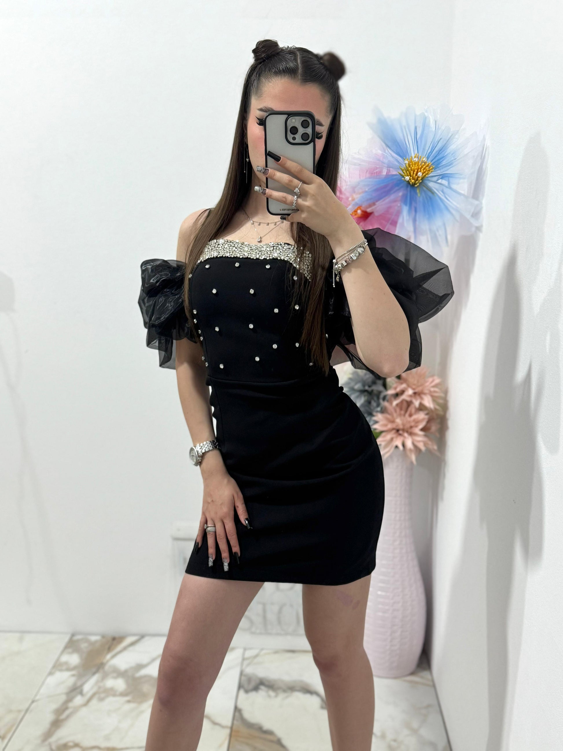Modelul poarta marimea 36 și are 1.65m și 49kg, bust 85cm.
