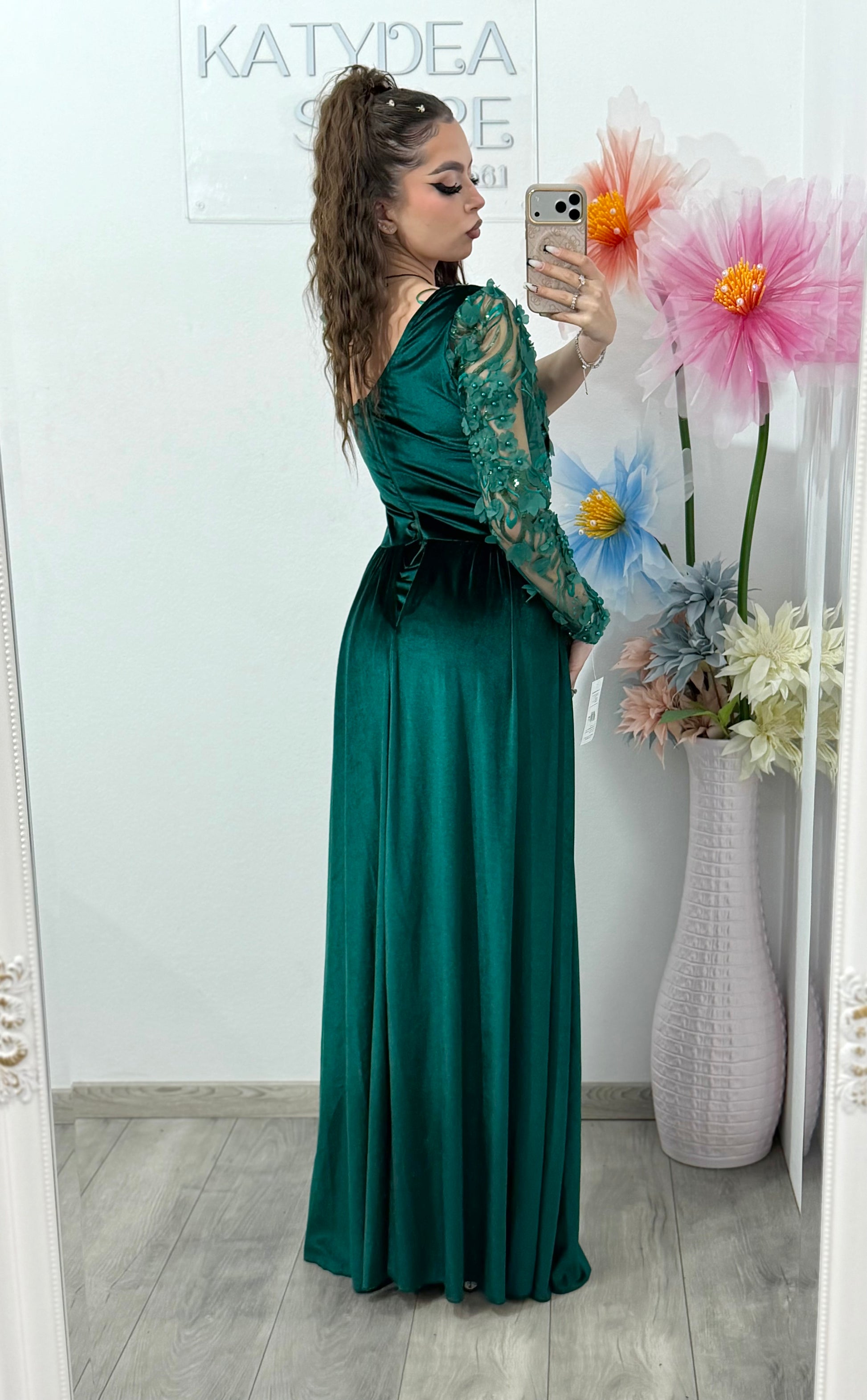 Rochie verde spectaculoasă din catifea și dantelă DELUX