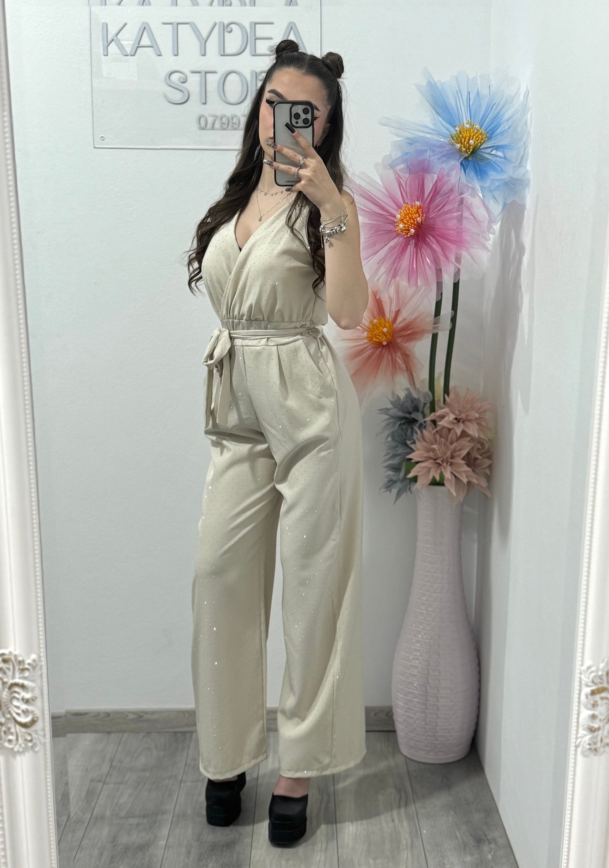 Salopetă elegantă cu cristale ștanțate crem Annabelle