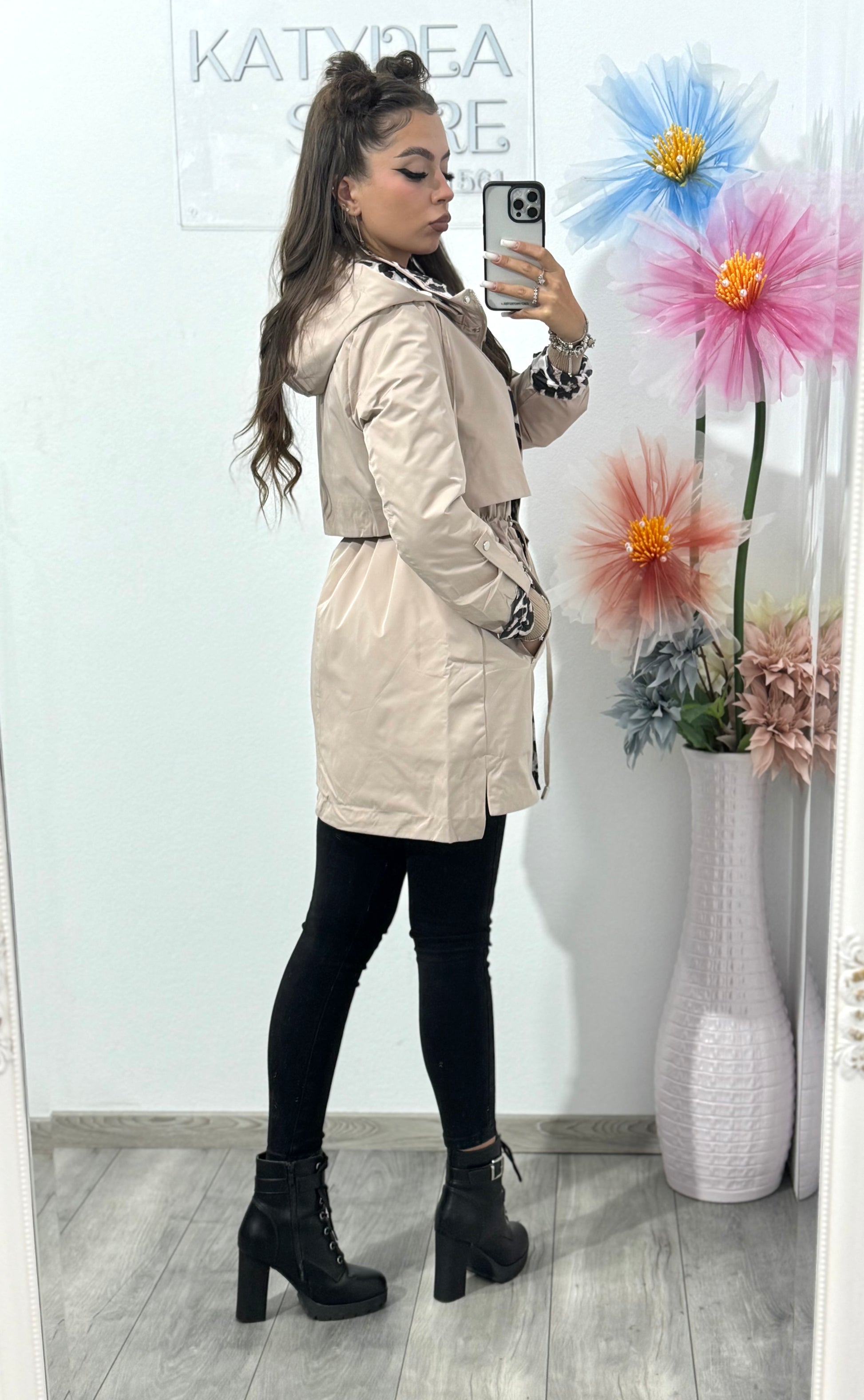 Detalii cu animal print la mâneci și la glugă