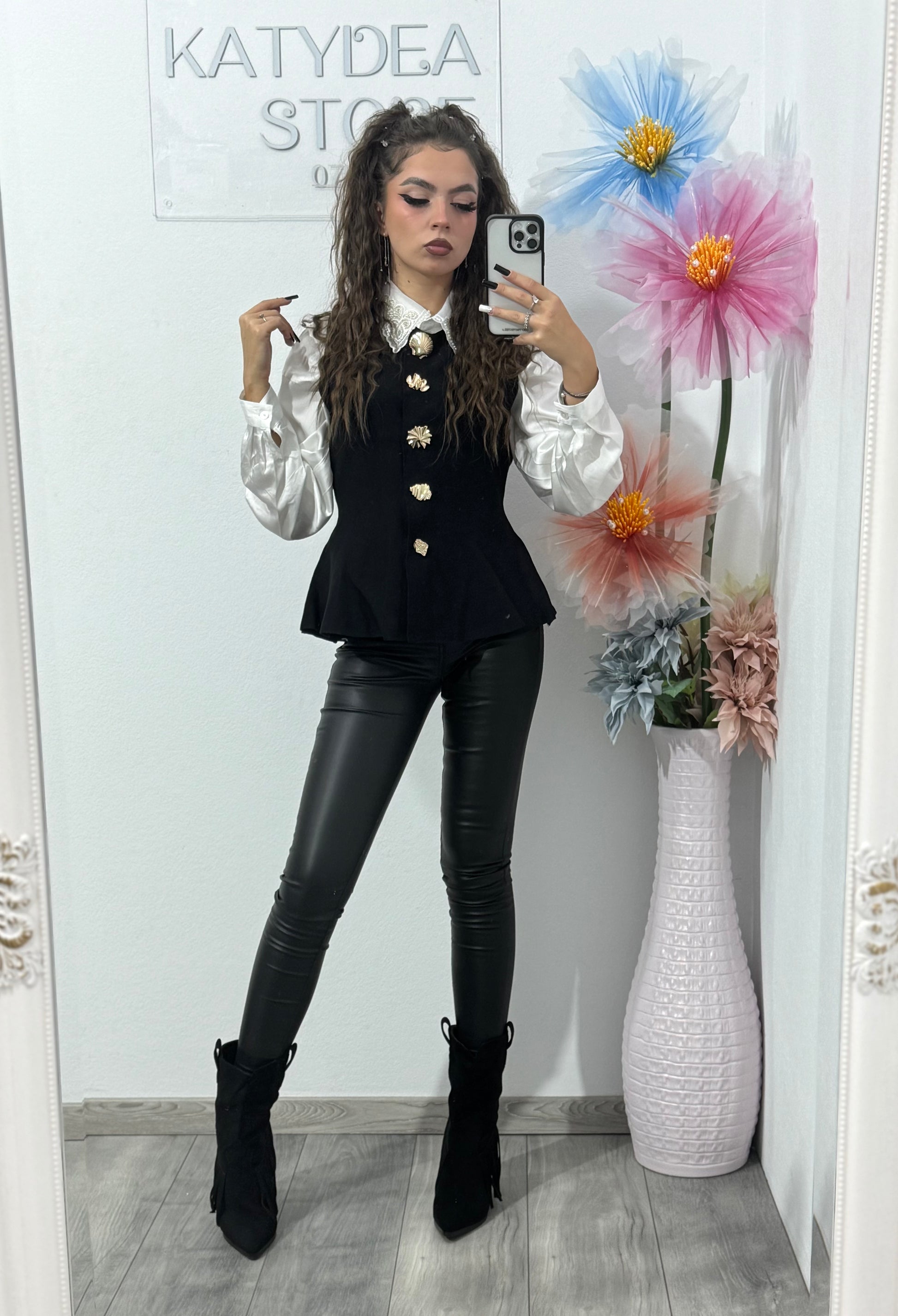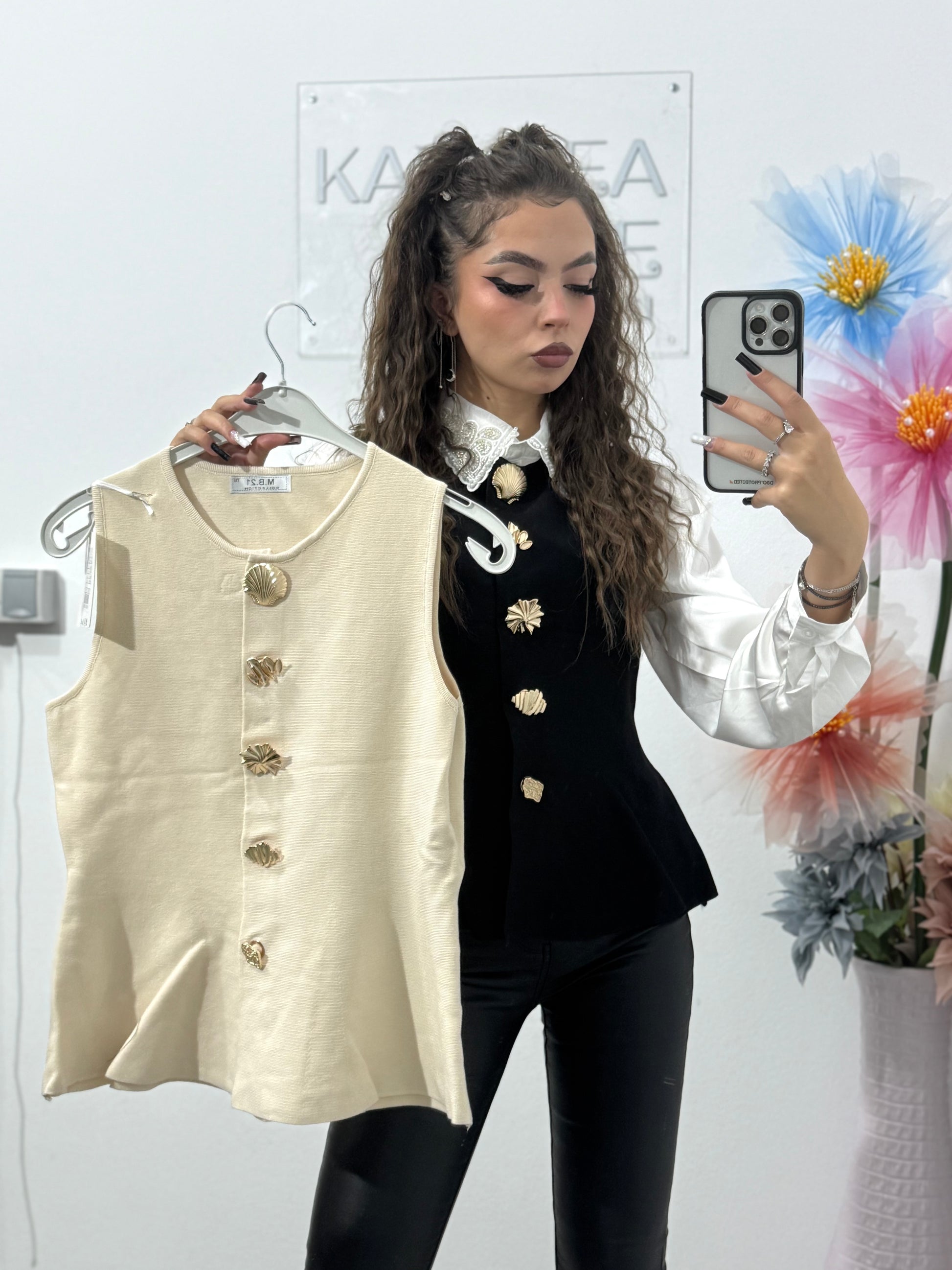 Vestă din tricot accesorizata cu capse aurii tip bijuterie